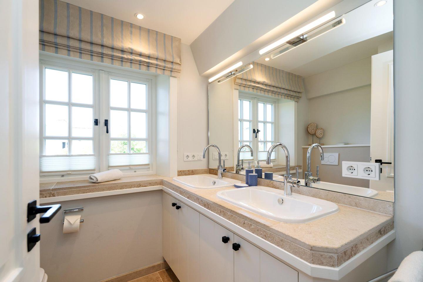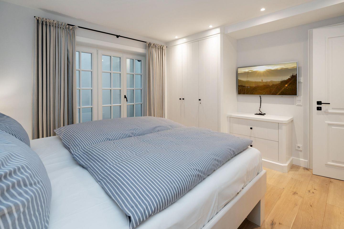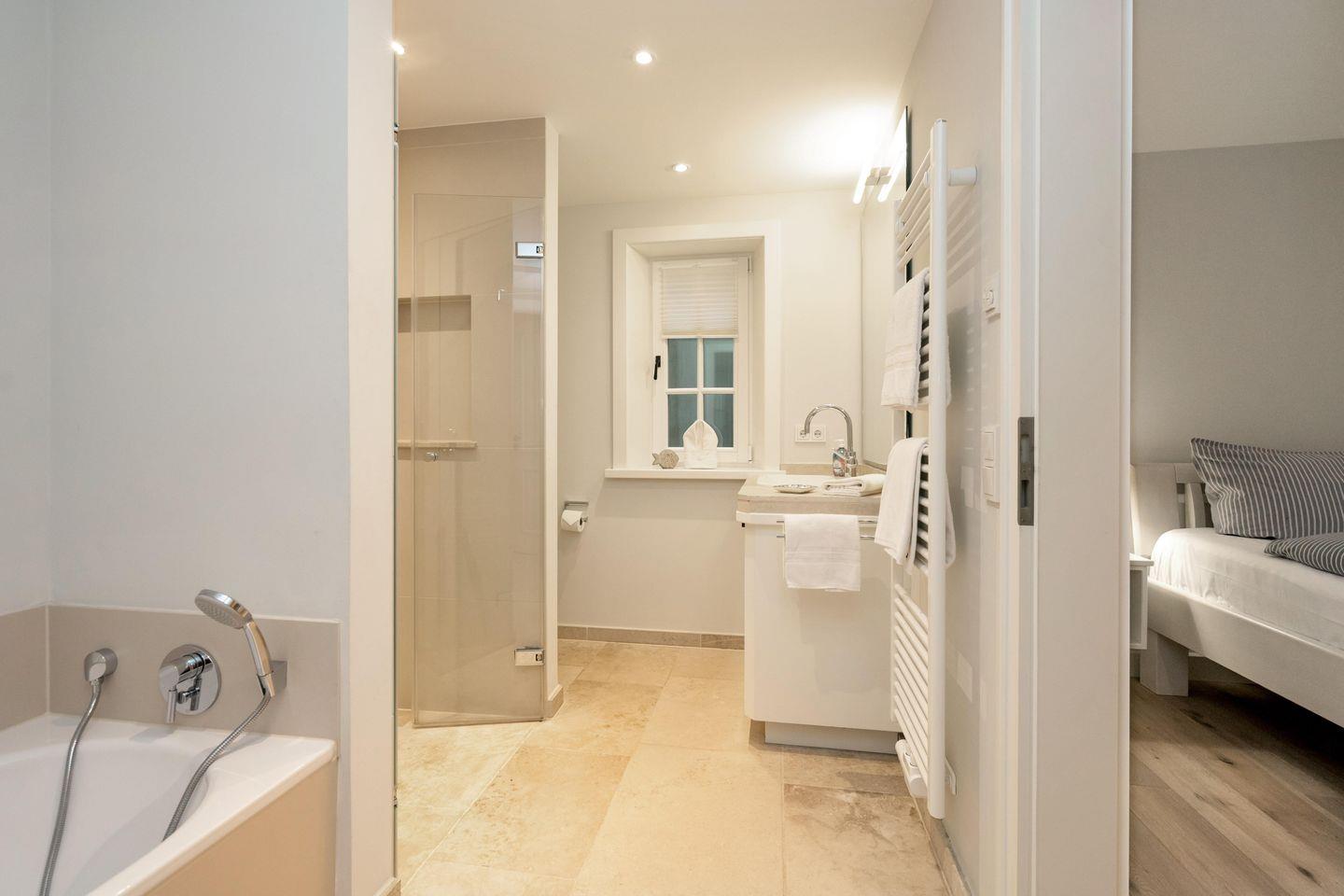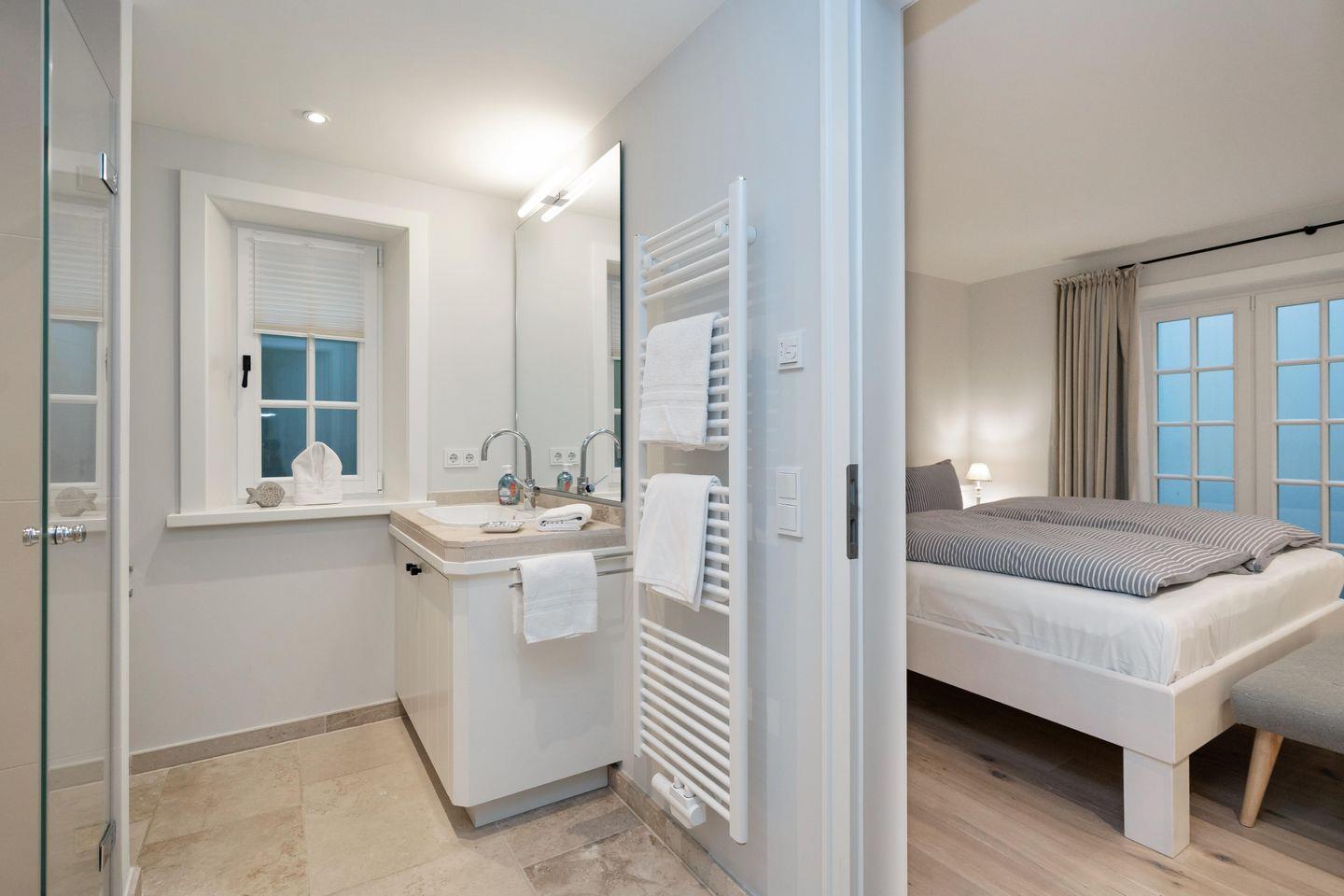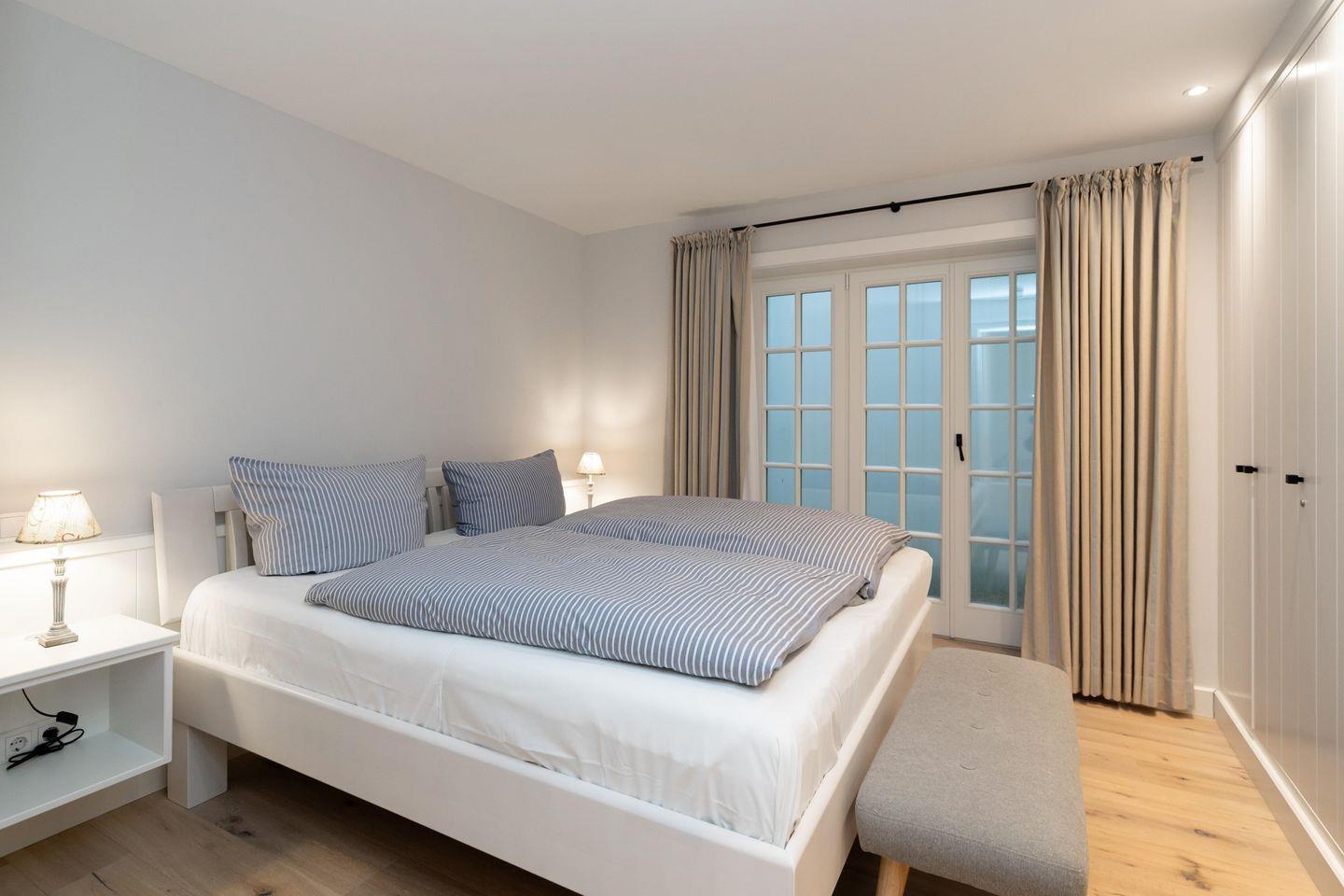 Ein Traum unter Reet. Diese friesische Doppelhaushälfte für bis zu 7 Personen im Herzen Keitums bietet auf 180 m² einen Mix aus Modernität und absoluten Luxus. Der lichtdurchflutete Wohnbereich mit offener Küche bietet viel Platz zum gemeinsamen Kochen, Essen und Verweilen. Auf der angrenzenden Terrasse samt Gartenmöbeln und Strandkorb (in der Saison) lassen sich viele Sonnenstunden verbringen. An kalten Tagen sorgt der Kachelofen im Wohnbereich für warme Temperaturen. Im Eingangsbereich befindet sich ein Gäste-WC. Über eine Treppe gelangen Sie ins Obergeschoss, dort erwarten Sie zwei Schlafzimmer sowie zwei großzügige Bäder. Im Dachgeschoss befindet sich ein Schlafzimmer mit Einzelbetten. Ein weiteres großzügiges Schlafzimmer sowie Badezimmer erwartet Sie im Souterrain. Dort dient Ihnen auch - besonders in den Wintermonaten - eine finnische Sauna mit Ruheraum als Wellnessoase. Alle Schlafräume sind durch hochwertige Tischlereinbauten ausgestattet und bieten somit viel Stauraum für einen Sylturlaub. WLAN, einen zugehörigem PKW-Stellplatz am Haus inkl. E-Ladestation sowie ein Waschtrockner stehen Ihnen zur Verfügung. Haustiere sind willkommen.