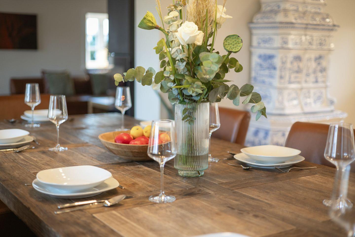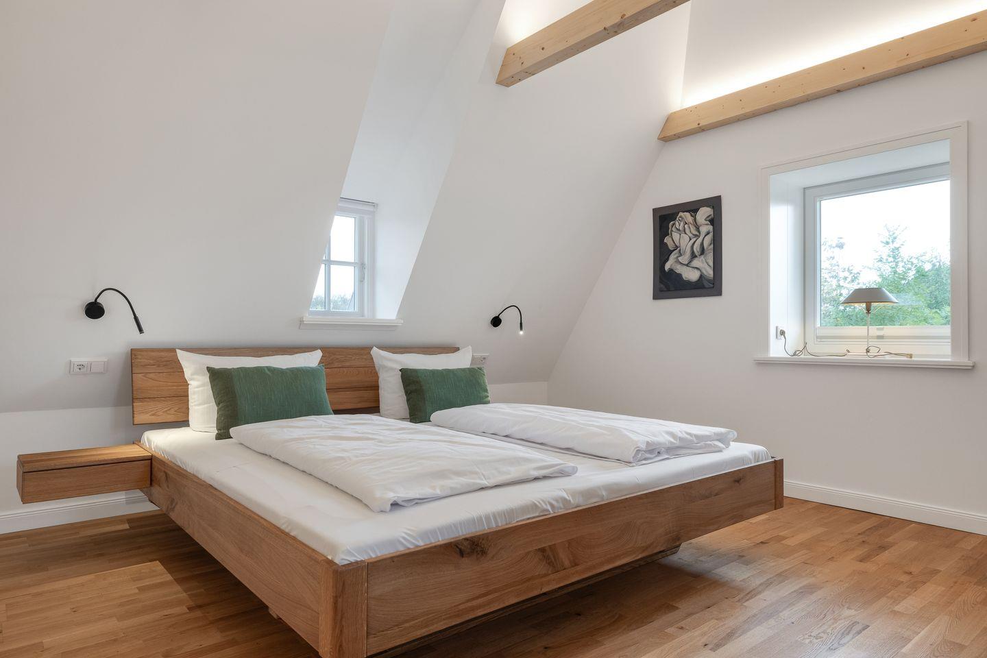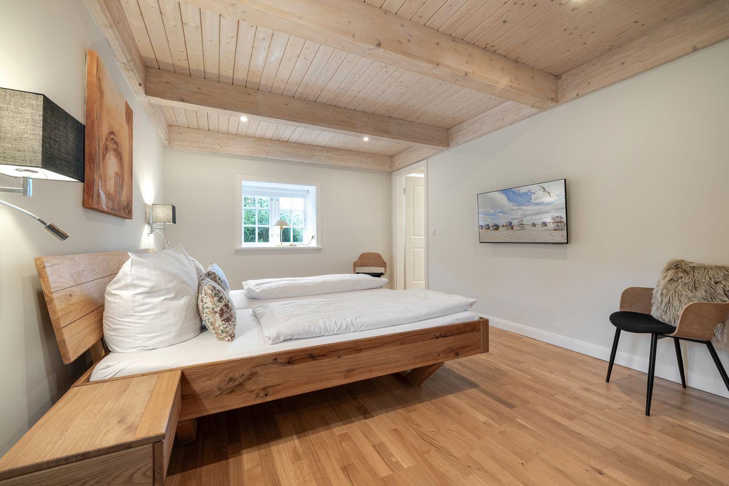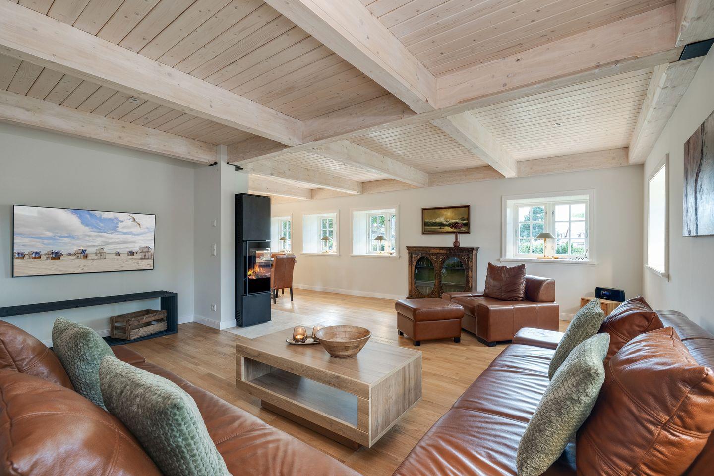 Ein Traum unter Reet! Dieses im Jahr 2025 vollständig sanierte ca. 200 m² große 5 Sterne Friesenhaus aus dem Baujahr 1745 für bis zu 7 Personen bietet Ihnen absolute Exklusivität im Ortskern Tinnums. Die Lage stellt den perfekten Ausgangspunkt dar, um sowohl die malerischen Tinnumer Wiesen zu erreichen als auch die Insel in alle Himmelsrichtungen zu erkunden. Im Erdgeschoss empfängt Sie ein lichtdurchfluteter, offener Wohn- und Essbereich samt voll ausgestatteter Landhausküche, die zum gemeinsamen Kochen und Verweilen einlädt. Ein Doppelschlafzimmer (200x200 cm) mit einem Bad en Suite sowie ein Gäste-WC finden Sie ebenfalls im Erdgeschoss. Das Obergeschoss beherbergt zwei weitere großzügige Doppelschlafzimmer (200x220 cm) inkl. moderner Einbauschränke, die genügend Stauraum für einen Sylturlaub bieten. Die Schlafzimmer verfügen jeweils über ein eigenes Tageslichtduschbad, wovon eins mit einer Sauna ausgestattet ist - der perfekte Ort, um zu entspannen. Für das Home Office eignet sich hervorragend das separate Zimmer inkl. großzügigem Schreibtisch. Dort steht ein Einzelbett (120x200 cm) für eine weitere Person zur Verfügung. Alle Schlafräume und das Wohnzimmer sind mit Smart-TVs ausgestattet, um Ihnen Unterhaltung und Komfort zu bieten. Die Südterrasse mit angrenzendem Garten und einem Strandkorb (saisonabhängig) lädt zu entspannten Stunden im Freien ein. Darüber hinaus stehen Ihnen WLAN, ein eigener PKW-Stellplatz sowie eine Waschmaschine und ein Trockner zur Verfügung. Haustiere sind hier herzlich willkommen, sodass auch Ihr vierbeiniger Begleiter sich wie zu Hause fühlen kann. Erkunden Sie tagsüber die charmante Insel Sylt und lassen Sie den Abend in gemütlicher Runde vor dem Kamin ausklingen.