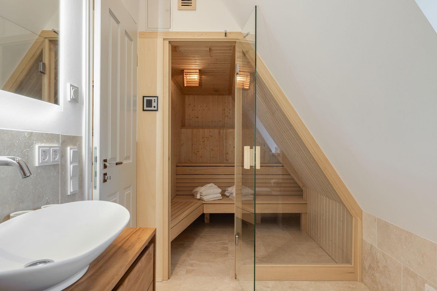 5 Sterne Reetdachhaus für 7 Pers. mit Sauna, Garten, Stellplatz, WLAN, Haustiere erlaubt.