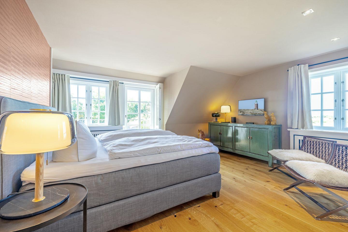 Ein wahrer Genuss für die Sinne! Im Feriendomizil Seabiscuit vereinen sich stilvolles Design, charmanter Flair und moderner Komfort zu einem harmonischen Gesamtbild. Ästhetik, soweit das Auge reicht – innen begeistert das Interieur mit Liebe zum Detail, außen eröffnet sich vom Balkon ein traumhafter Blick über die idyllischen Tinnumer Wiesen. Für Sylt-Liebhaber mit Sinn für das Besondere!