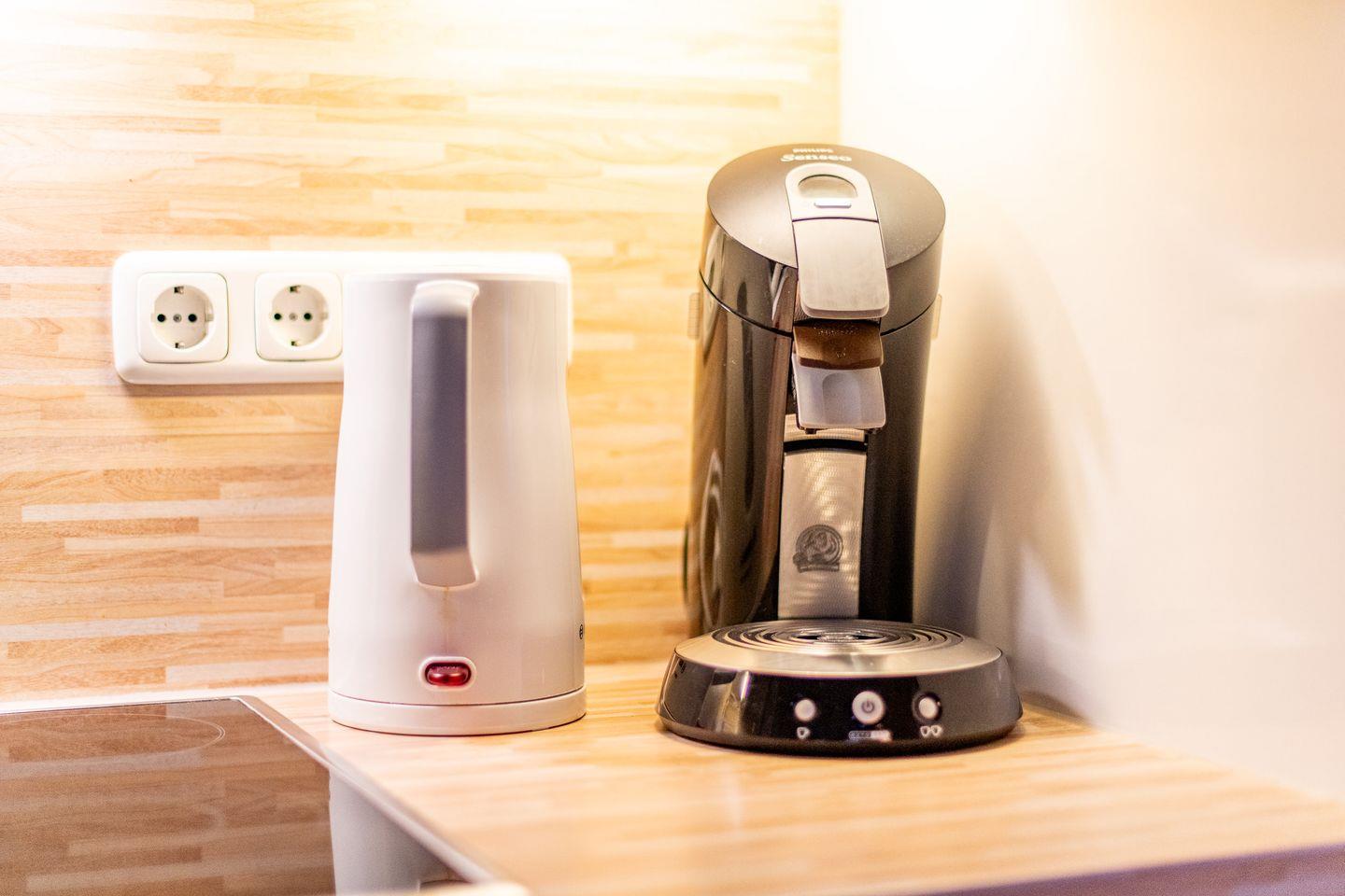 Die offene Küche lässt keine Wünsche offen und bietet mit Geschirrspüler, Filterkaffeemaschine und modernem Komfort alles, was Sie für Ihre Mahlzeiten benötigen.