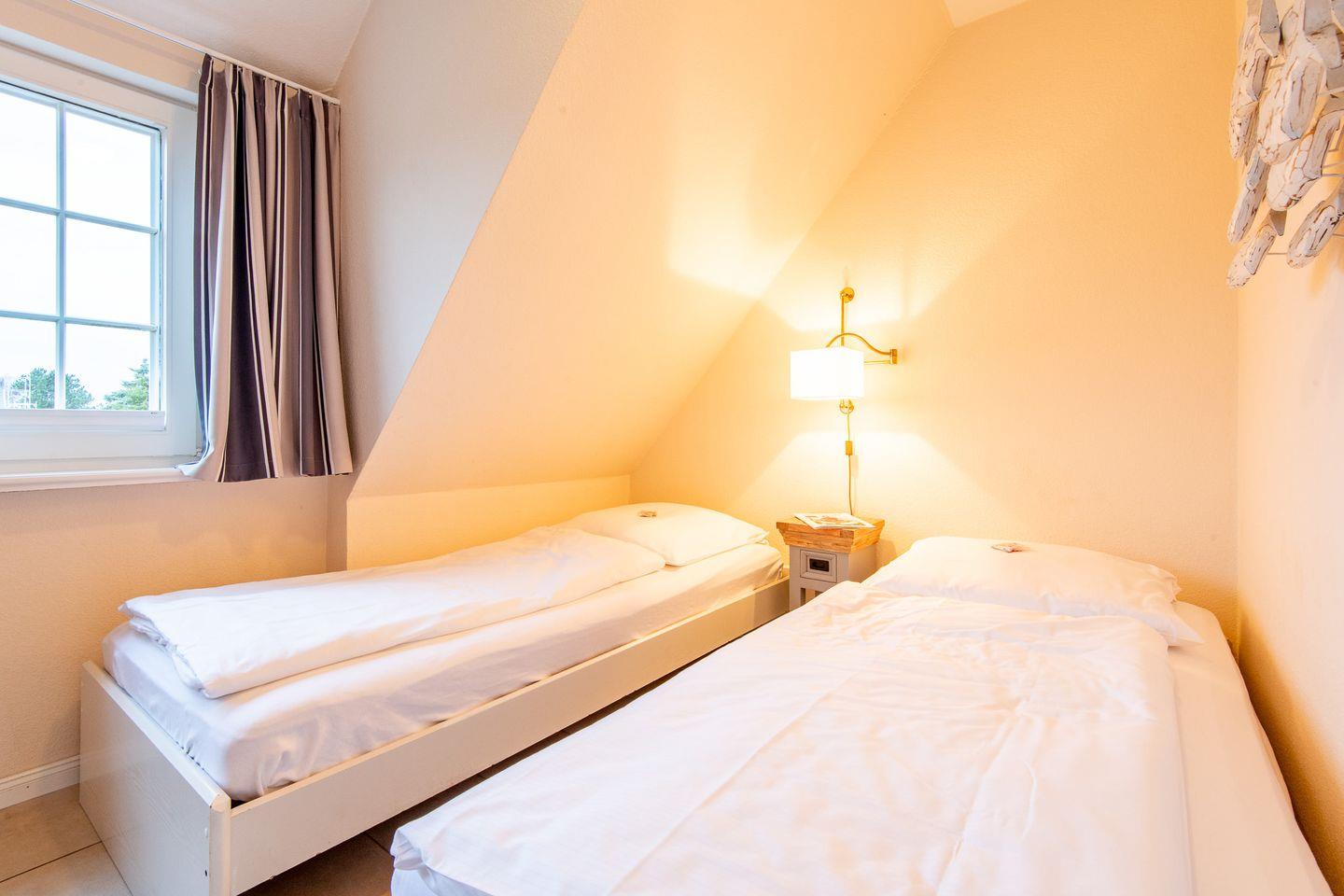 Im ersten Schlafzimmer finden Sie ein komfortables Doppelbett (2x 100x200 cm), einen TV und geräumige Einbauschränke. Das zweite Schlafzimmer verfügt über zwei Einzelbetten (je 90x200 cm) und einen Kleiderschrank – ideal für erholsame Nächte.