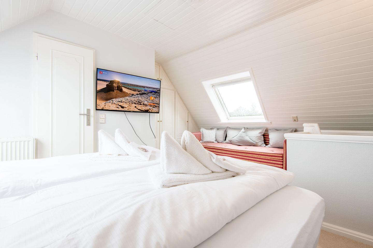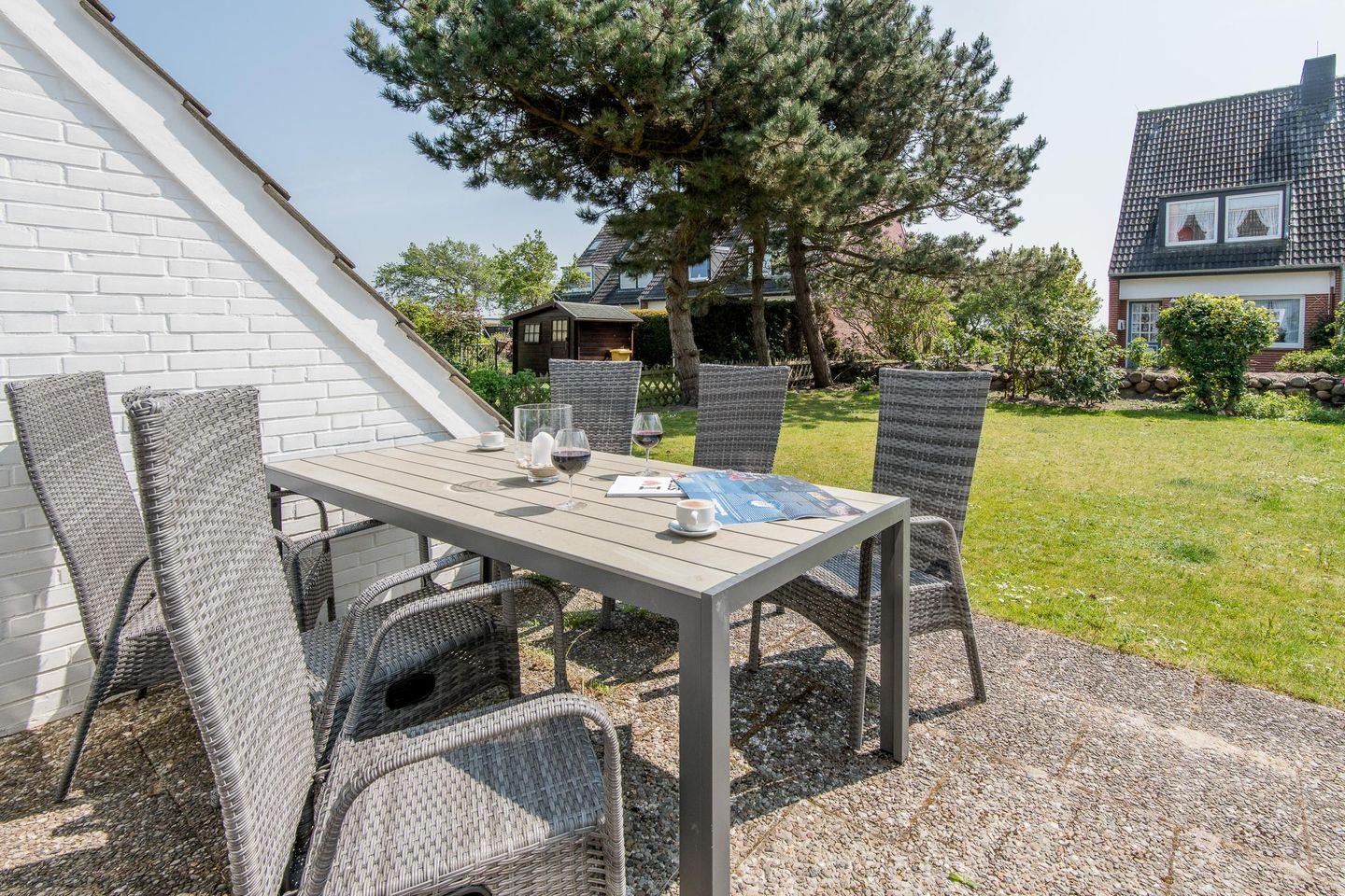 Die charmante Doppelhaushälfte bietet auf drei Ebenen und rund 120 m² viel Raum für bis zu 6 Personen, ideal für Familien oder Gruppen. Die idyllische Lage in Tinnum lädt zum Entspannen und Erholen in der Natur ein, während die Tinnumer Wiesen mit zahlreichen Rad- und Wanderwegen direkt vor der Tür liegen. Der sonnige Garten nach Süden, ausgestattet mit einer möblierten Terrasse und Strandkorb, verspricht erholsame Tage im Freien. Hunde sind willkommen.