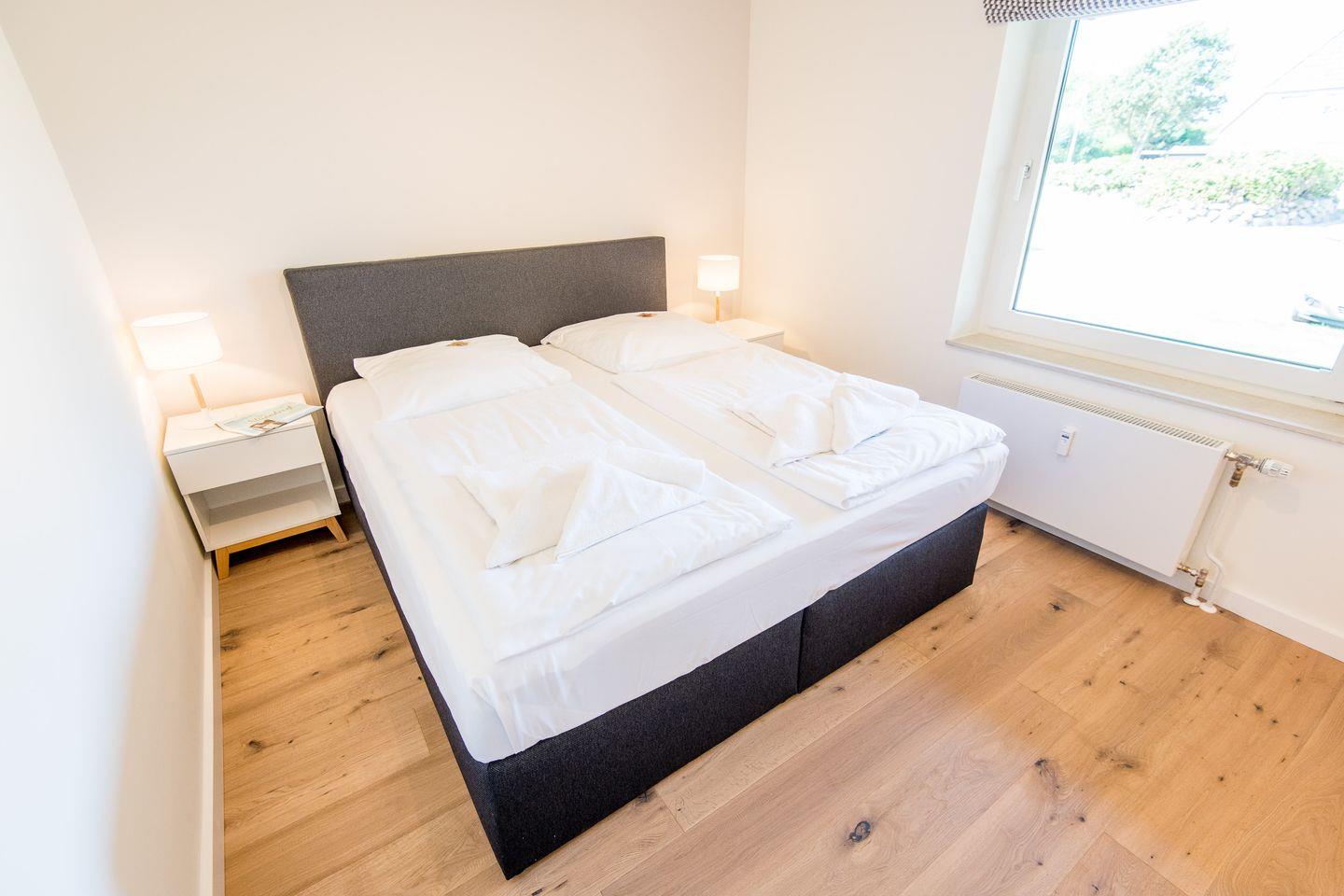 Das Schlafzimmer ist mit einem komfortablen Boxspringbett (180x200 cm) ausgestattet und bietet großzügige Schränke für Ihre Garderobe. Hier können Sie sich nach einem erlebnisreichen Tag erholen und zur Ruhe kommen.