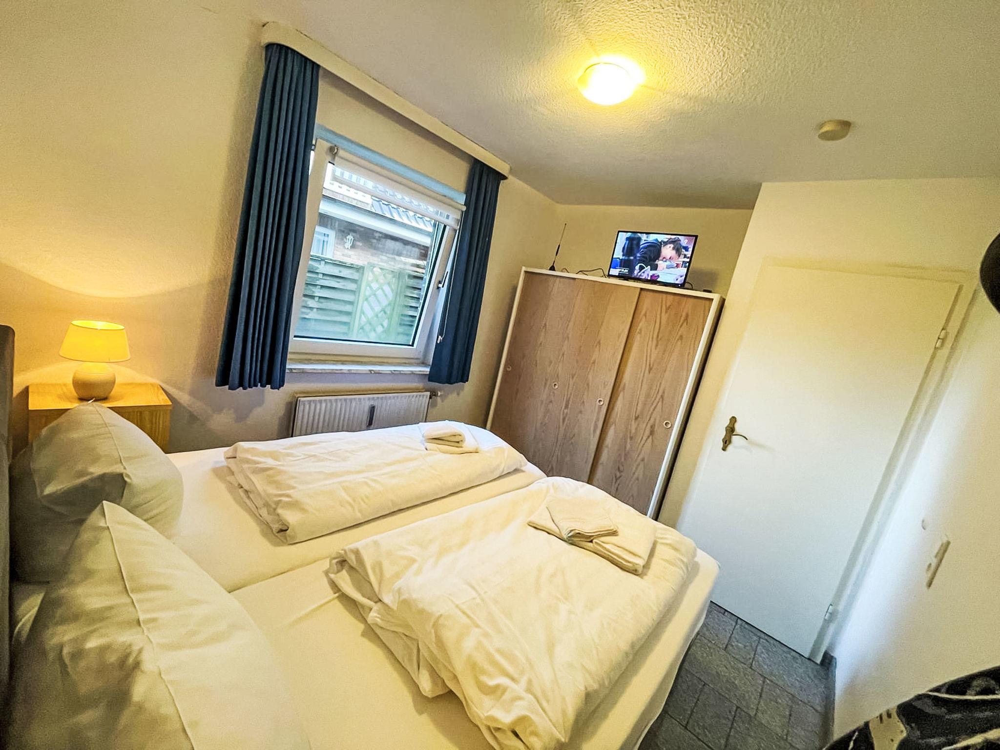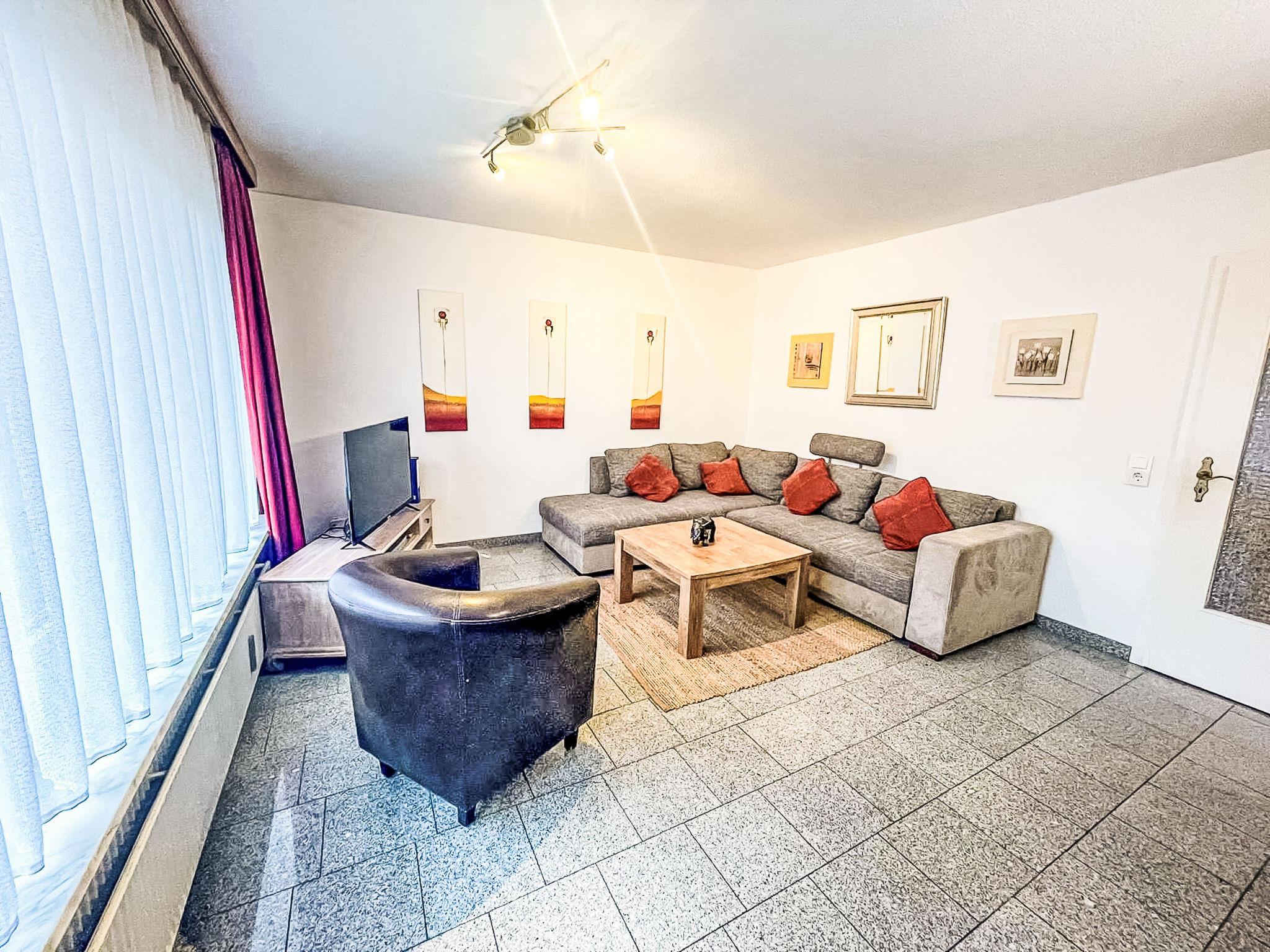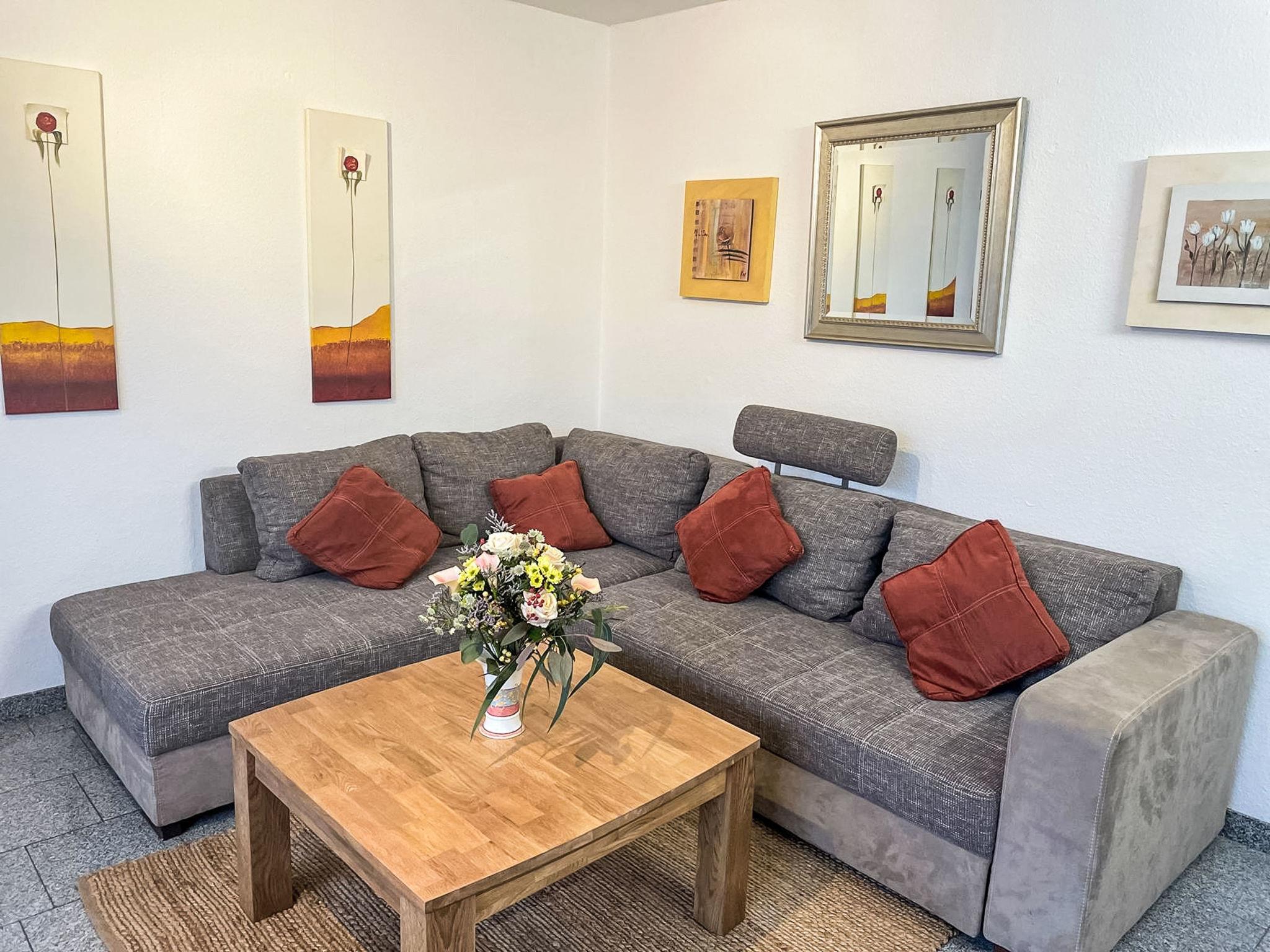"Fewo 1 in ruhigem Haus", 2-room apartment 40 m2, on the ground floor. Comfortable furnishings: living/dining room with satellite TV (flat screen), radio, CD-player and DVD. 1 room with 1 double bed and satellite TV (flat screen). Kitchenette (oven, dishwasher, 4 ceramic glass hob hotplates, toaster, kettle, microwave, electric coffee machine) with bar, dining table. Shower/WC. Heating. Facilities: baby cot, hair dryer. Internet (WiFi, free). Parking (1 car) at the house. Please note: non-smokers only. Maximum 1 pet/ dog allowed. Smoke alarm.