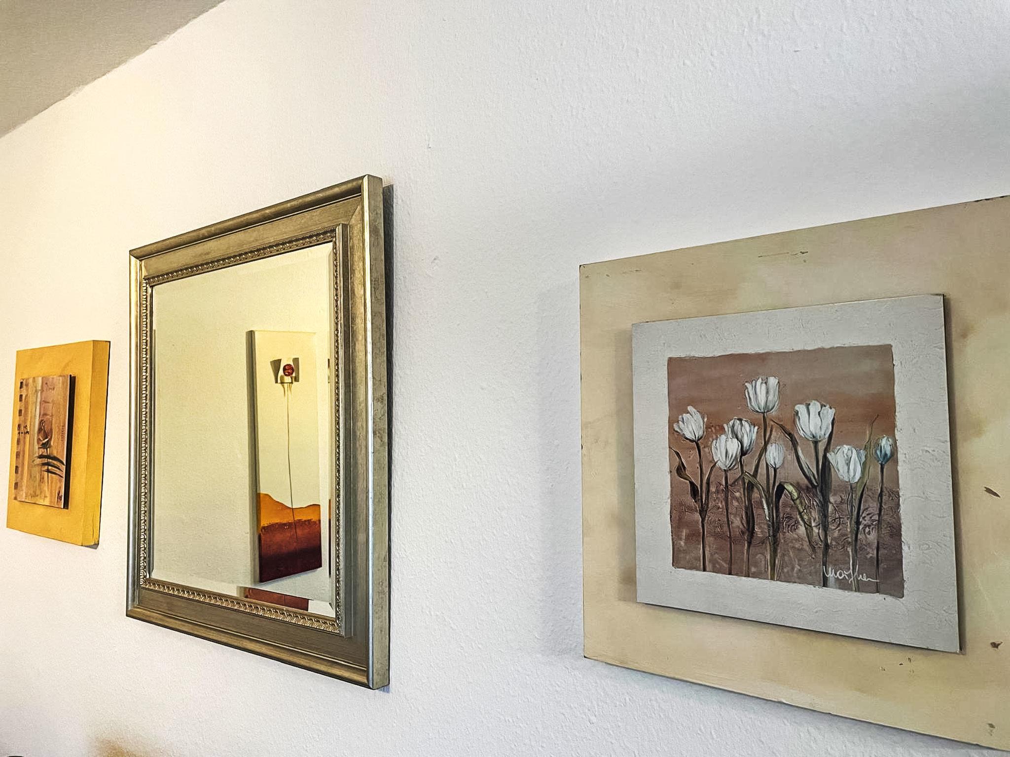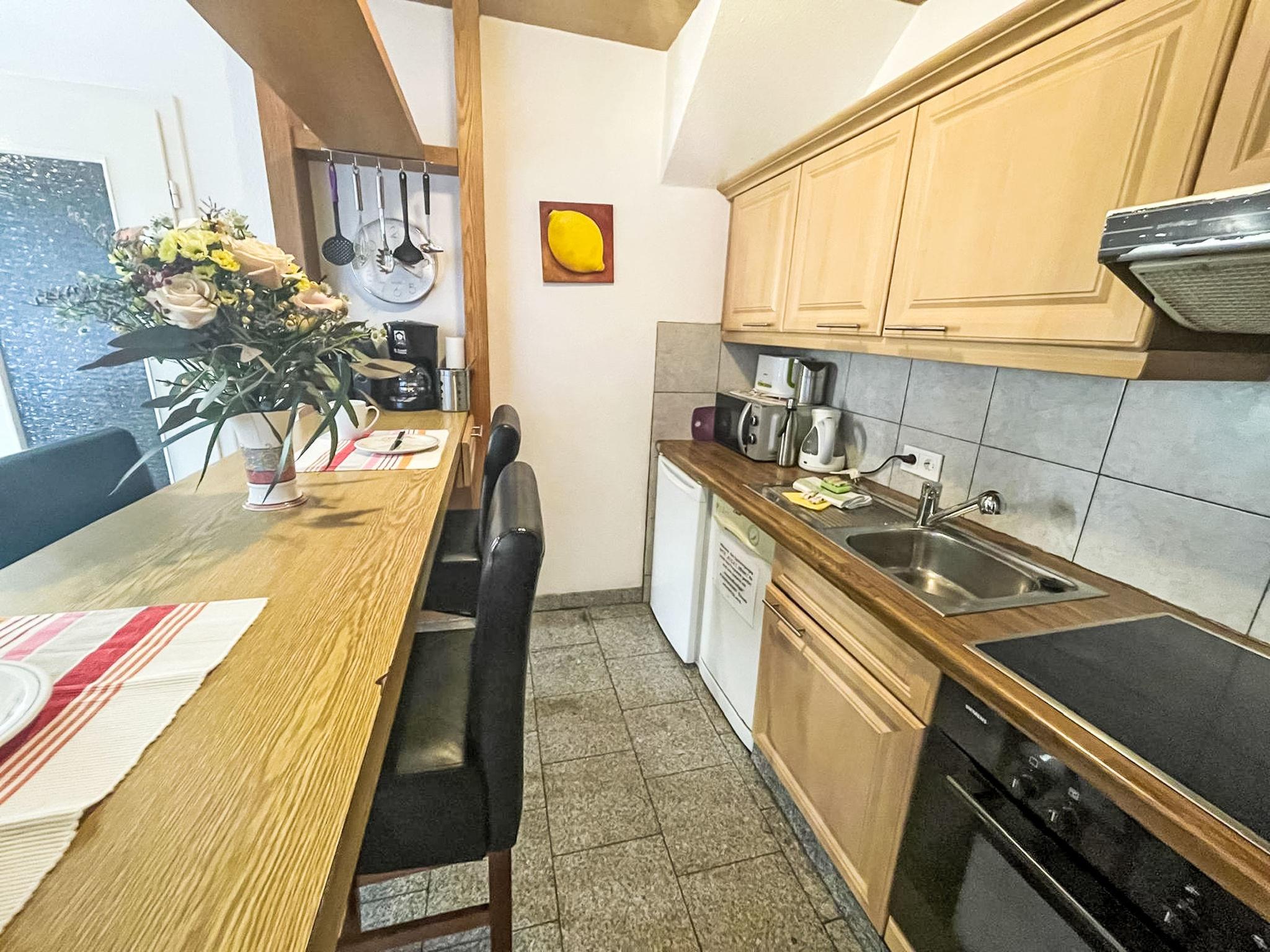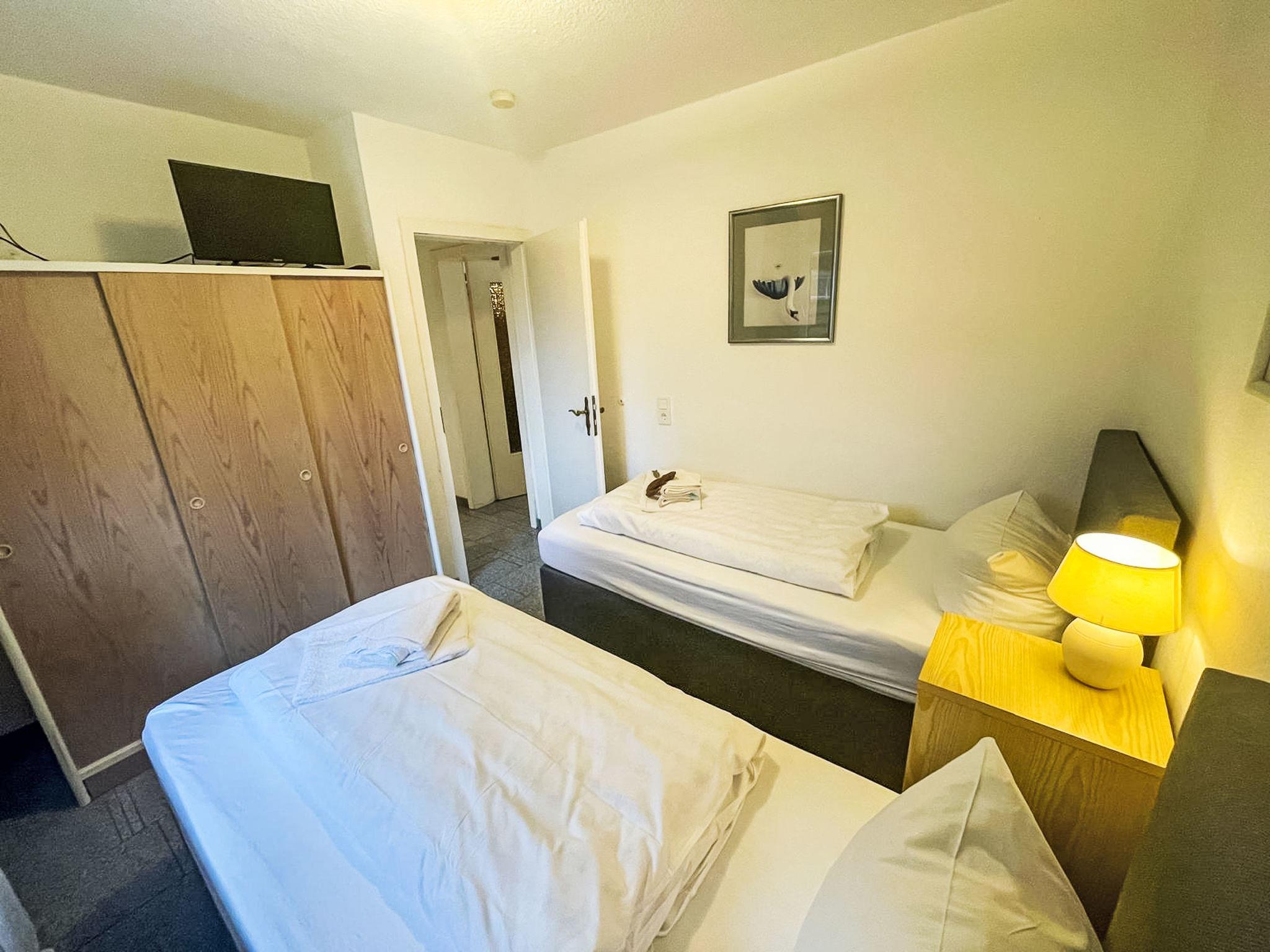 "Fewo 1 in ruhigem Haus", 2-room apartment 40 m2, on the ground floor. Comfortable furnishings: living/dining room with satellite TV (flat screen), radio, CD-player and DVD. 1 room with 1 double bed and satellite TV (flat screen). Kitchenette (oven, dishwasher, 4 ceramic glass hob hotplates, toaster, kettle, microwave, electric coffee machine) with bar, dining table. Shower/WC. Heating. Facilities: baby cot, hair dryer. Internet (WiFi, free). Parking (1 car) at the house. Please note: non-smokers only. Maximum 1 pet/ dog allowed. Smoke alarm.