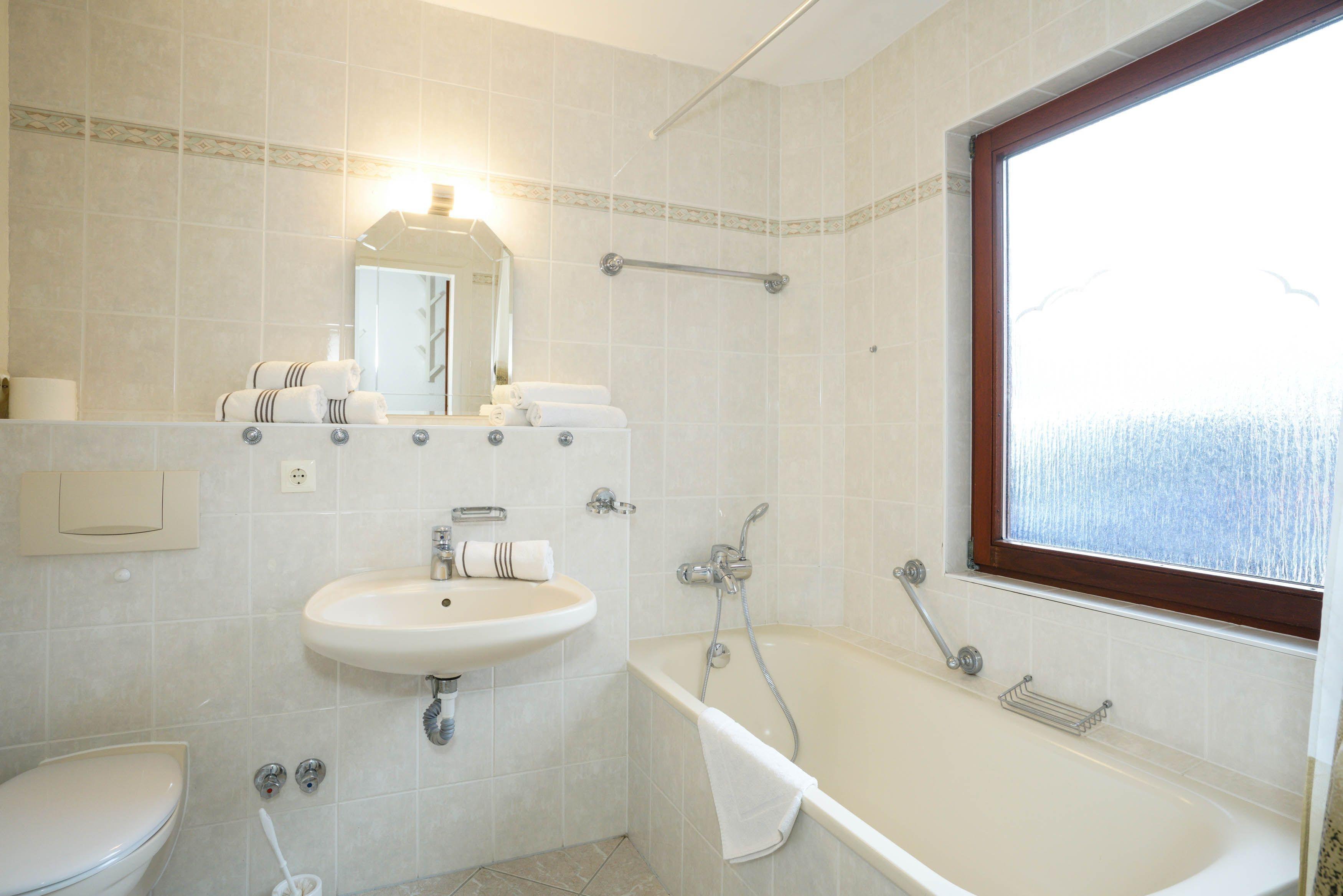 Badezimmer mit Badewanne.