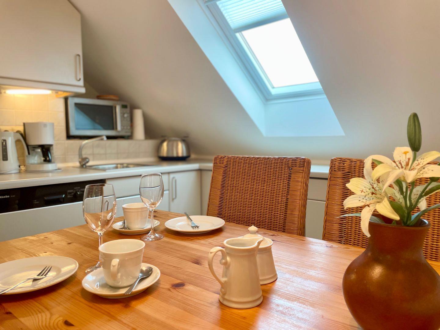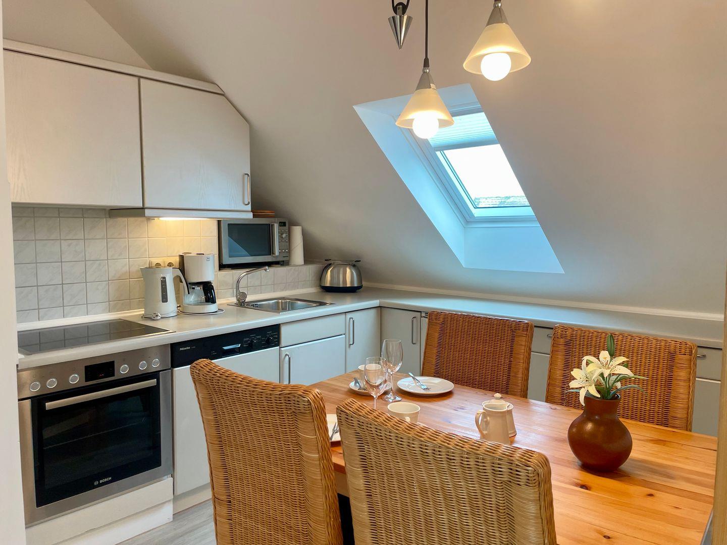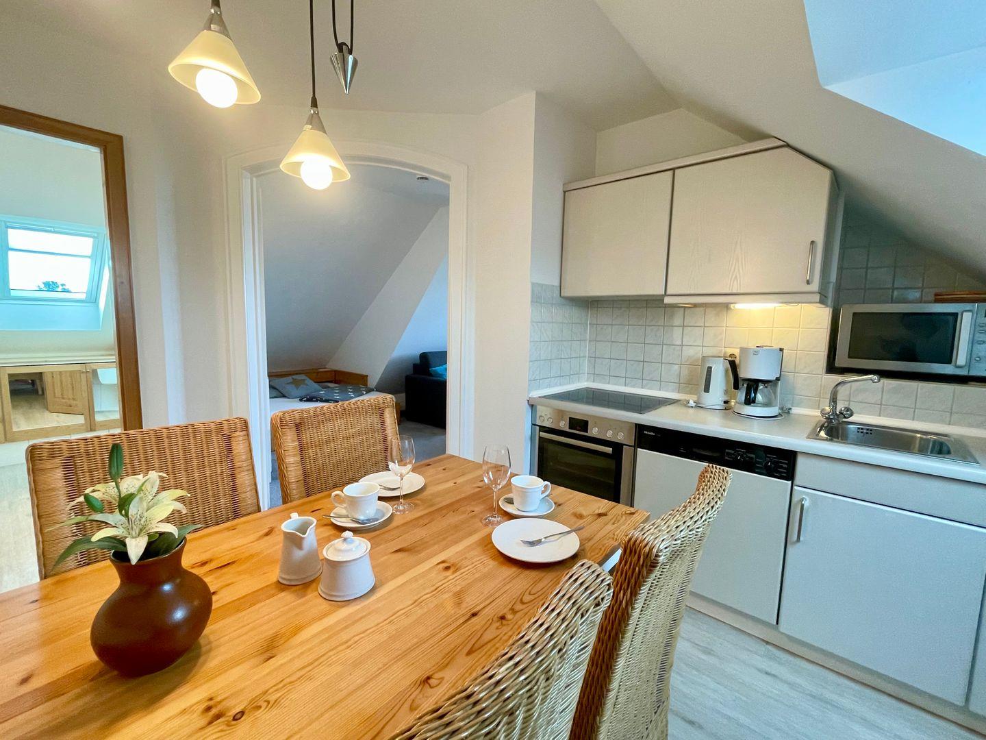Das "Seepferdchen" ist eine 2-Zimmer Wohnung für 2 Personen im Obergeschoss. Das Appartement ist ca. 55qm groß und verfügt über eine sehr gut ausgestattete Küche mit Cerankochfeld, Backofen und Mikrowelle, sowie einem großem Esstisch für 4 Personen. Das separate Schlafzimmer mit Doppelbett (160x200cm) und Einbauschränken lädt zum Träumen ein. In dem großen Wohnzimmer befindet sich eine schöne Sitzgruppe und eine gemütliche Kuschelecke. Das angrenzende Duschbad mit Tageslicht rundet dieses Appartement ab. Der eigene Parkplatz befindet sich direkt vor dem Haus. Für weitere Fragen, steht Ihnen sehr gerne die Vermietung "Appartements Eberhardt" zur Verfügung.