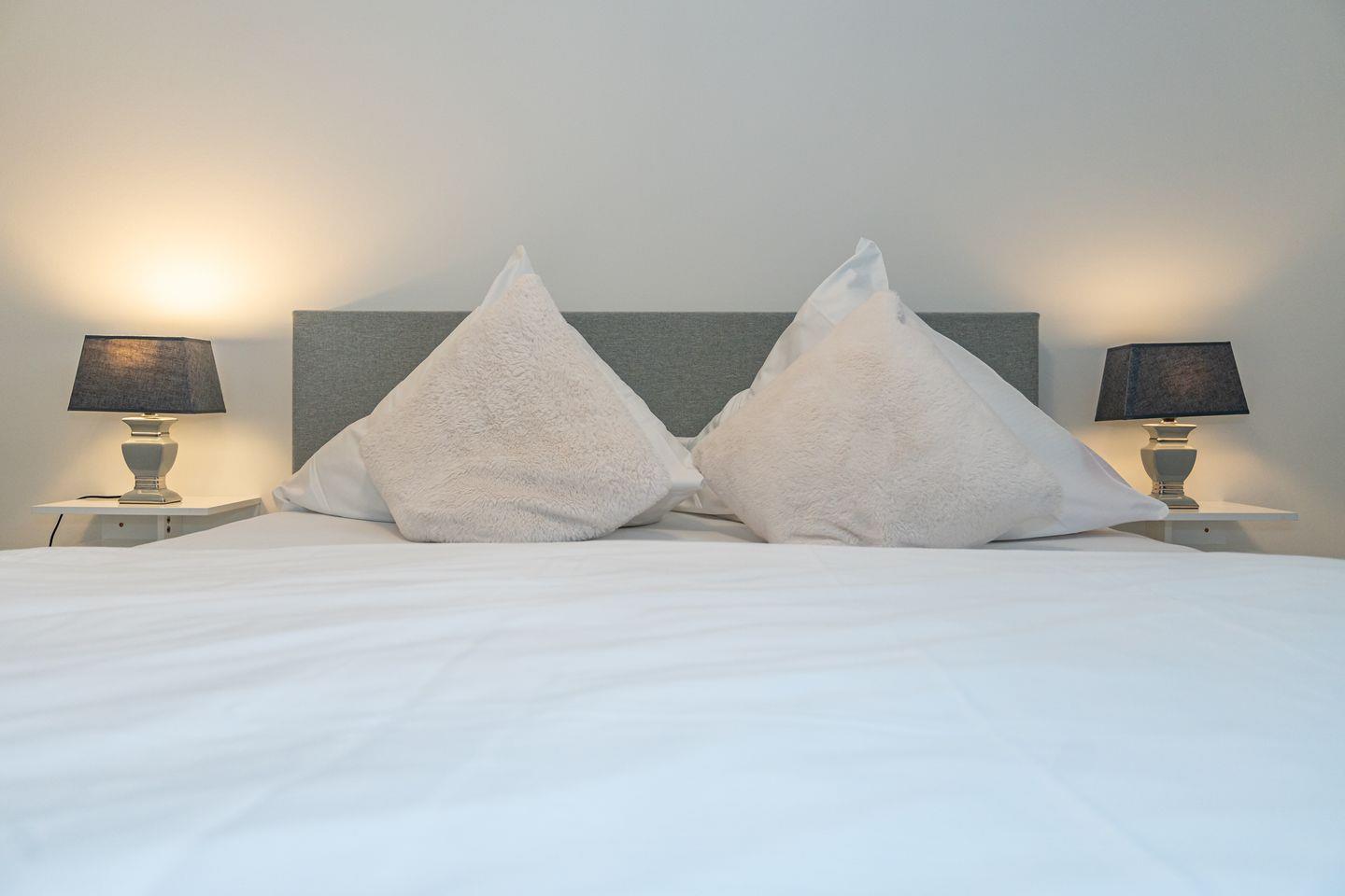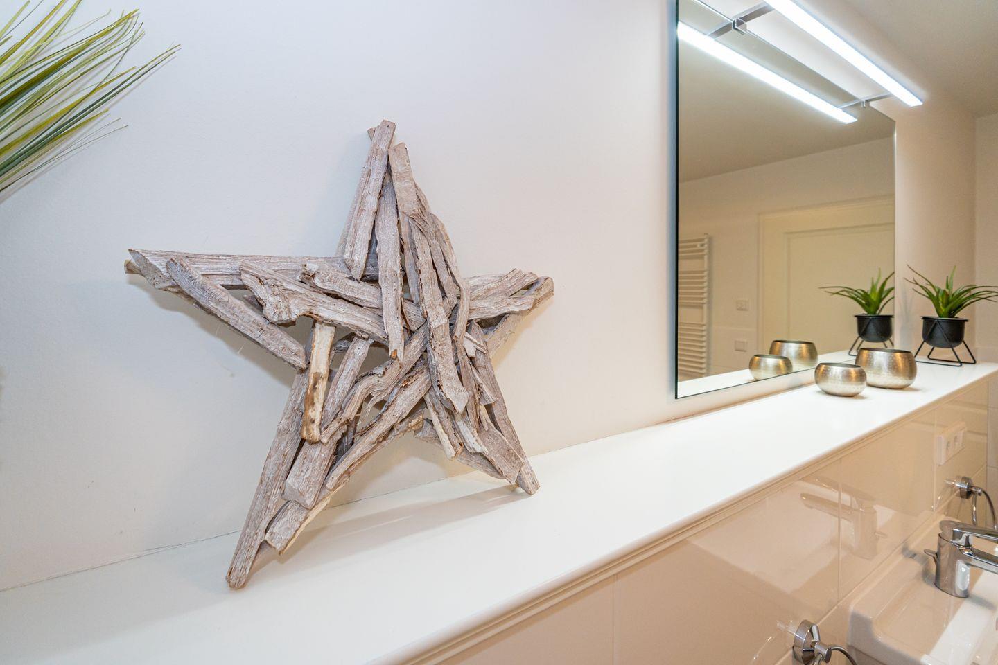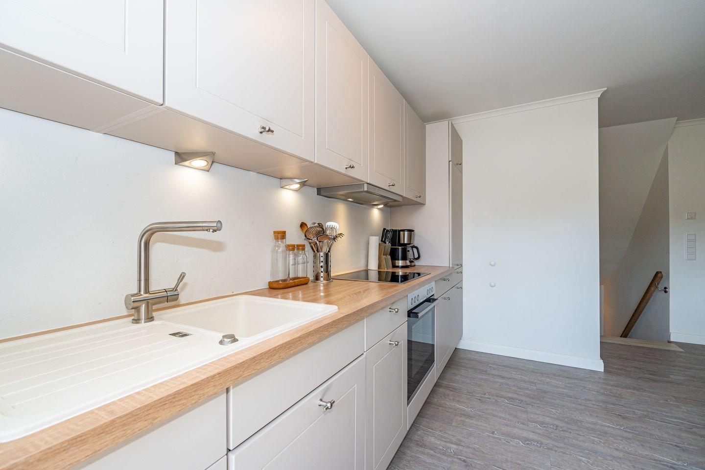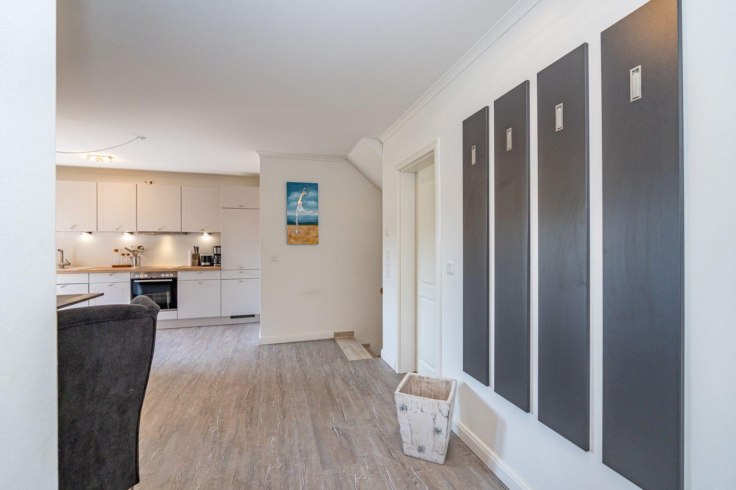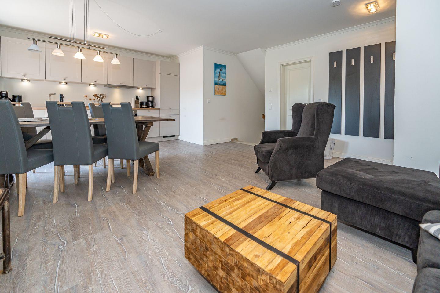 Auf 80 Quadratmetern empfängt Sie Ihre moderne und helle Ferienwohnung mit eigenem Eingang. Im Wohn- und Esszimmer mit offener Küche lassen sich gesellige Stunden zu zweit oder in großer Runde mit bis zu sechs Personen verbringen. Ob auf der gemütlichen Sitzgruppe oder am großen Esstisch bei köstlichen Speisen. In der offenen Küche können Sie nach Herzenslust kochen denn hier müssen Sie auf nichts verzichten. Ein Backofen mit Cerankochfeld, Kühlschrank mit Gefrierfach, Spülmaschine, Toaster, Filterkaffeemaschine und Espressomaschine erwarten Sie hier. Im Souterrain befindet sich das große Badezimmer mit separater Dusche, Badewanne, WC, Haartrockner und Waschtisch.