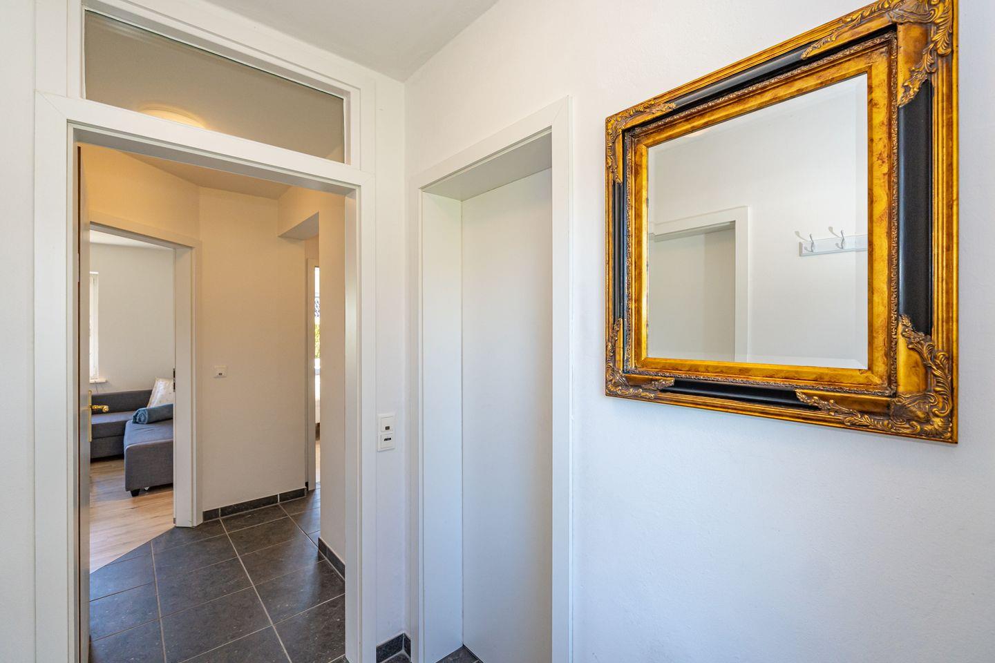 Die Ferienwohnung bietet Platz für bis zwei Personen und ist perfekt für einen erholsamen Urlaub. Die Ferienwohnung verfügt über ein Schlafzimmer, ein modernes Badezimmer mit Dusche sowie eine offene, voll ausgestattete Küche, die in den Wohnbereich übergeht.