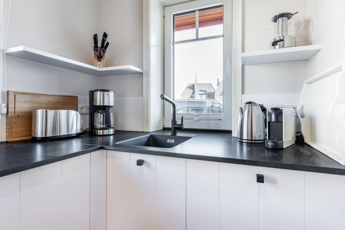 EG: Wohnraum mit Flatscreen-TV Kachelofen, W-LAN, Essbereich, Küchenzeile mit Backofen-Mikrowellen-Kombi, Induktionsherd, Geschirrspülmaschine, Nespressomaschine, Terrasse mit Gartenmöbeln (April-Oktober), Badezimmer mit Dusche und WC, Waschmaschine und Trockner.