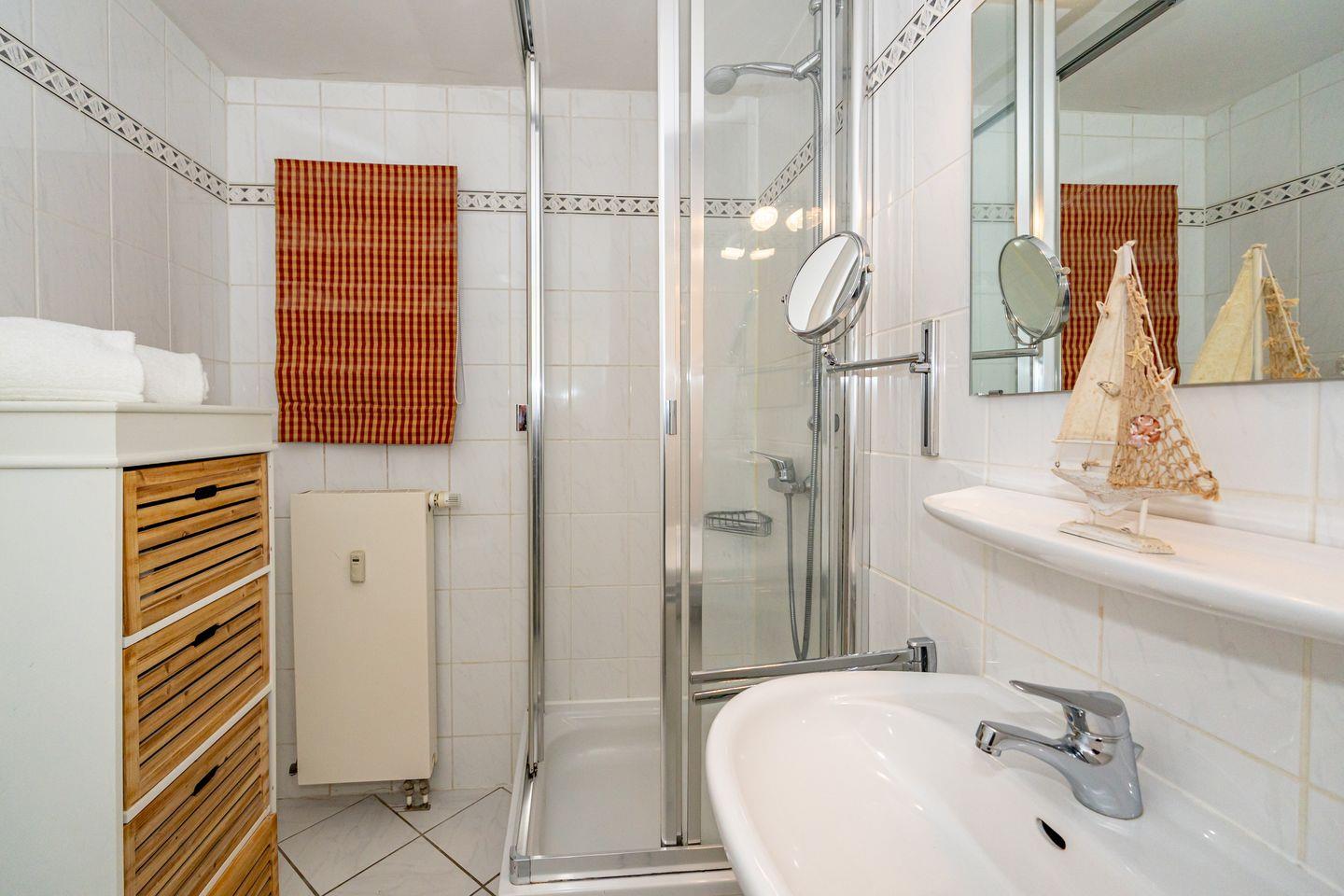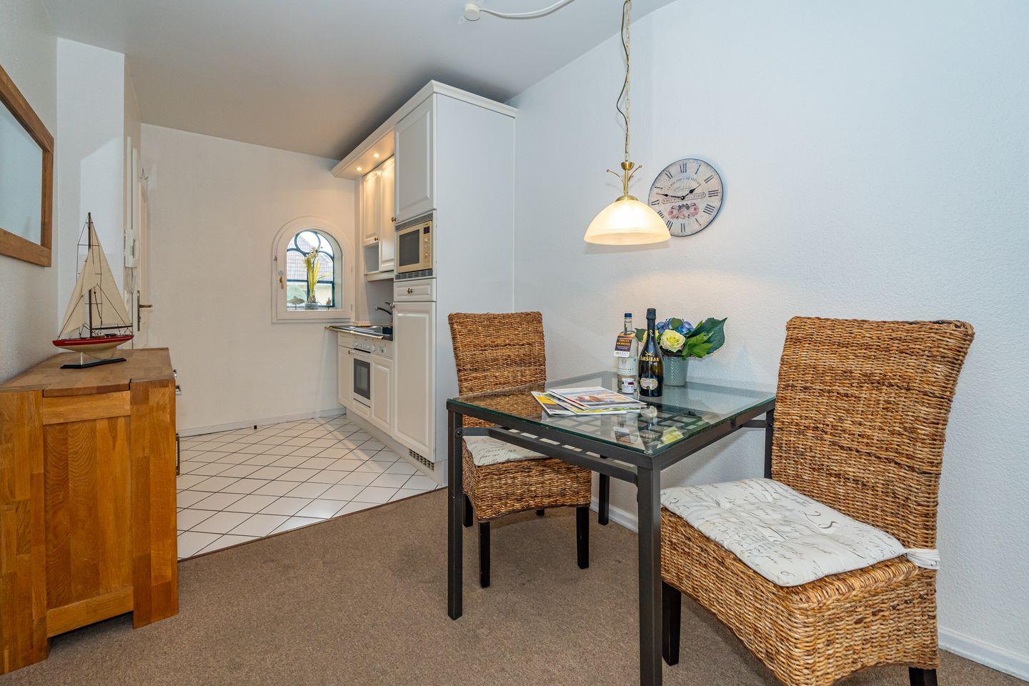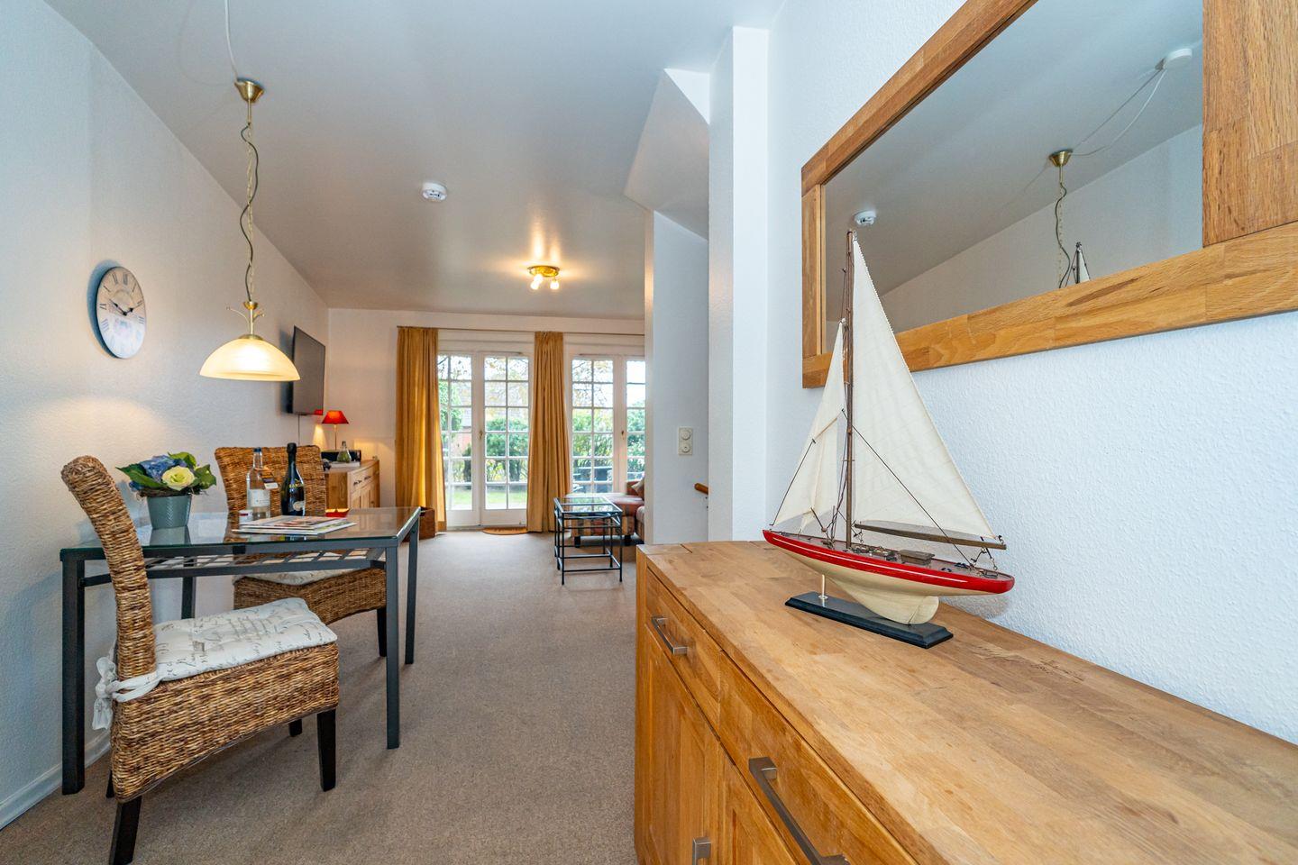 Zentral in Westerland, liebevoll und mit warmen Farben eingerichtet begrüßt Sie die zwei Zimmer Ferienwohnung auf 50 qm über zwei Etagen. Im Erdgeschoss befindet sich das helle, offene Wohn- und Esszimmer mit Ecksofa, und Flachbildfernseher, Stereoanlage sowie die Essecke. Die offene Küche mit Mikrowelle, Cerankochfeld, Backofen und Geschirrspüler ist mit allem ausgestattet, was es bedarf um köstliche Mahlzeiten zuzubereiten. Vom Wohnbereich gelangen Sie auf die wunderbare Süd Terrasse welche einlädt die angenehme Sylter Sonne den ganzen Tag zu genießen. Im Souterrain erwarten Sie das Schlafzimmer mit Doppelbett, Kleiderschrank und Flat TV sowie das Badezimmer mit WC, Dusche, Waschbecken und Haartrockner. Ein eigener Parkplatz steht Ihnen auf dem Grundstück zur Verfügung.