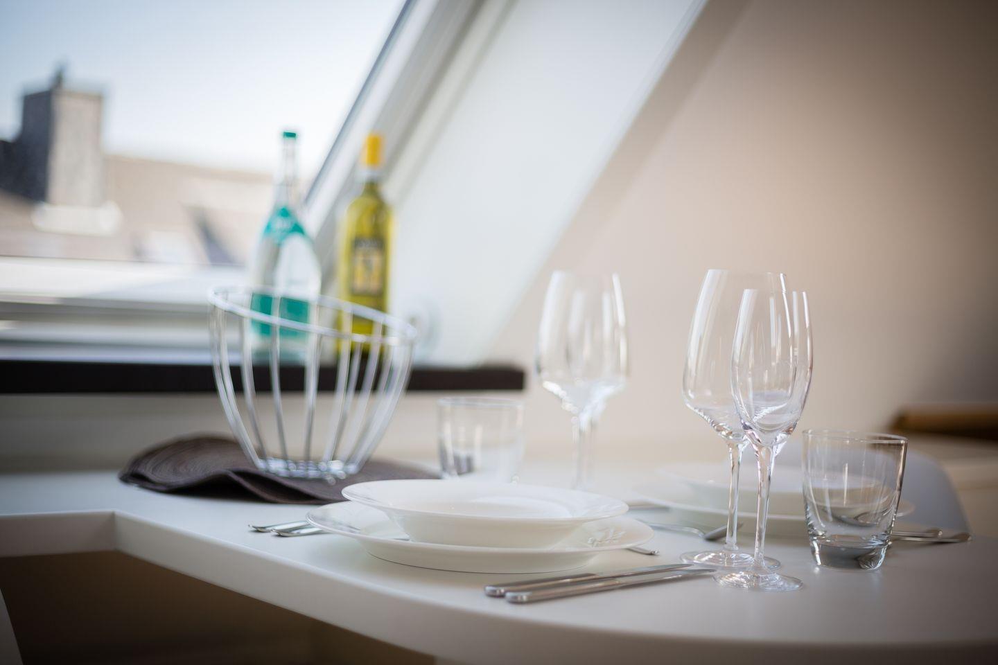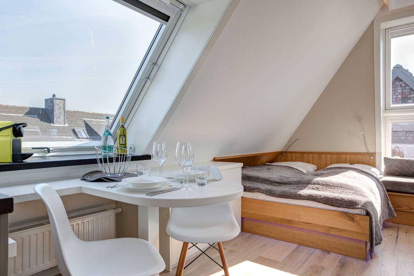 In Ihrem Appartement "Sky" erleben Sie daher nicht das klassische "form follows function", sondern kommen in den Genuss einer höheren Evolutionsstufe des Designs, nämlich des "form meets function". Raumästhetik verschmilzt mit zahlreichen Möglichkeiten, Ihren Traumurlaub in einem ganz besonderen Domizil zu verbringen. Und dafür bedarf es eben nicht viel Fläche, sondern einer detailversessenen, genialen Raumplanung und -umsetzung.