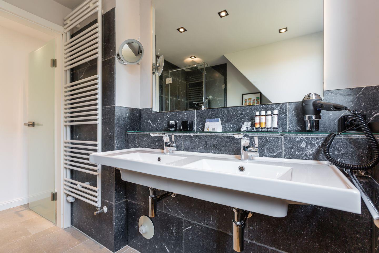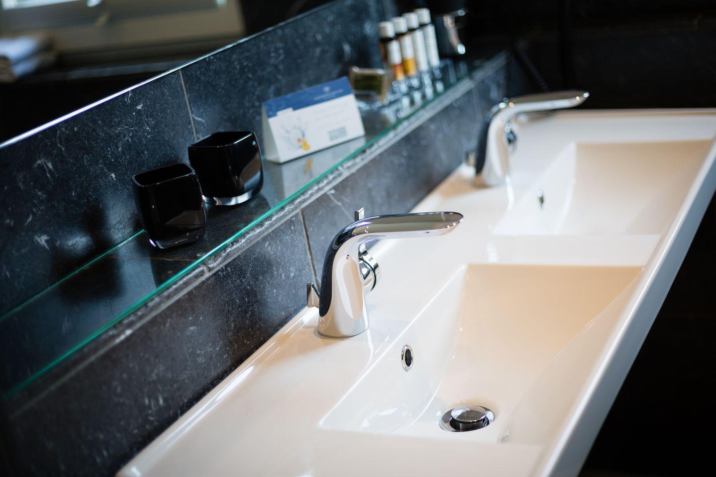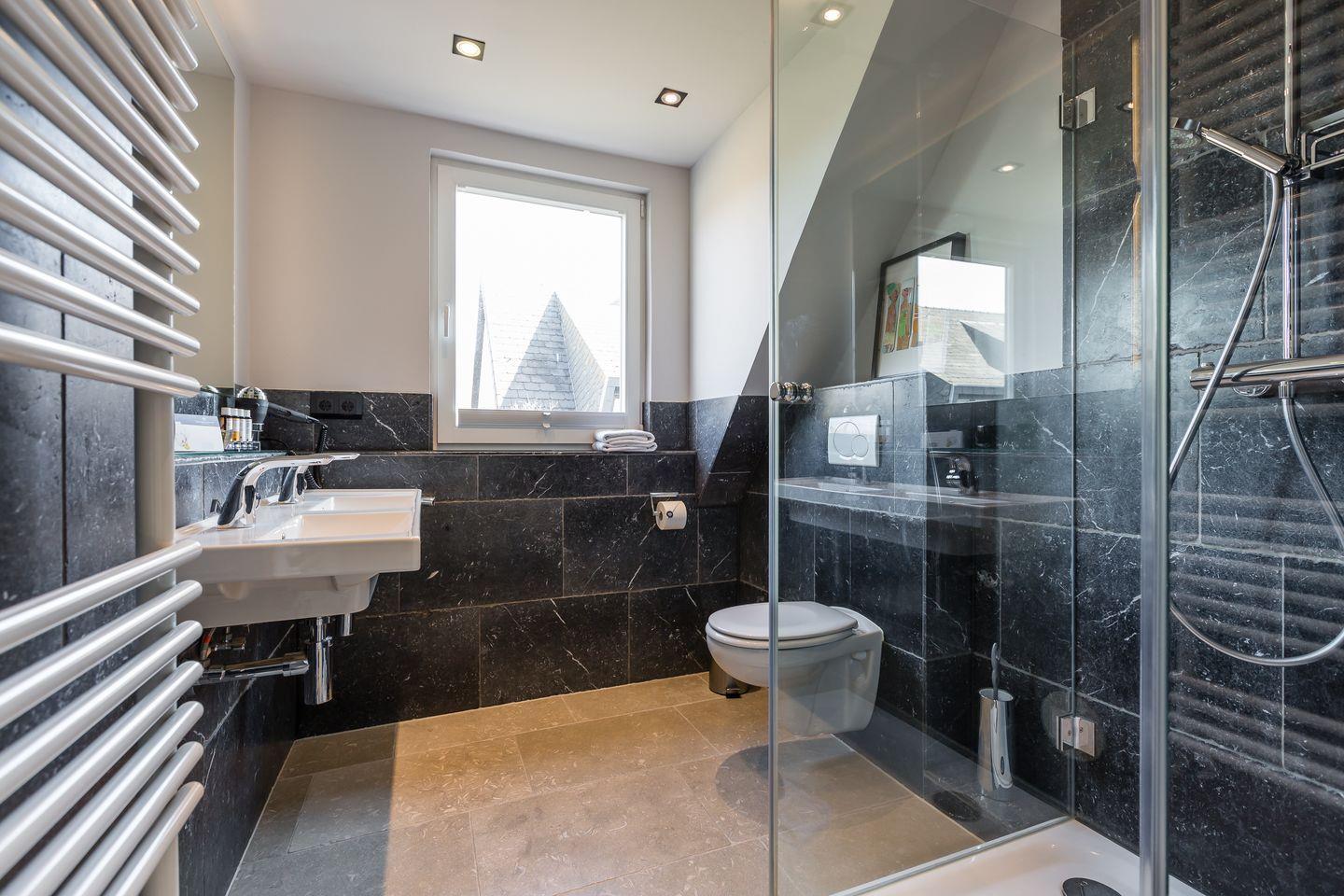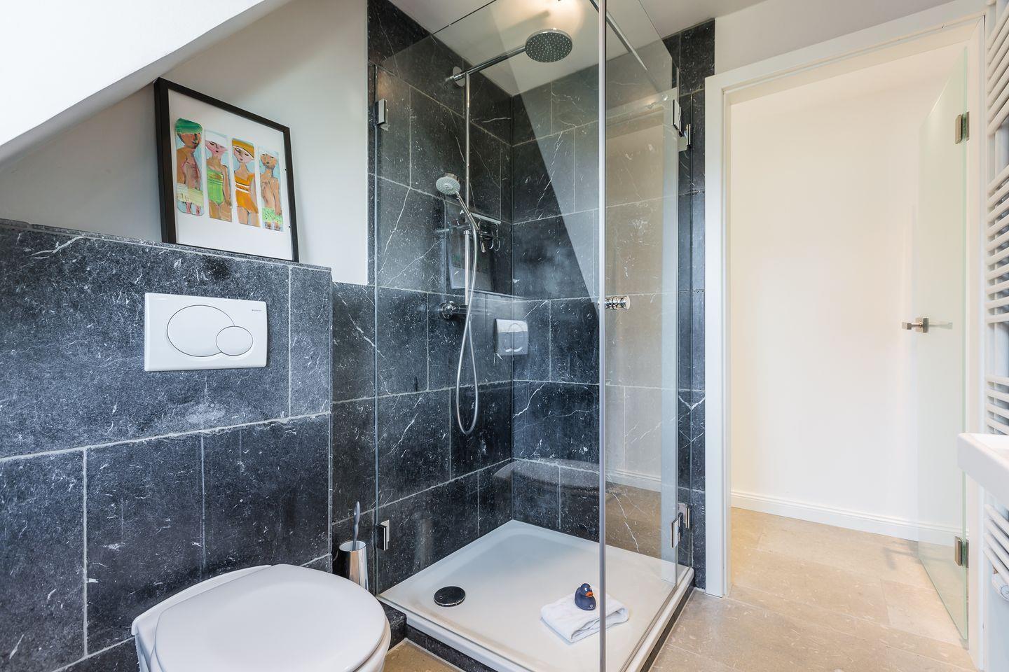 Im auch von der Nachbarwohnung zugänglichem Treppenhaus steht Ihnen im Erdgeschoss noch ein weiteres Badezimmer bei Bedarf [&] "on top" zur Verfügung.