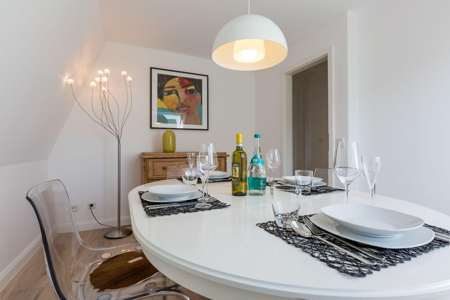 Sehr schön gestalteter Wohnraum mit Kaminofen und Flatscreen-TV. Auch ein iPod-Dock sowie BluRay-Player dürfen natürlich nicht fehlen.. Vollwertige, separat gelegene Küche mit Mikrowelle, NESPRESSO-Maschine, Backofen und Geschirrspüler. Eine integrierte Waschmaschine steht Ihnen kostenfrei ebenfalls in der Wohnung zur Verfügung. Separat gelegener, moderner Essbereich mit ausreichend Platz für 4 Personen. Mit den zwei großzügigen Schlafräumen mit je einem Doppelbett (180x200cm-Matratzen getrennt) und Flatscreen-TV finden Sie traumhaften Schlaf oder wahlweise ebenfalls eine Rückzugsmöglichkeit zum Lesen, Internet-Surfen oder Musikhören. Tolles Wohlfühlbad mit großer Dusche und WC sowie schönem Doppelwaschtisch. Im auch von der Nachbarwohnung zugänglichem Treppenhaus steht Ihnen im Erdgeschoss noch ein weiteres Gäste-WC bei Bedarf [&]"on top" zur Verfügung.