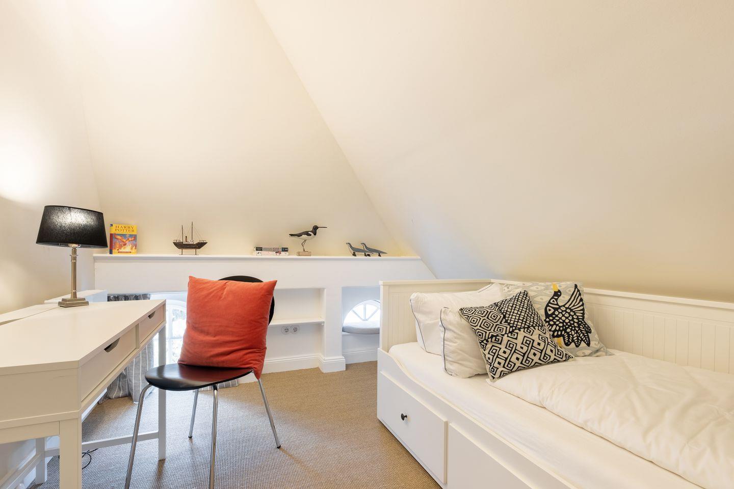 OG: Ein Schlafzimmer mit Doppelbett (180x200cm-Matratze getrennt) und TV, ein Schlafzimmer mit Einzelbett (80x200cm), Duschbad.