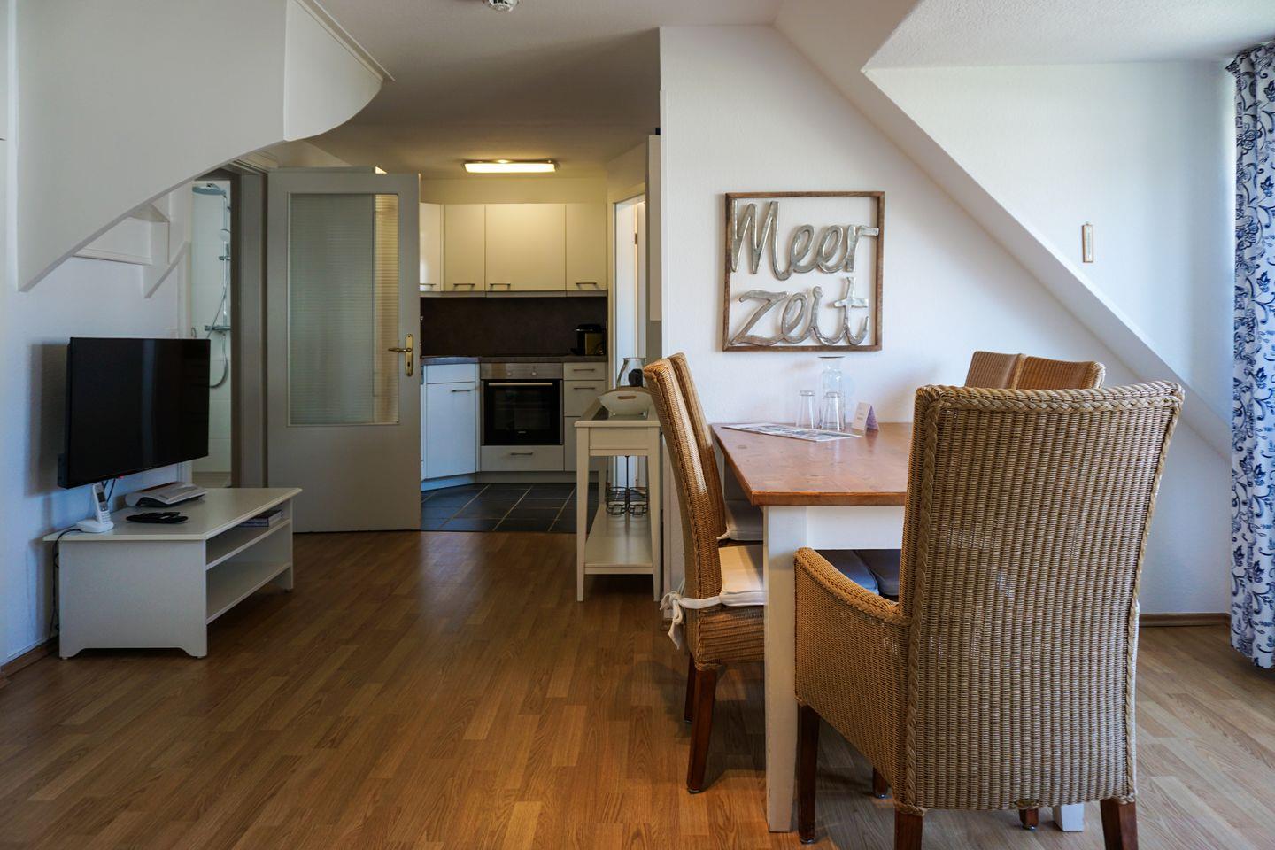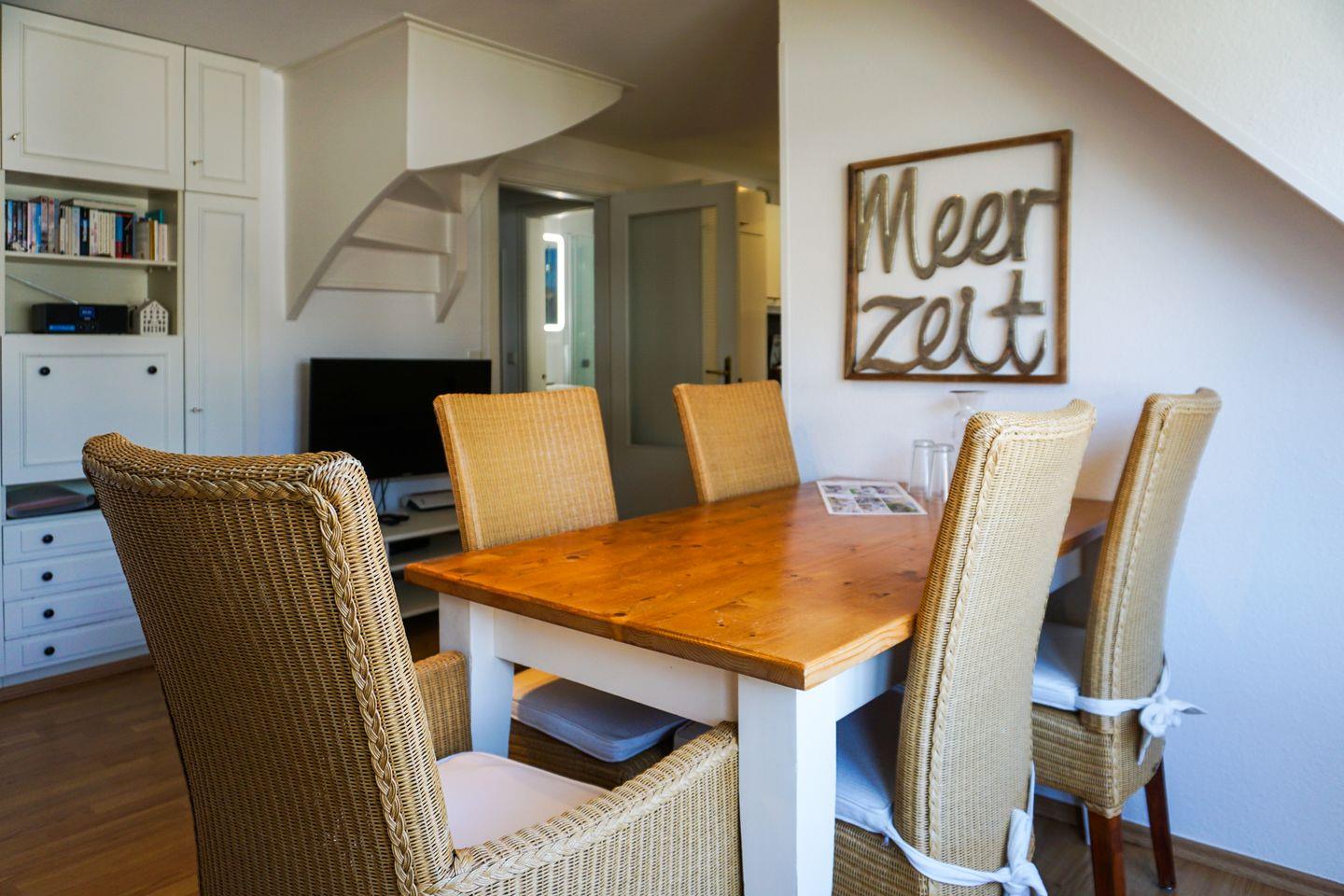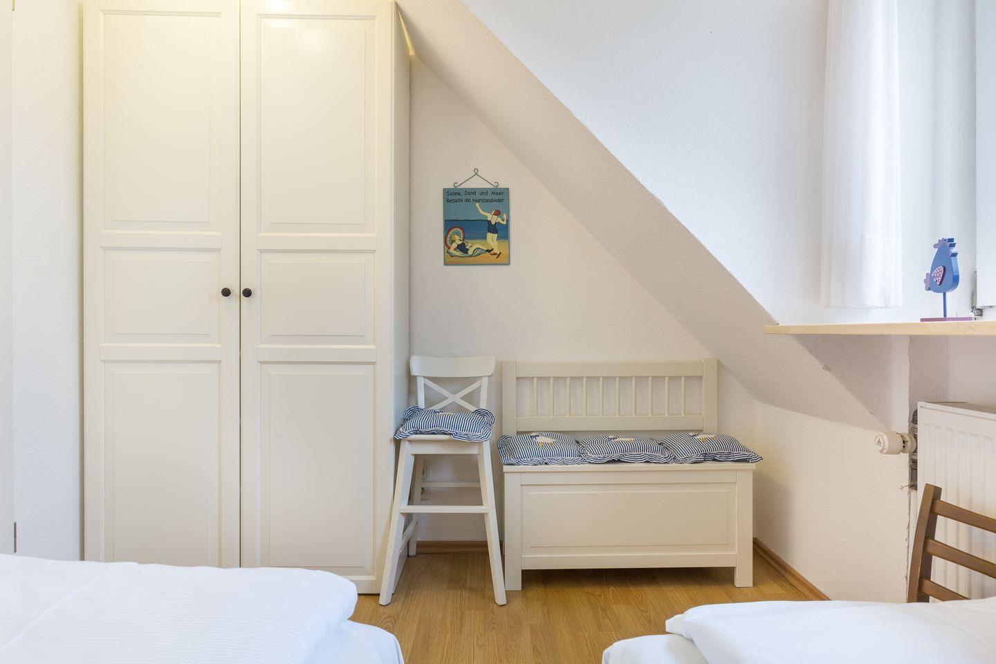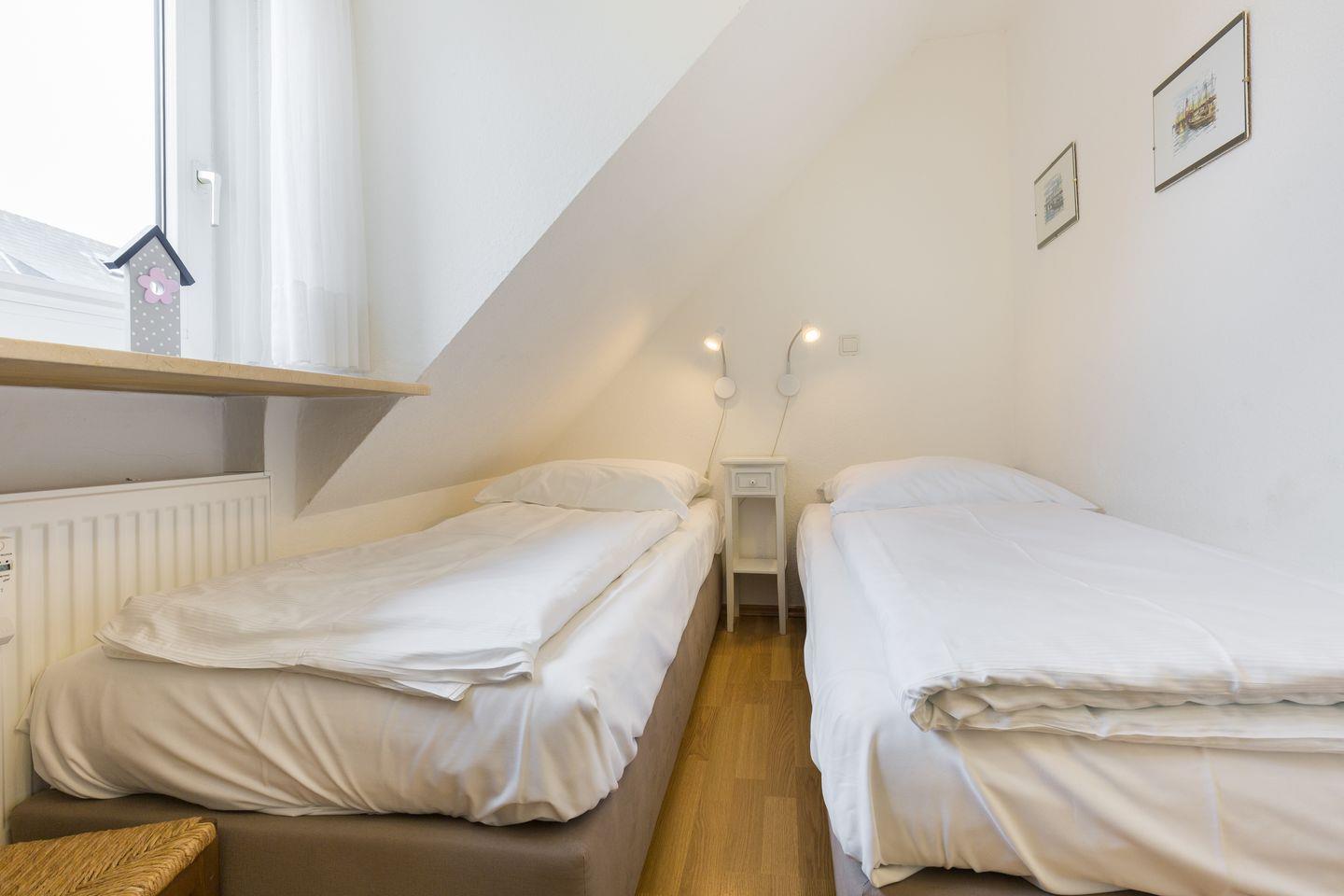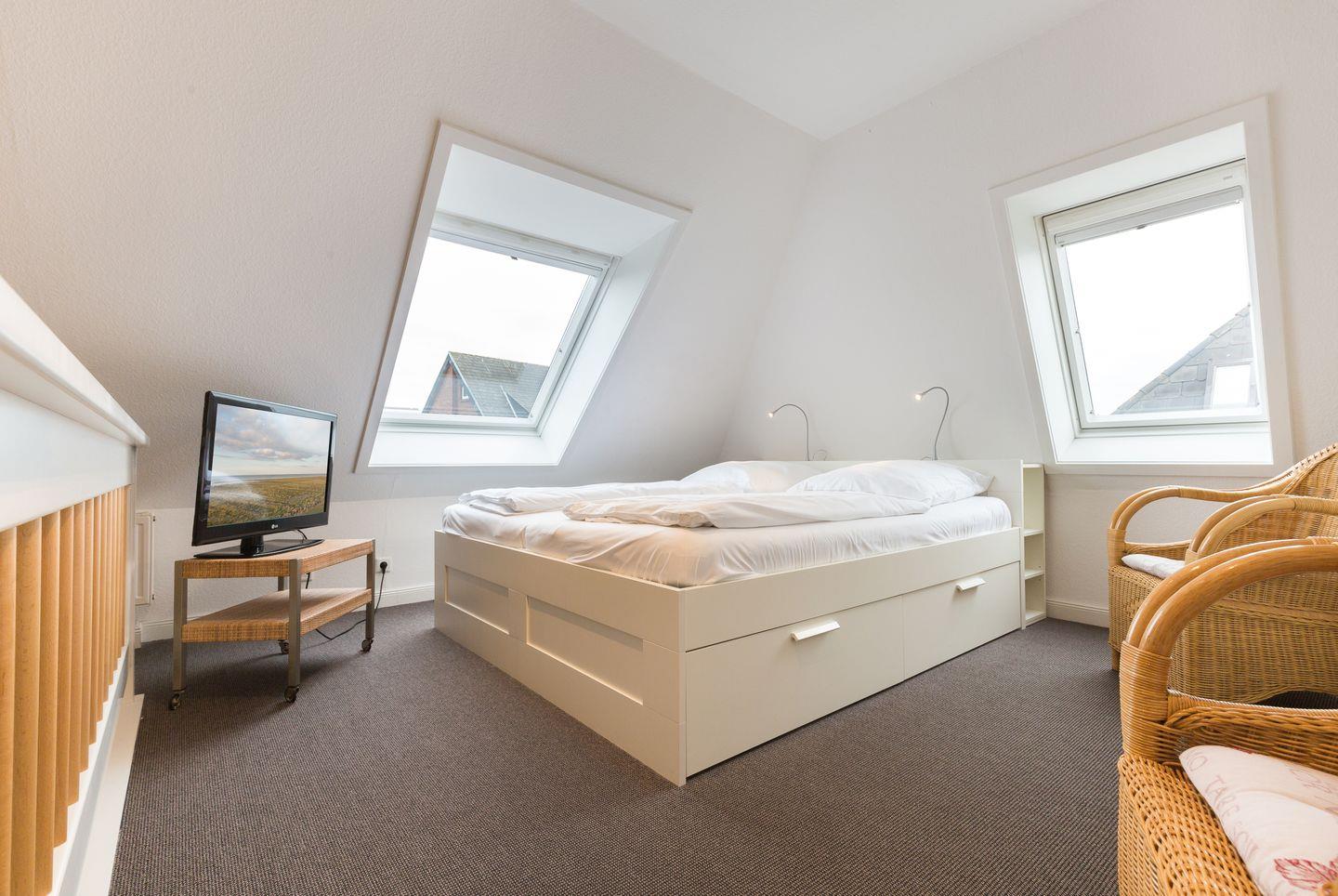 Drei Raum Appartement im Ober- und Dachgeschoss, ca. 70 qm Nutzfläche in Ostausrichtung. Beste, strandnahe Lage Westerlands, für bis zu zwei Erwachsene und zwei Kinder.