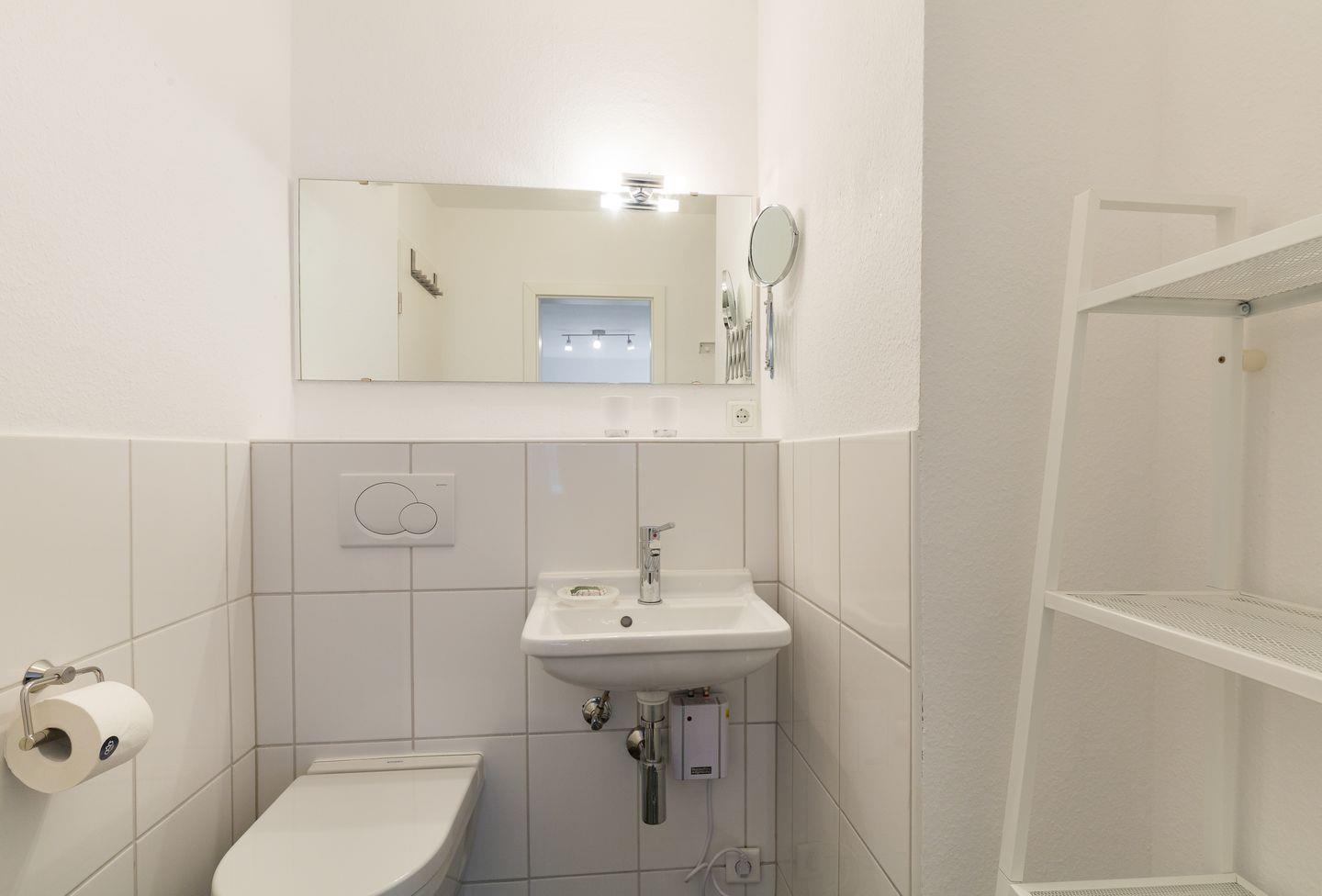 DG: Hier erwartet Sie ein großzügiger, lichtdurchfluteter Raum mit Doppelbett (ca. 1,8x2m) und Flat-TV. Gäste-WC. Kleine Relaxecke mit Sessel.