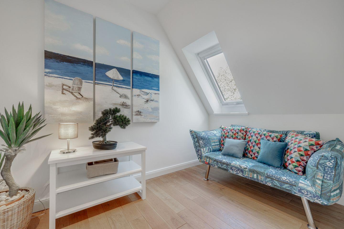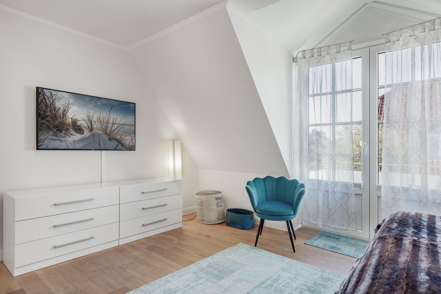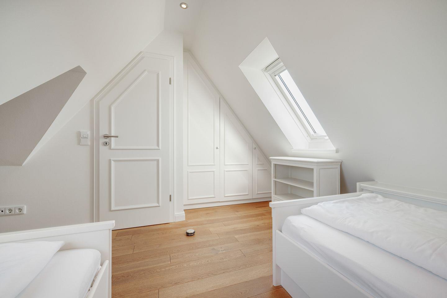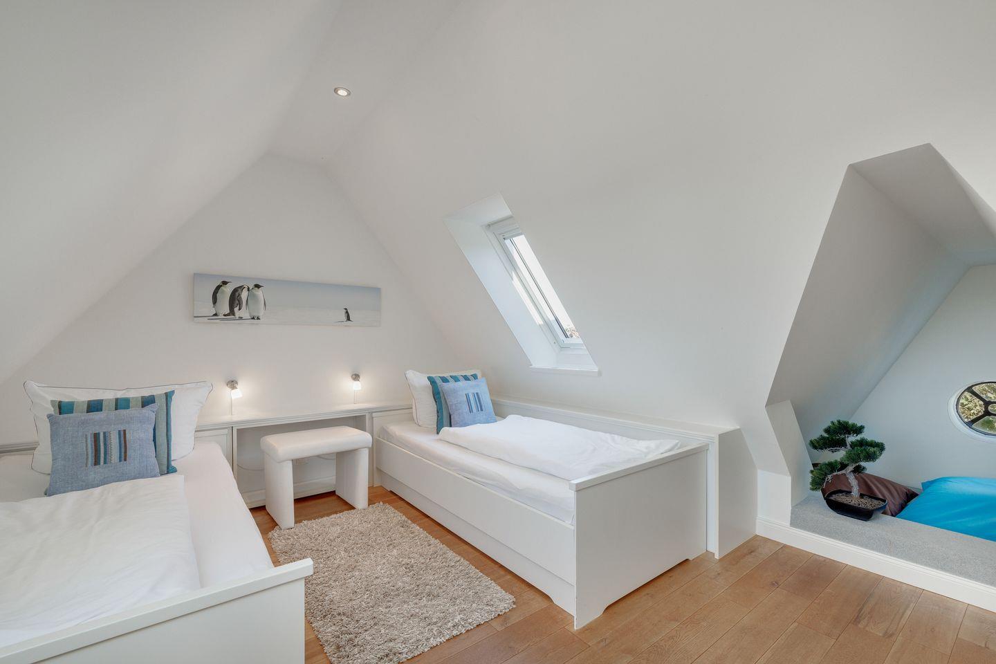 in zwei Schlafzimmern mit komfortablen Boxspringbetten und das Dachgeschoss kann zwei nicht minder gemütliche