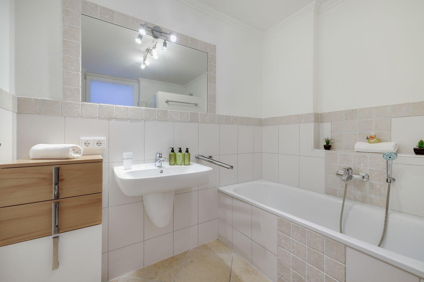 UG: Schlafzimmer mit Doppelbett (2x90x200cm) und Flatscreen-TV, Badezimmer mit Dusche/Badewanne, WC, Waschmaschine und Trockner