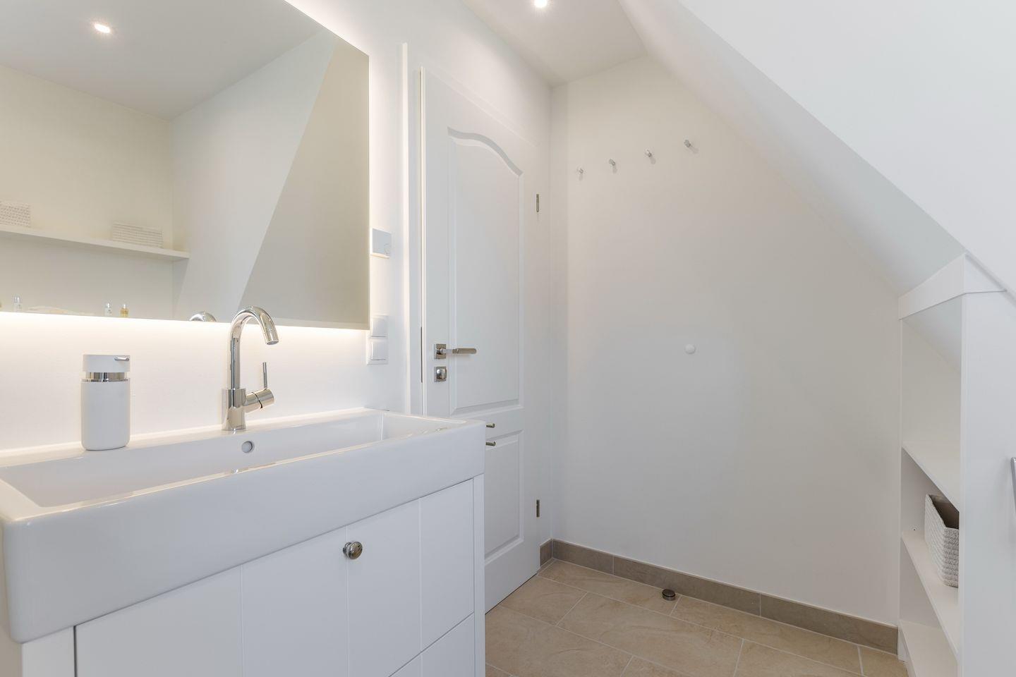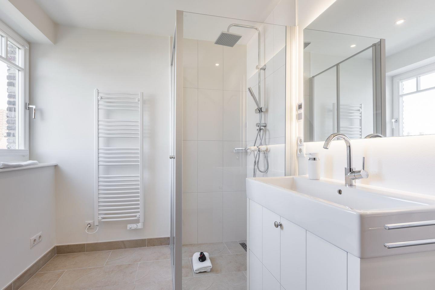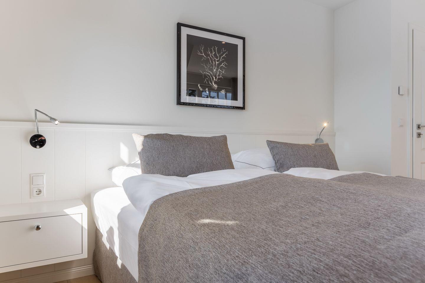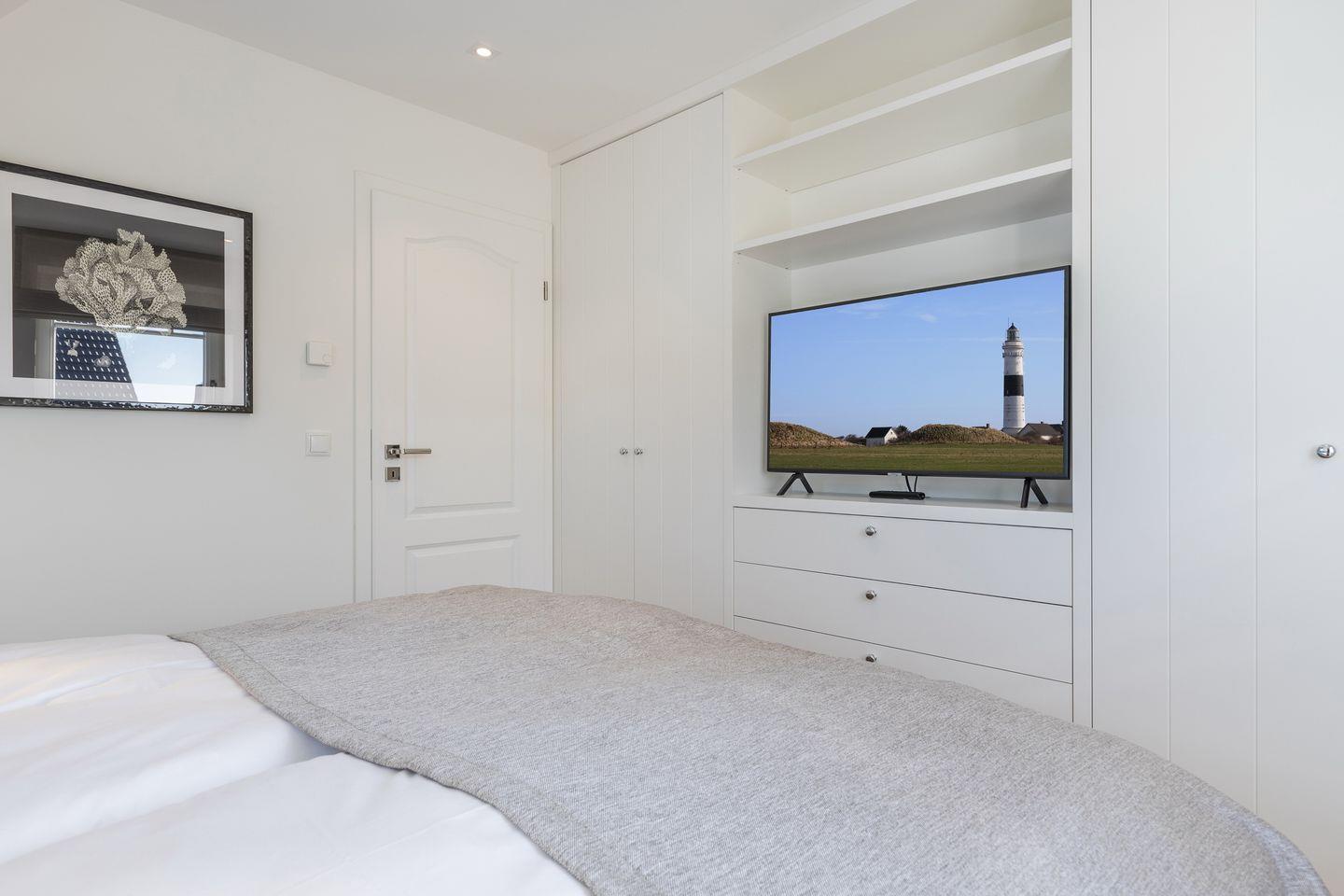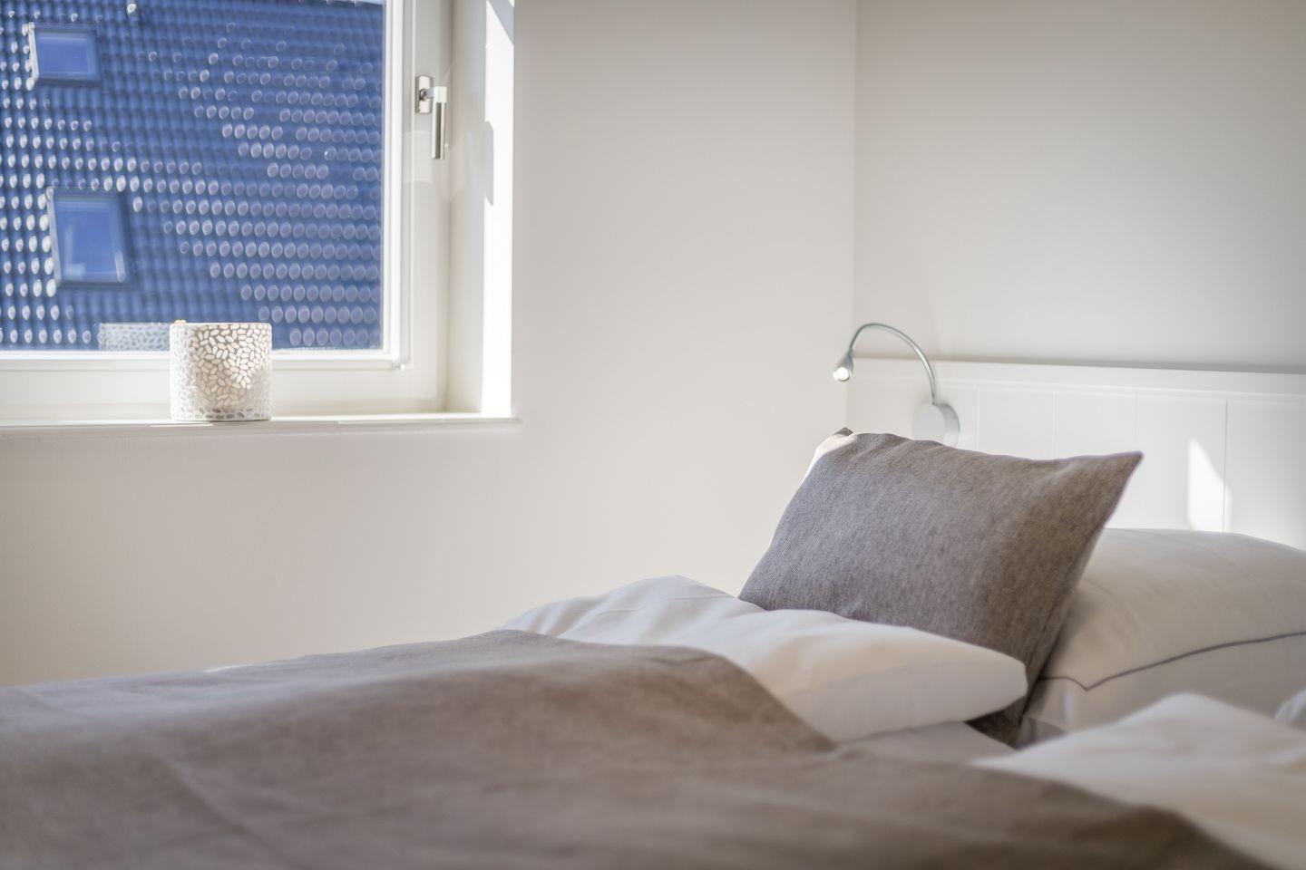 Im Untergeschoss des Hauses erwartet Sie ein Zimmer mit Boxspringbett und Flatscreen-TV sowie Ihre persönliche Wohlfühloase mit einer privaten Sauna und einem großen Duschbad mit WC. Im Obergeschoss des Hauses finden Sie zwei Schlafräume mit je einem Boxspringbett und Flatscreen-TV. Diese Etage verfügt außerdem ebenfalls über ein Badezimmer mit Dusche und WC.