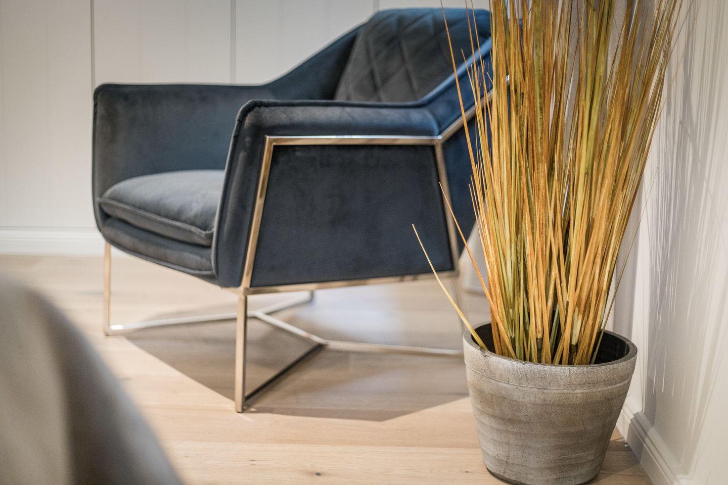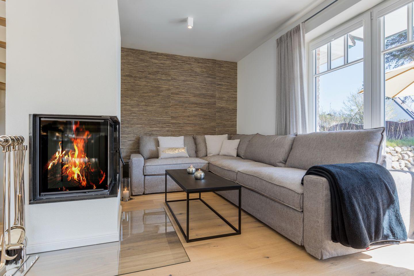Der große Wohn- und Essbereich bietet Ihnen eine top-ausgestattete Küche, eine gemütliche Essecke und eine Sofalandschaft mit Blick auf den Kamin. Von hier aus treten Sie hinaus auf die möblierte Terrasse und den angeschlossenen Garten, in dem Kinder ungestört spielen können. Im Erdgeschoss finden Sie außerdem ein Gäste-WC.