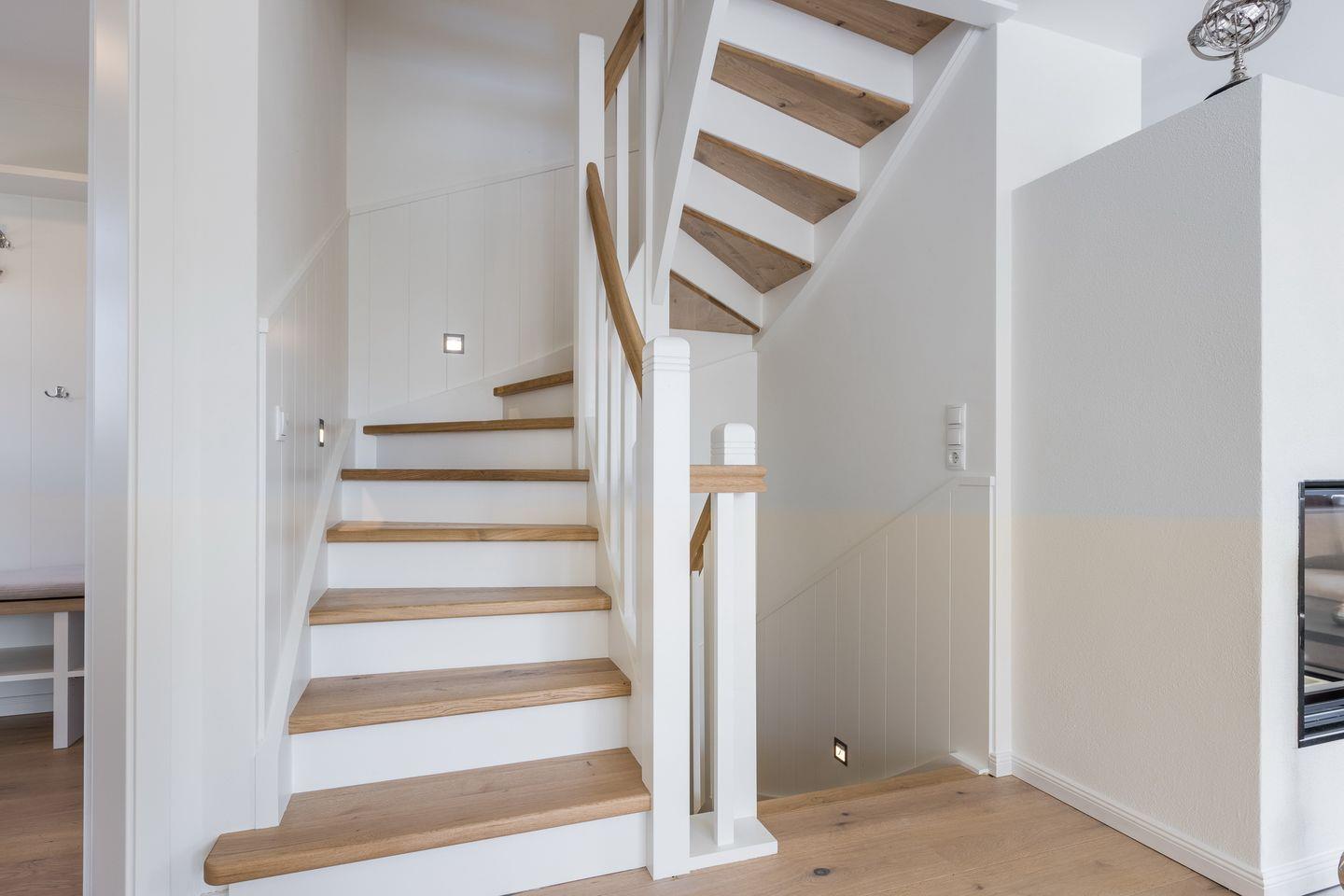 EG: Wohnbereich mit Kamin, 65" UHD-TV, BluRay-Player, Playstation 4, W-Lan, Essbereich mit Eckbank, offene Küche mit Geschirrspüler, Induktionsherd, Backofen, Nespressomaschine, Filter-Kaffeemaschine, Gäste-WC, Garten und Terrasse mit Gartenmöbeln und Strandkorb (ca. April-Oktober)