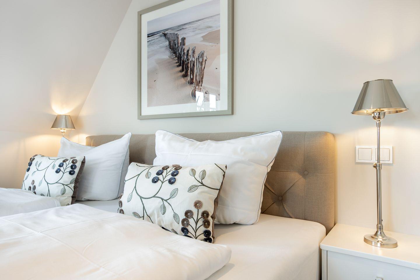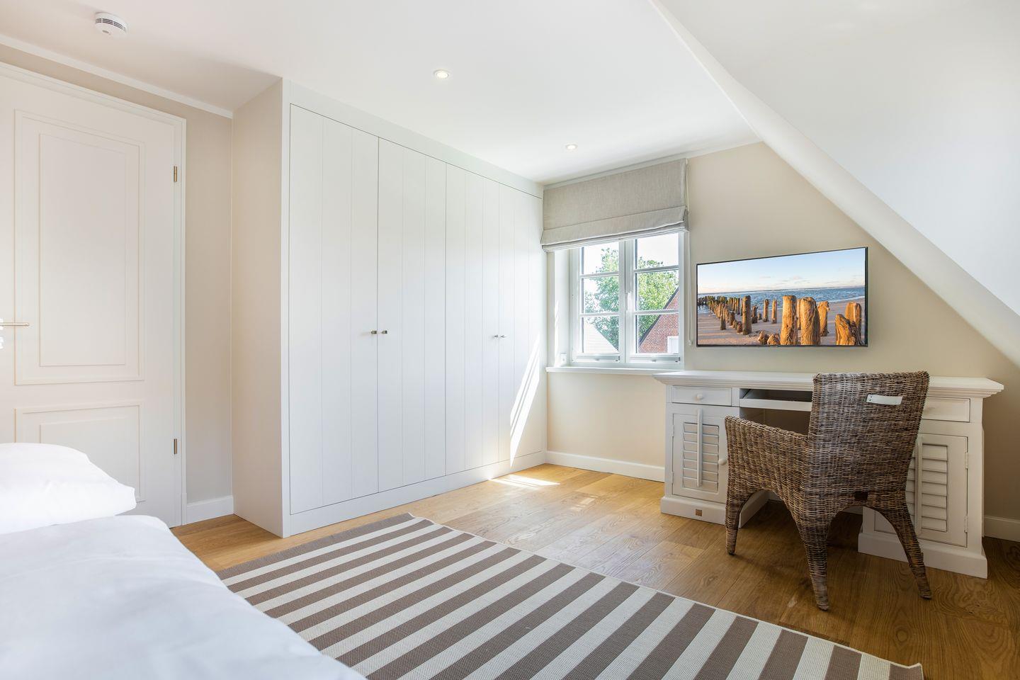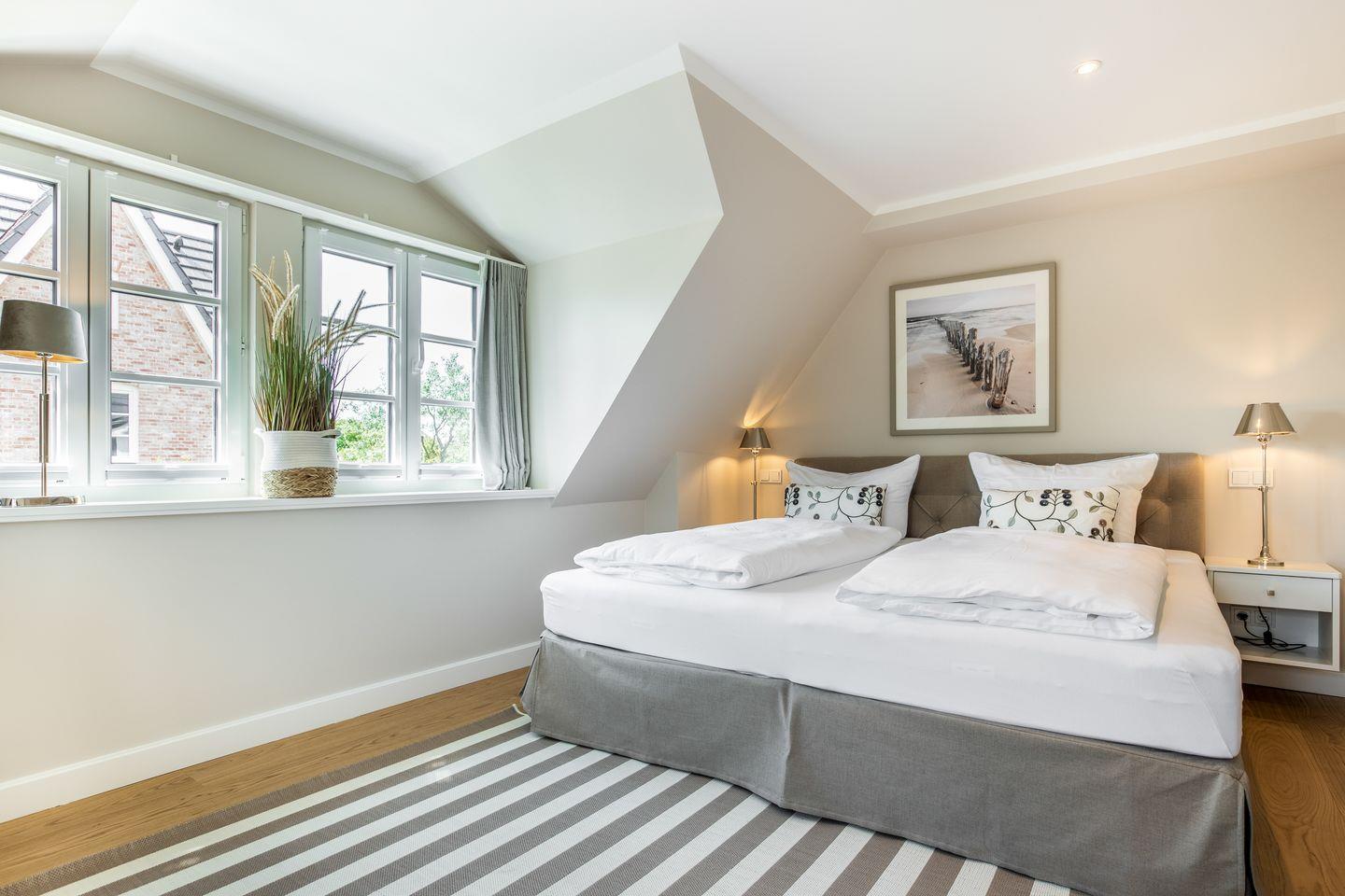 Im Haus Leevste Süster kann der Urlaub einfach nur schön werden. Bis zu 8 Personen finden hier jede Menge Raum und allerfeinsten Wohnkomfort. Alle Zimmer des Hauses sind mit maßgefertigten Möbeln auf höchstem Design-Niveau, eleganter Beleuchtung und vielen liebevollen Accessoires dekoriert. Sämtliche Fenster der Schlafräume sind durch hochwertige blickdichte Plissees und Vorhänge für eine geruhsame Nacht vollständig abdunkelbar.