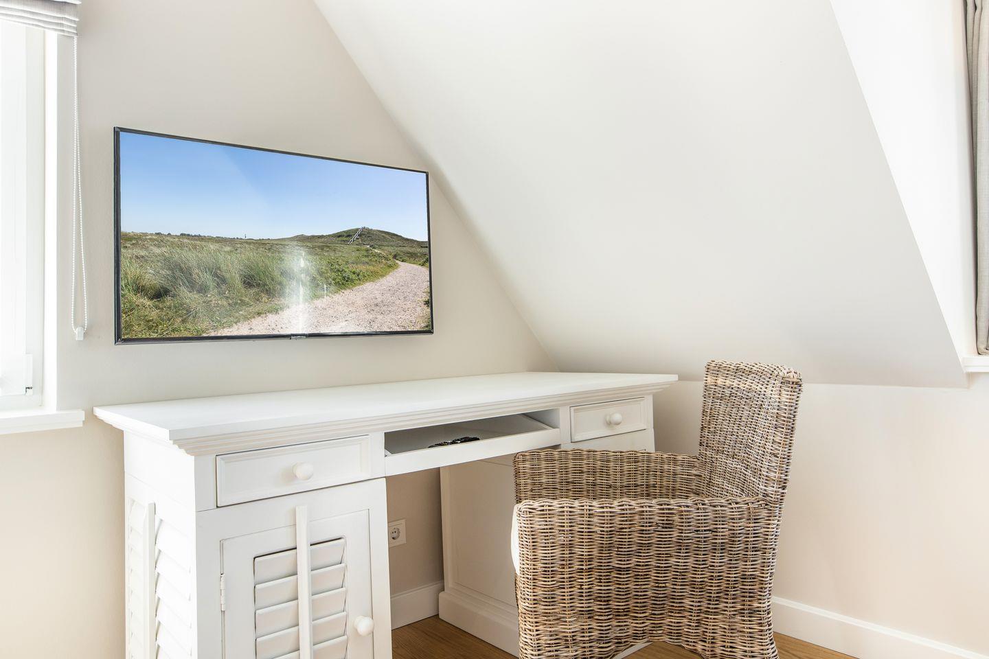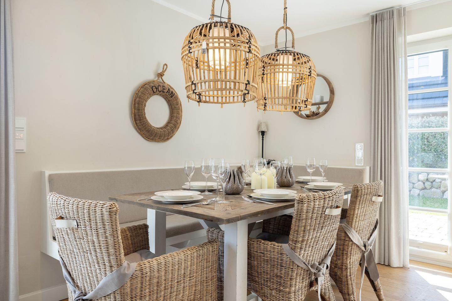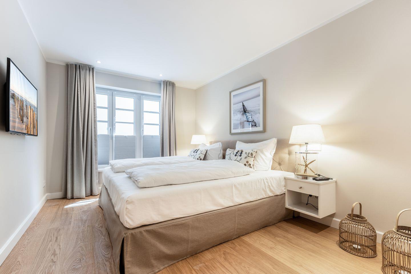 Im Haus Leevste Süster kann der Urlaub einfach nur schön werden. Bis zu 8 Personen finden hier jede Menge Raum und allerfeinsten Wohnkomfort. Alle Zimmer des Hauses sind mit maßgefertigten Möbeln auf höchstem Design-Niveau, eleganter Beleuchtung und vielen liebevollen Accessoires dekoriert. Sämtliche Fenster der Schlafräume sind durch hochwertige blickdichte Plissees und Vorhänge für eine geruhsame Nacht vollständig abdunkelbar.