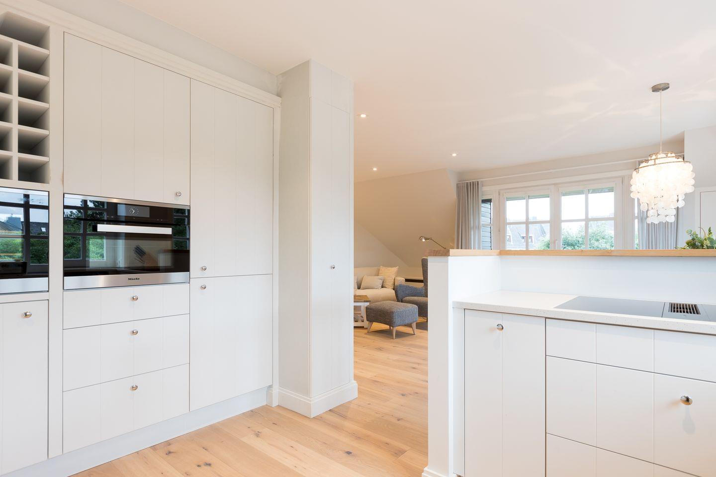 in Natur- und Grautönen sowie einem kleinen Balkon. Die offene Küche fügt sich hier nicht nur perfekt in das Gesamtbild