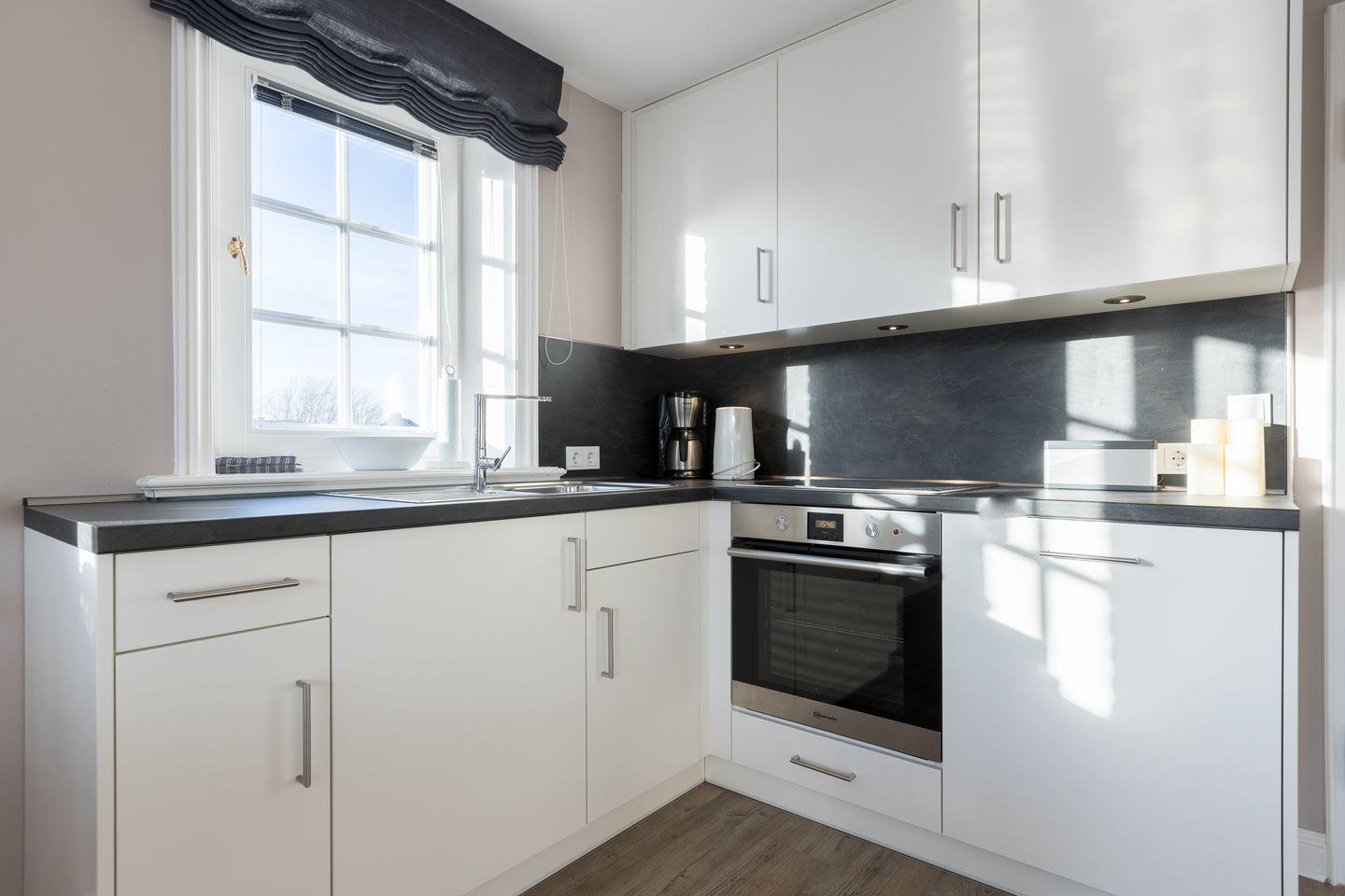 Küche mit Backofen, Geschirrspüler und Kaffeemaschine