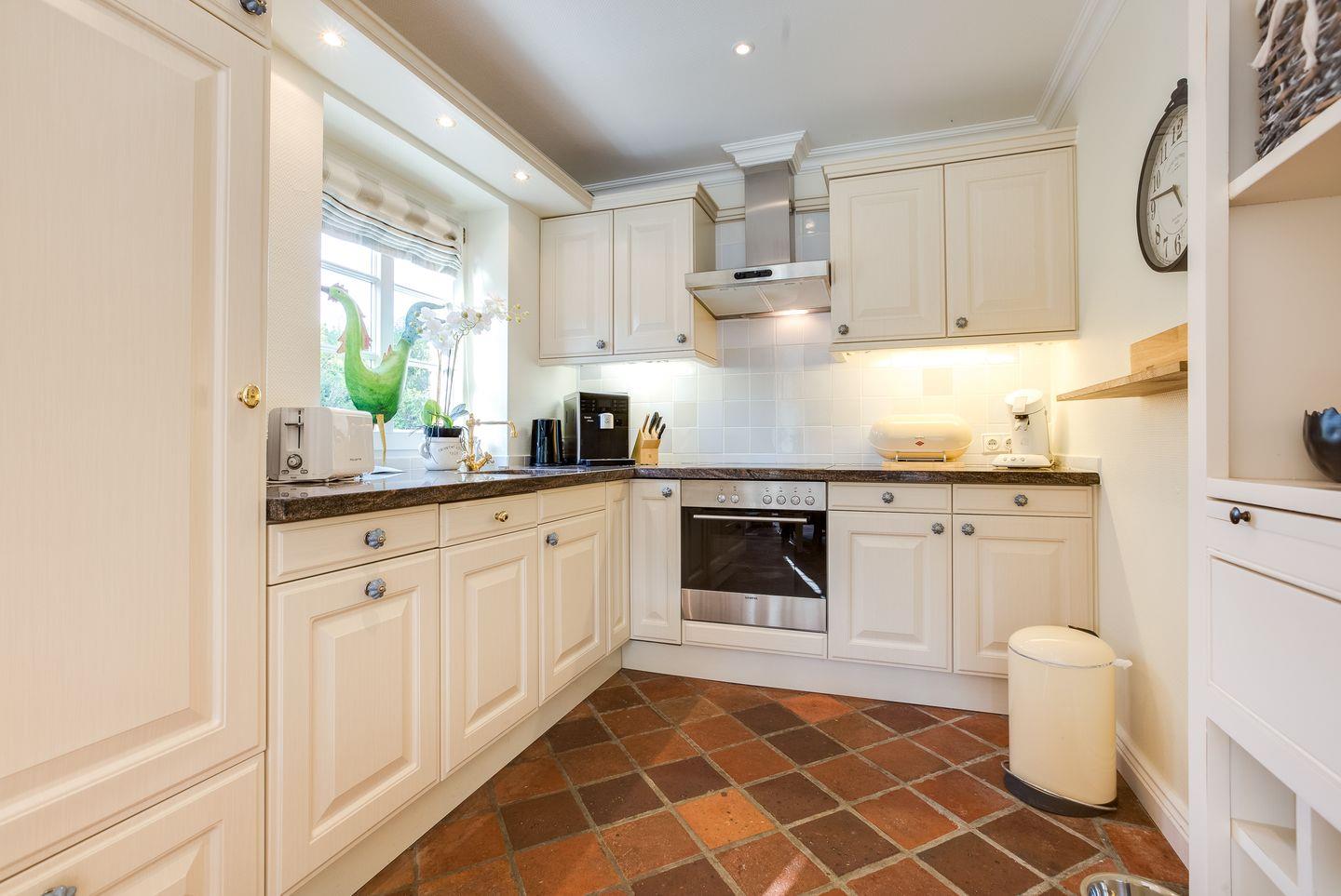 Erdgeschoss: Wohnraum mit Flatscreen-TV, integrierte Küchenzeile mit Backofen, Geschirrspüler, Senseo Kaffeepadmaschine und ein Kaffeevollautomat, auf gleicher Ebene befindet sich Ihr Duschbad, die Südterrasse lädt zum Sonnenbaden ein