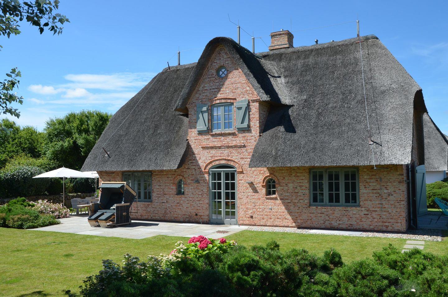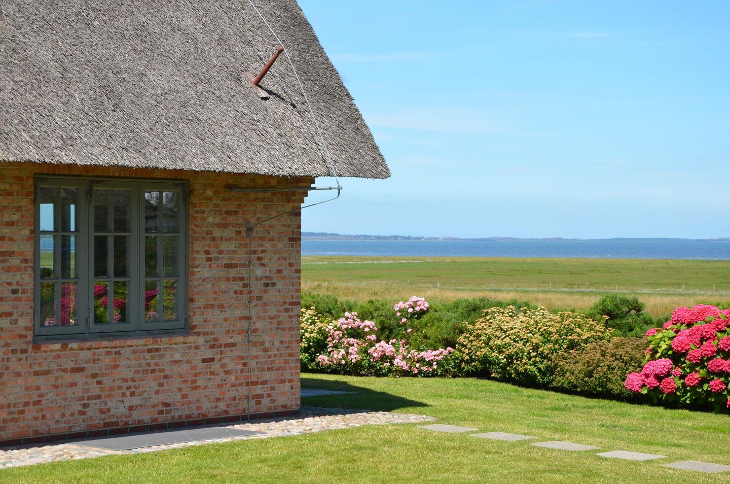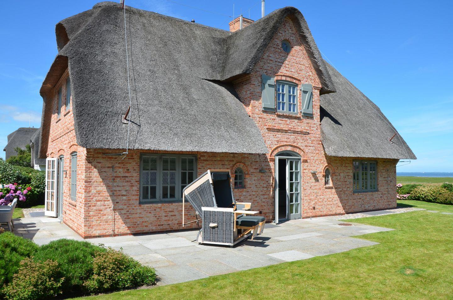 Es gibt Orte auf der Welt, die ganz besonders sind und dieses traumhafte Einzelhaus unter Reet mit seinem freien Wattenmeer-Blick gehört eindeutig dazu. Es bietet zu jeder Jahreszeit den perfekten Rahmen für einzigartige Urlaubstage auf der Insel. Genießen Sie im Sommer den großzügigen Garten mit seinen einladenden Terrassen und den prächtigen Hortensien-Büschen und beobachten Sie abends imposante Sonnenuntergänge in Ihrem ganz persönlichen, exklusiven Umfeld. Blicken Sie im Herbst, eingekuschelt auf der Couch, in die Weite des Nationalpark Wattenmeer, während neben Ihnen im Gas-Kamin ein gemütliches Feuer lodert. Genießen Sie nach einem Winter-Strandspaziergang erholsame Stunden in der hauseigenen Sauna und sein Sie dabei, wenn im Frühjahr die Zugvögel aus ihren Winterquartieren zurückkommen und in den anliegenden Salzwiesen Rast machen. Wir sind uns sicher: Sie werden wieder kommen wollen. Das Haus ist in seinem Wohnbereich hell, offen und großzügig gestaltet und mit zahlreichen Tischlereinbauten und hochwertigen Materialien liebevoll ausgestattet worden. Vom Master-Bedroom mit seiner offenen Decke und Bad en Suite erblicken Sie das Meer schon beim Wachwerden am Morgen. Schöner kann ein Tag und ein Urlaub nicht starten! Ihr Ferienhaus verfügt über 2 Doppelschlafzimmer sowie 2 Einzelzimmer mit einem Bettmaß von 1,35m x 1,90m. Maximal ein Hund auf Anfrage ist gestattet.