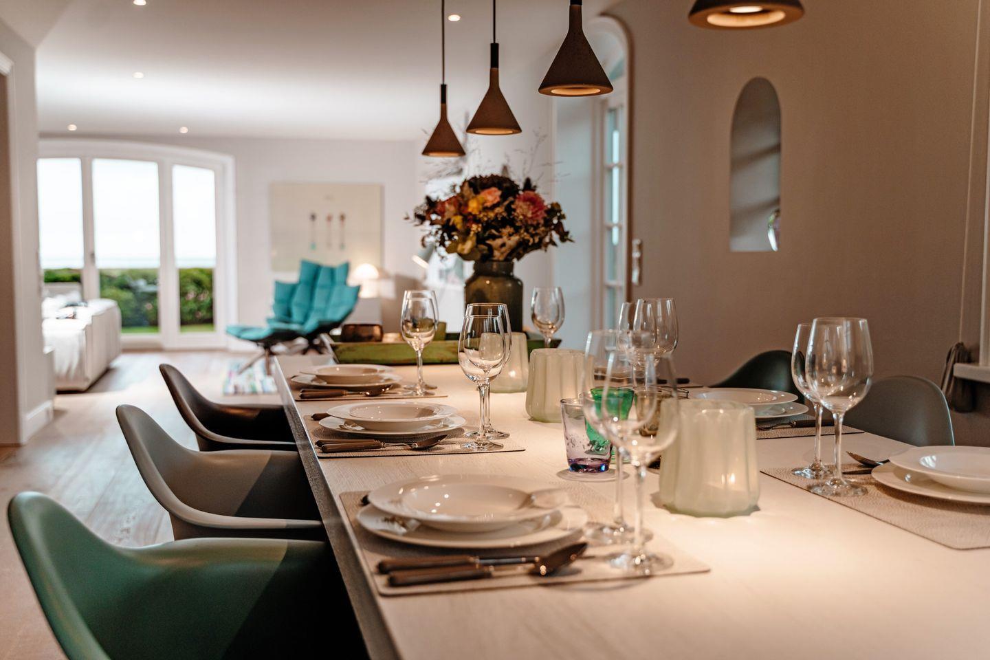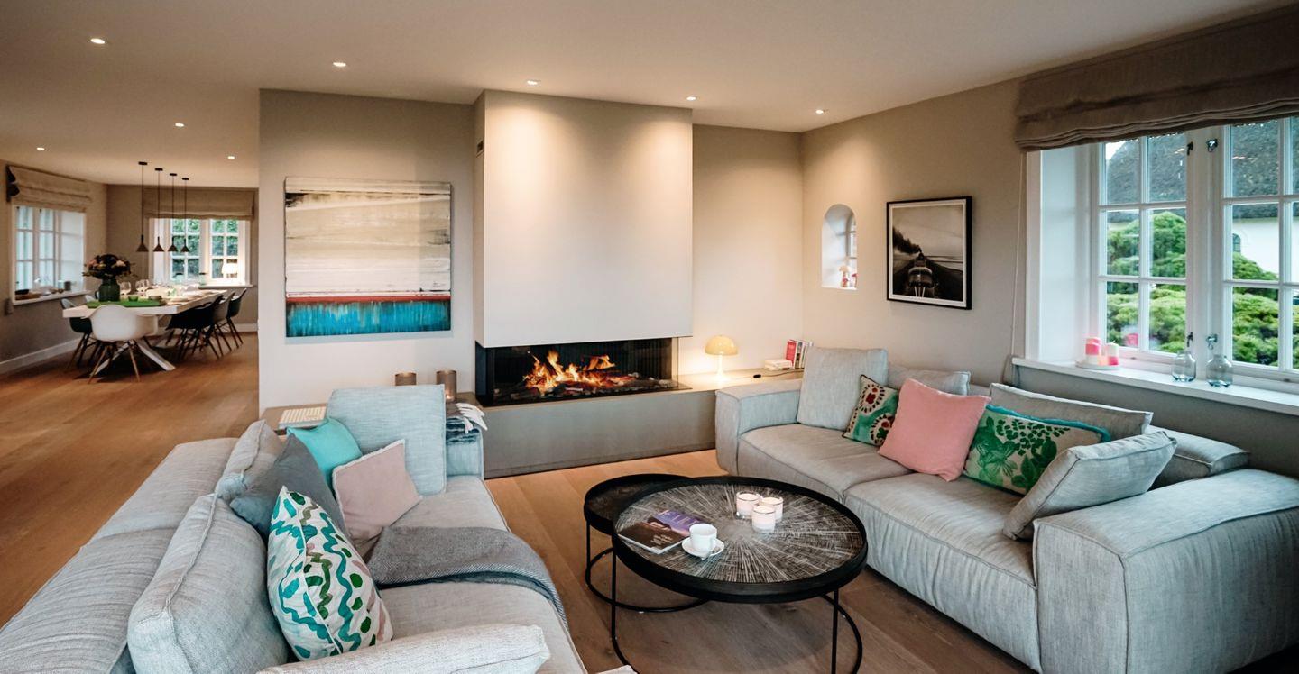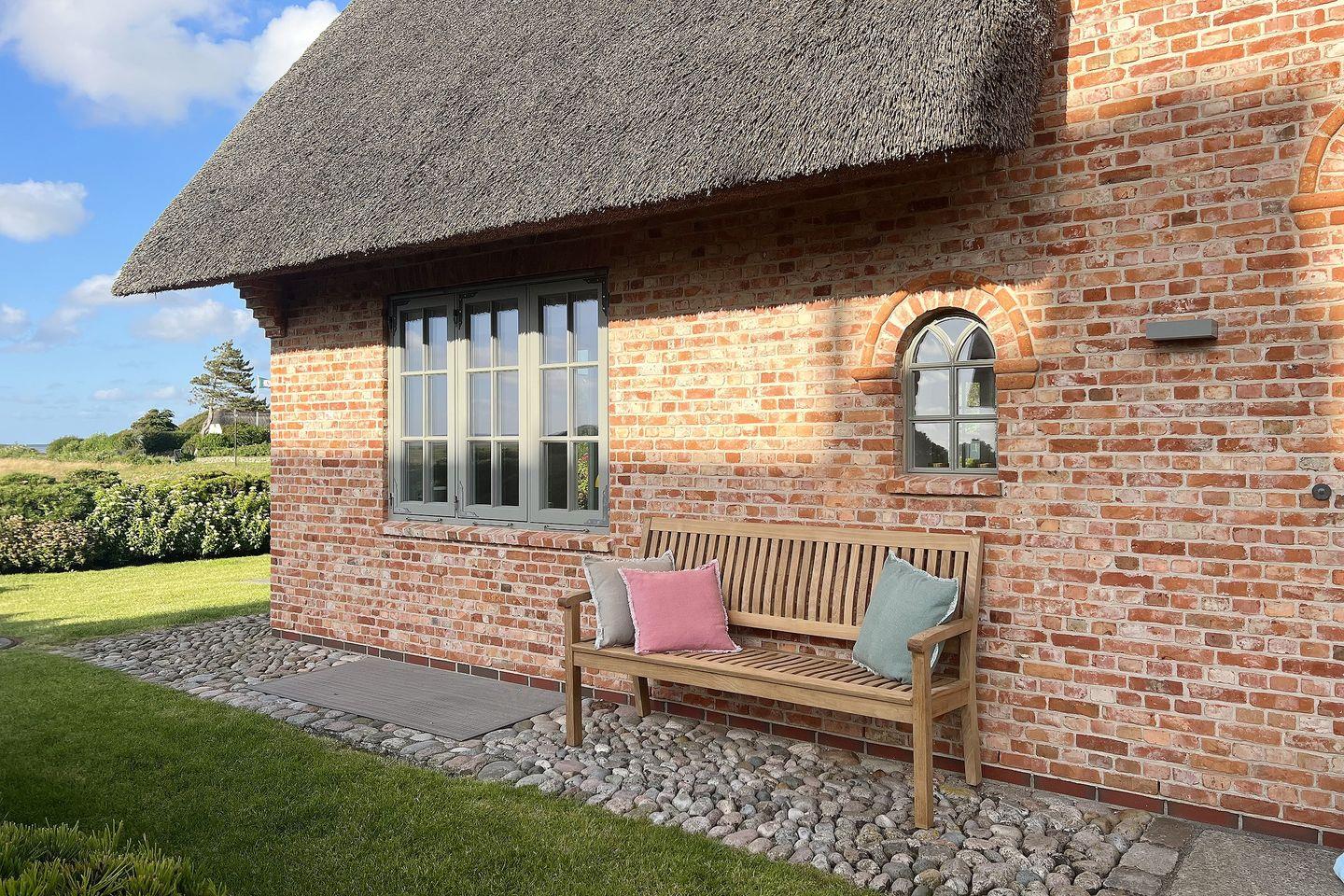 Es gibt Orte auf der Welt, die ganz besonders sind und dieses traumhafte Einzelhaus unter Reet mit seinem freien Wattenmeer-Blick gehört eindeutig dazu. Es bietet zu jeder Jahreszeit den perfekten Rahmen für einzigartige Urlaubstage auf der Insel. Genießen Sie im Sommer den großzügigen Garten mit seinen einladenden Terrassen und den prächtigen Hortensien-Büschen und beobachten Sie abends imposante Sonnenuntergänge in Ihrem ganz persönlichen, exklusiven Umfeld. Blicken Sie im Herbst, eingekuschelt auf der Couch, in die Weite des Nationalpark Wattenmeer, während neben Ihnen im Gas-Kamin ein gemütliches Feuer lodert. Genießen Sie nach einem Winter-Strandspaziergang erholsame Stunden in der hauseigenen Sauna und sein Sie dabei, wenn im Frühjahr die Zugvögel aus ihren Winterquartieren zurückkommen und in den anliegenden Salzwiesen Rast machen. Wir sind uns sicher: Sie werden wieder kommen wollen. Das Haus ist in seinem Wohnbereich hell, offen und großzügig gestaltet und mit zahlreichen Tischlereinbauten und hochwertigen Materialien liebevoll ausgestattet worden. Vom Master-Bedroom mit seiner offenen Decke und Bad en Suite erblicken Sie das Meer schon beim Wachwerden am Morgen. Schöner kann ein Tag und ein Urlaub nicht starten! Ihr Ferienhaus verfügt über 2 Doppelschlafzimmer sowie 2 Einzelzimmer mit einem Bettmaß von 1,35m x 1,90m. Maximal ein Hund auf Anfrage ist gestattet.
