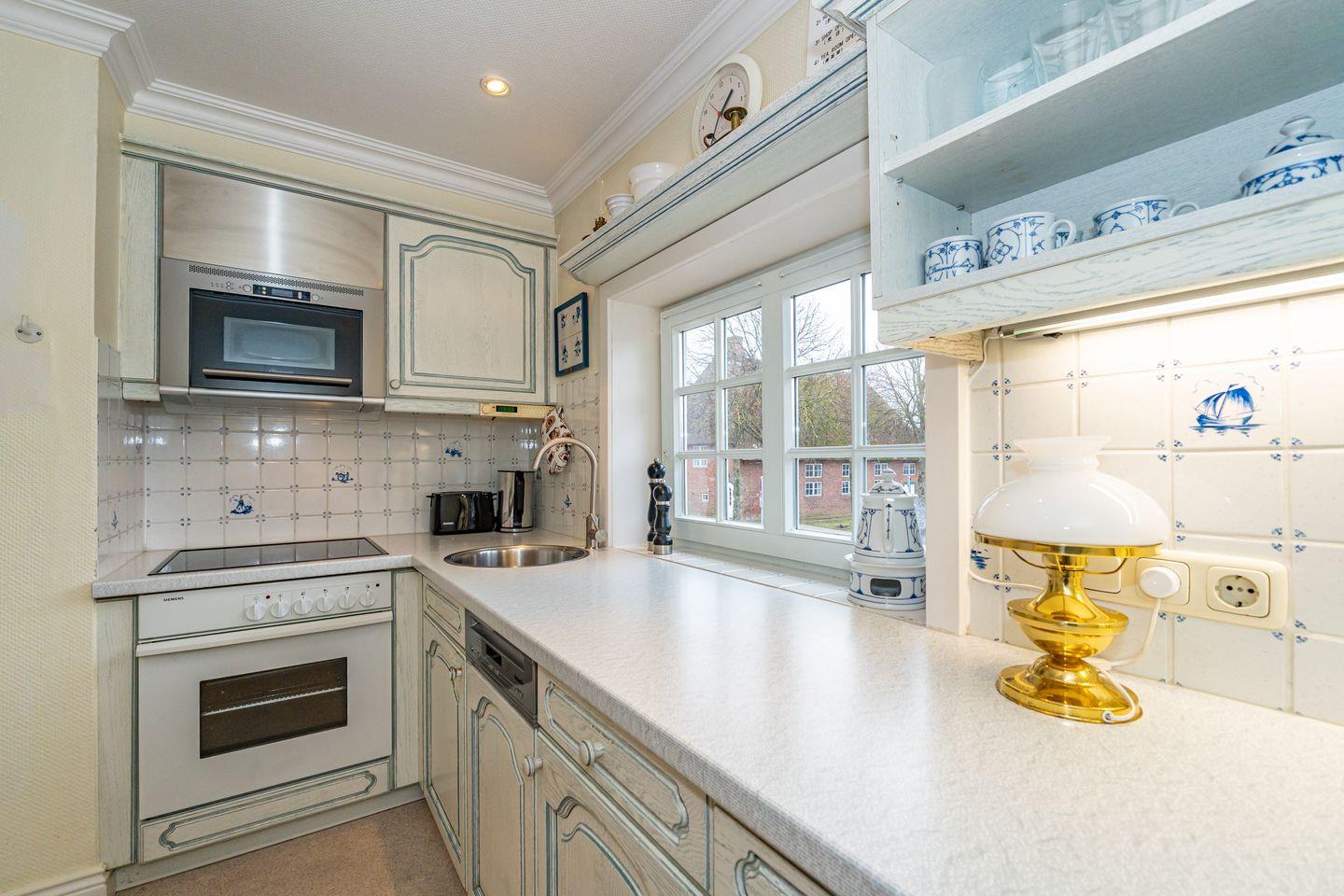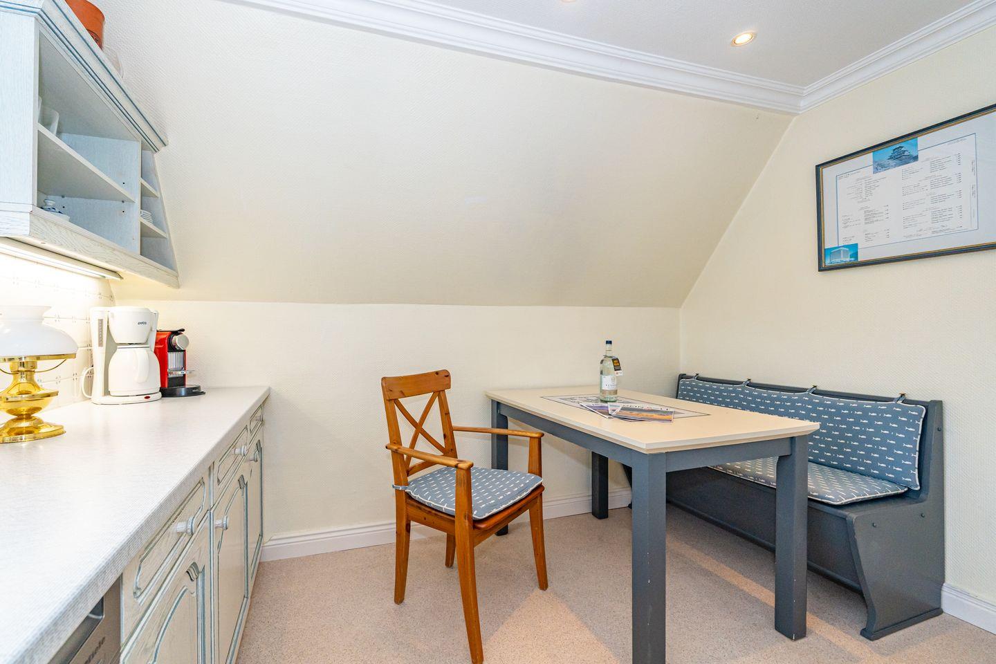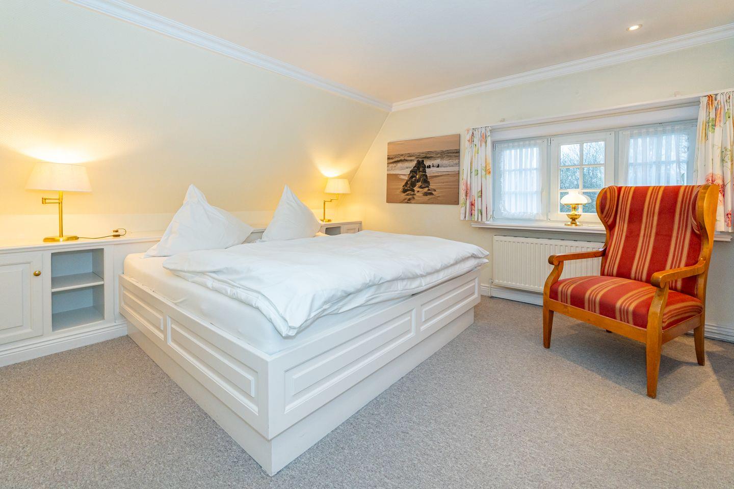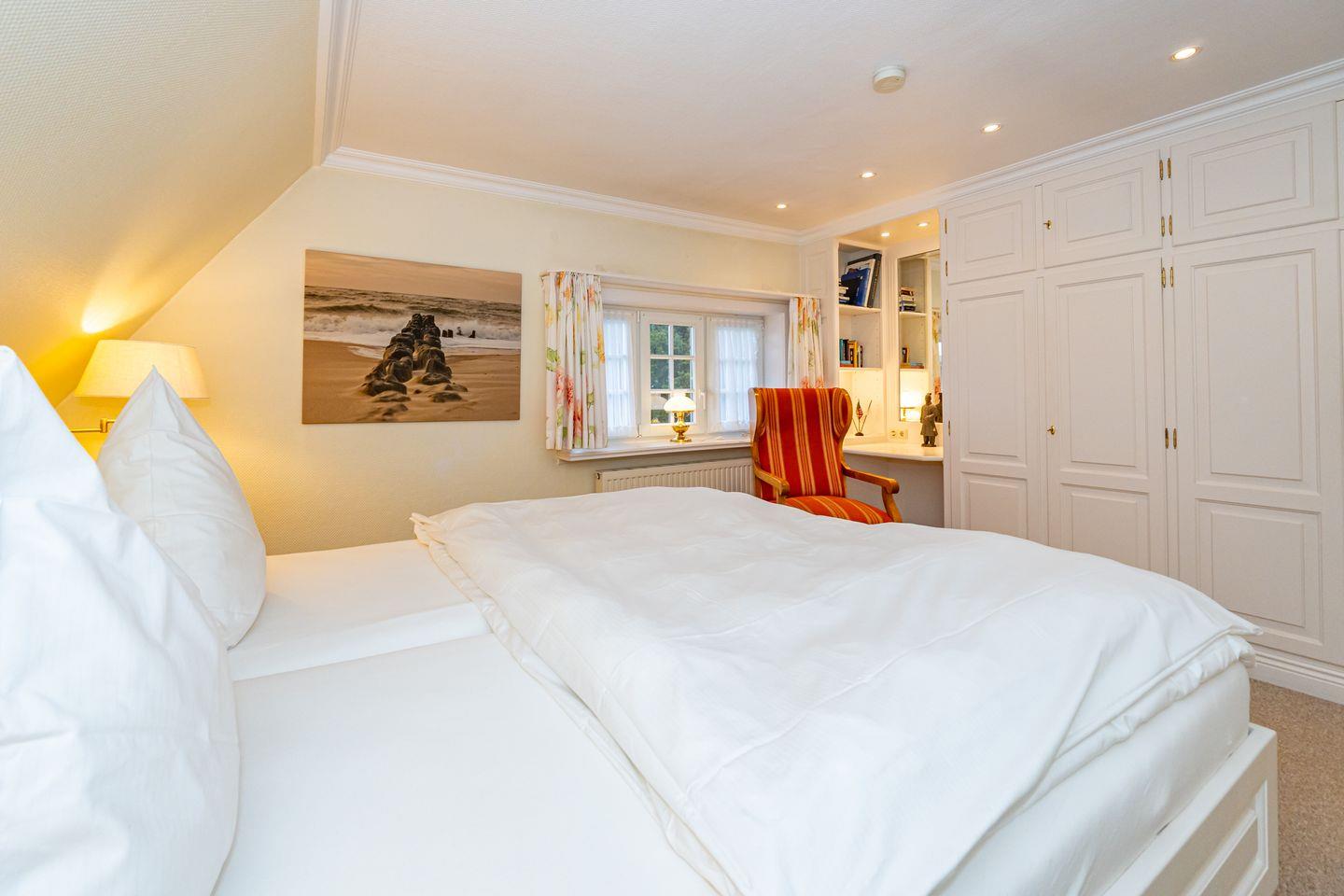 Diese friesische 3-Zimmer-Ferienwohnung liegt im Herzen von Keitum. Über eine Treppe gelangen Sie ins 1. OG, dort befindet sich die "Admiralswohnung". Vom Flur mit Garderobe haben Sie Zugang zu allen Räumen. Die Küche verfügt über einen Essplatz, Backofen, Geschirrspüler, Kühlschrank mit Gefrierfach und Nespressokapselmaschine. Im Wohnbereich erwartet Sie ein Sofa, Sessel und TV. Das erste Schlafzimmer ist ausgestattet mit einem Doppelbett und einem Kleiderschrank. Das zweite Schlafzimmer verfügt über ein Einzelbett und TV. Im lichtdurchfluteten Badezimmer erwartet Sie eine bodengleiche Dusche und WC. Ein PKW Stellplatz steht Ihnen am Haus zur Verfügung. Eine kleine Terrasse im Gemeinschaftsgarten des 3 Parteien Haus gehört zur Ferienwohnung "Admiral"