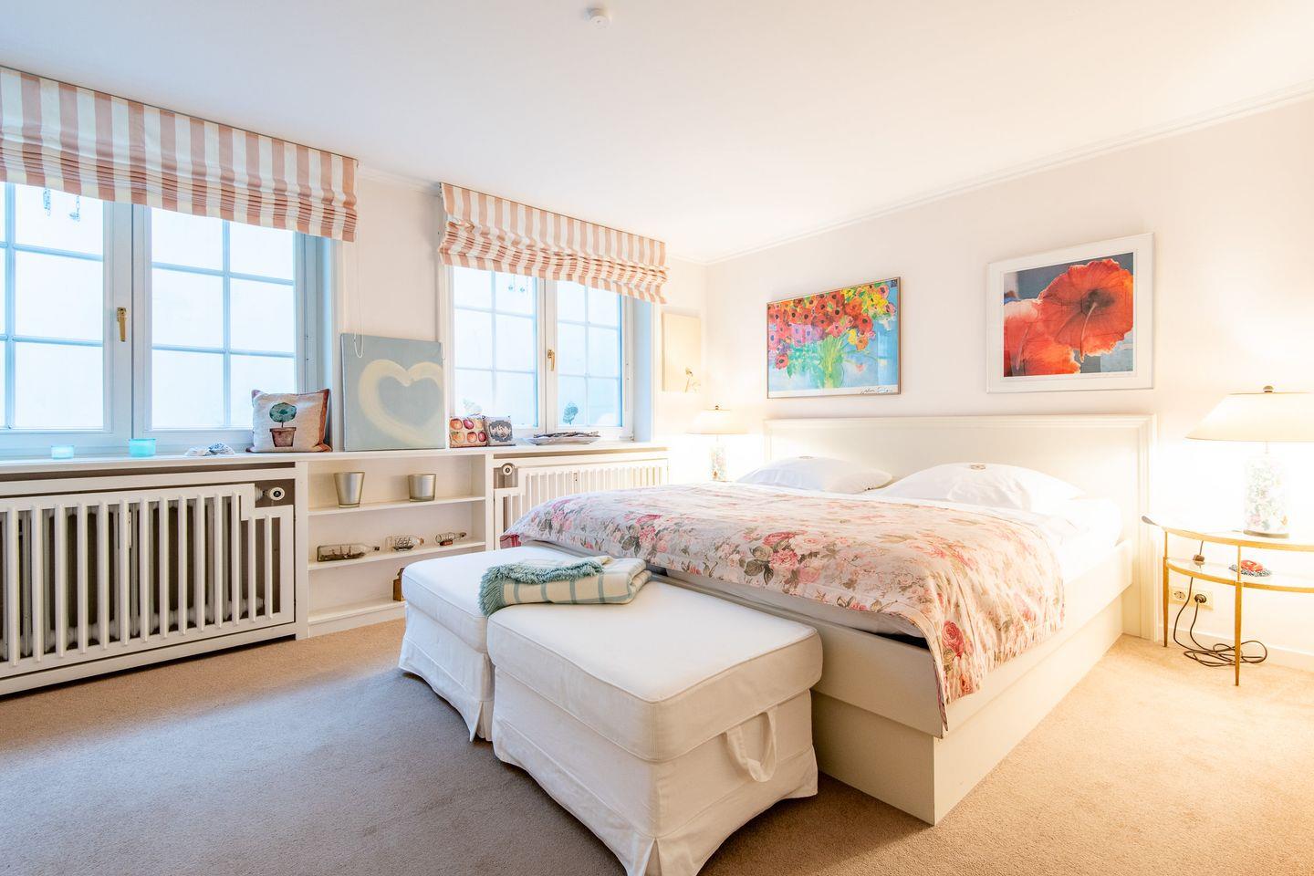 Im großzügigen Hauptschlafzimmer erwartet Sie ein Doppelbett (200x200 cm) und ein Kleiderschrank mit viel Stauraum. Das zweite Schlafzimmer mit einem Einzelbett (90x200 cm) ist ideal für Kinder oder maximal einen weiteren Erwachsenen und bietet einen Rückzugsort zum Entspannen.
