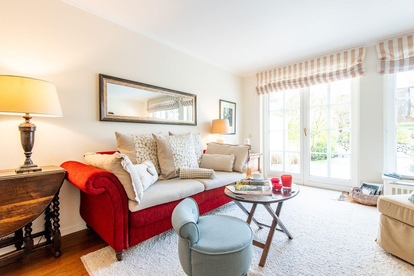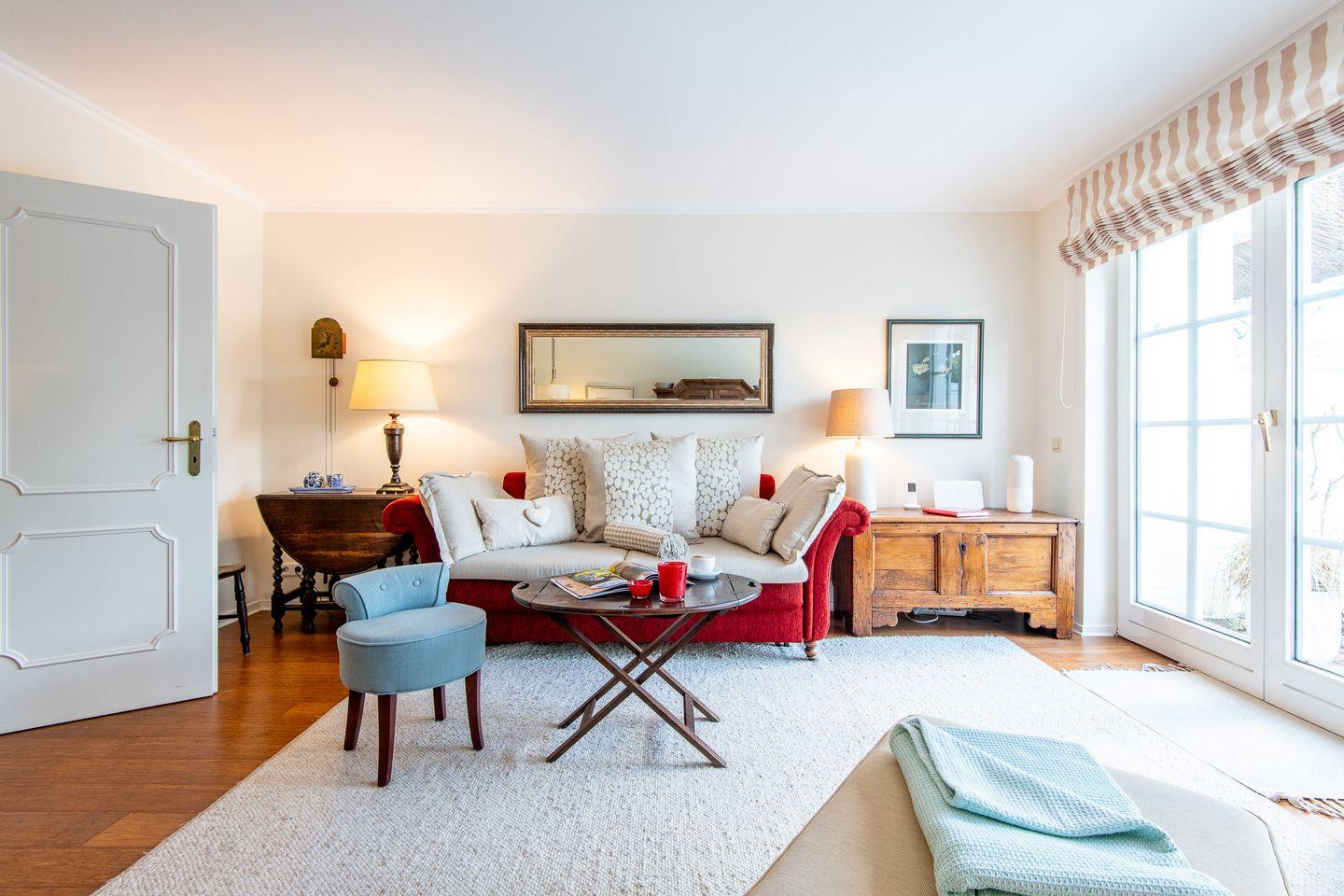 3-Zimmer-Ferienwohnung unter Reet auf zwei Ebenen (EG|UG) in Keitum mit ca. 80 qm für bis zu 2 Personen. 2 Schlafzimmer, Badezimmer mit Badewanne und integrierter Dusche, Gäste-WC, separate Küche, Wohnzimmer mit Esstisch, Terrasse, PKW-Stellplatz vorhanden, WLAN (ohne Gewähr), Haustiere sind nicht gestattet.