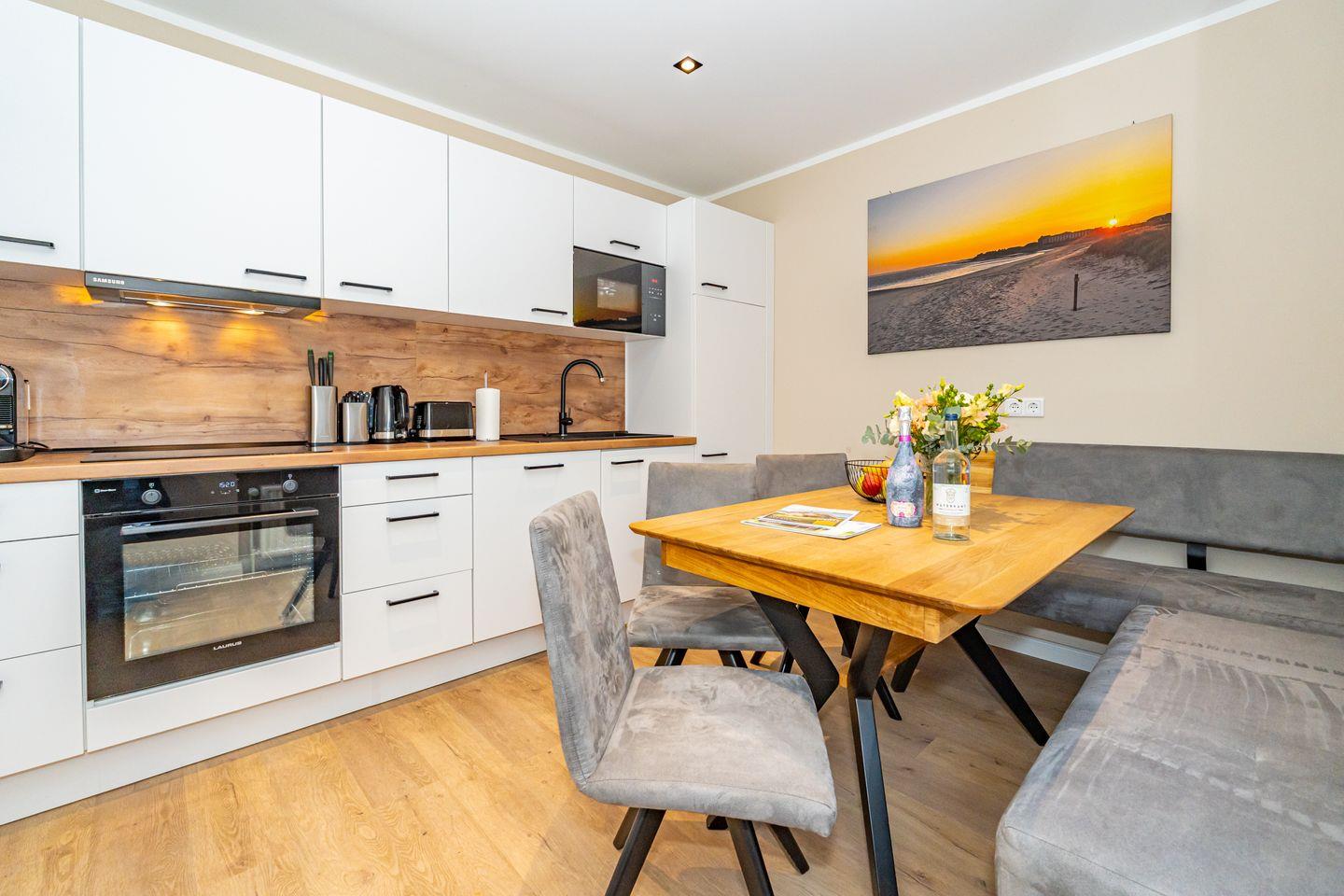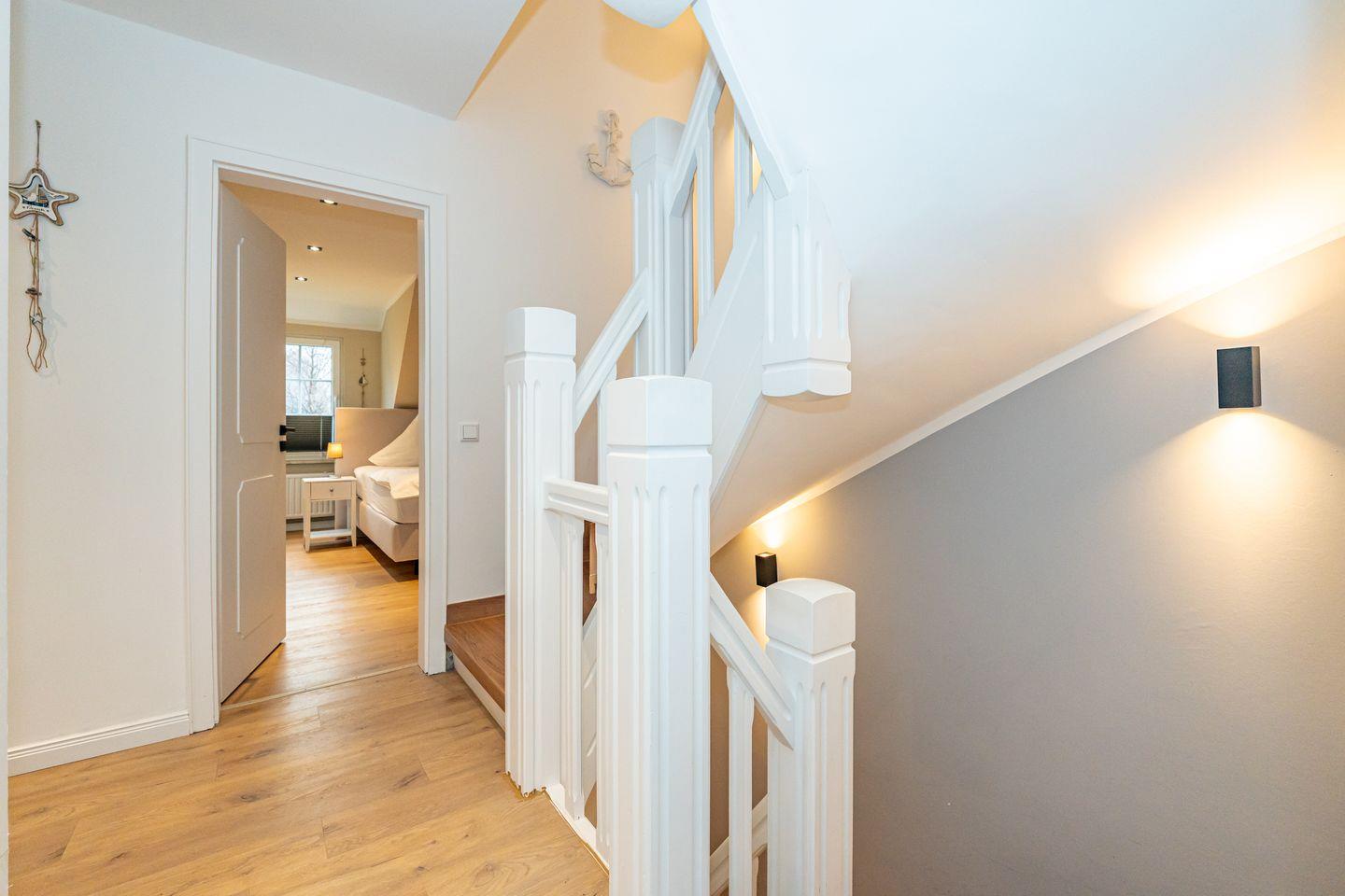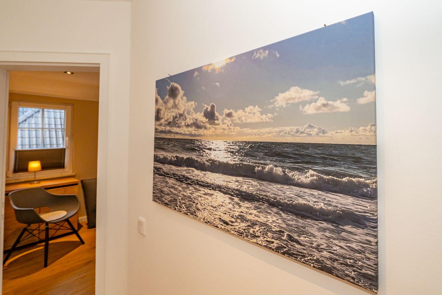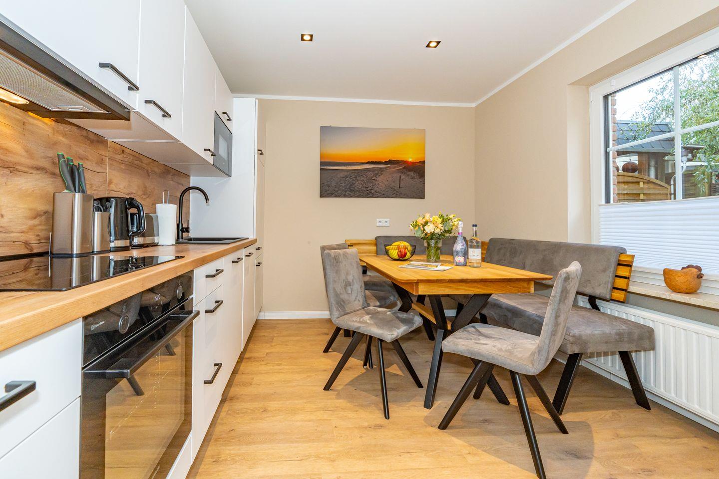 Ruhig gelegen in Alt-Westerland befindet sich das wunderschöne Ferienhaus Leos Hüs. Das Ferienhausteil erstreckt sich auf 125 Quadratmetern über drei Etagen und bietet Platz für bis zu sechs Personen. Großzügig und hell empfängt Sie im Erdgeschoss das Wohnzimmer mit gemütlichem Ecksofa, Smart TV und direktem Zugang zu Ihrer Terrasse mit eigenem Strandkorb. Die vollständig ausgestattete Küche lässt keine Wünsche offen, egal ob kleine Snacks oder ganze Menüs hier können Sie alles nach Lust und Laune zubereiten.