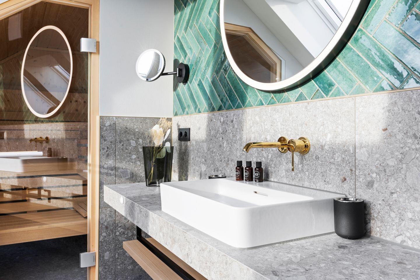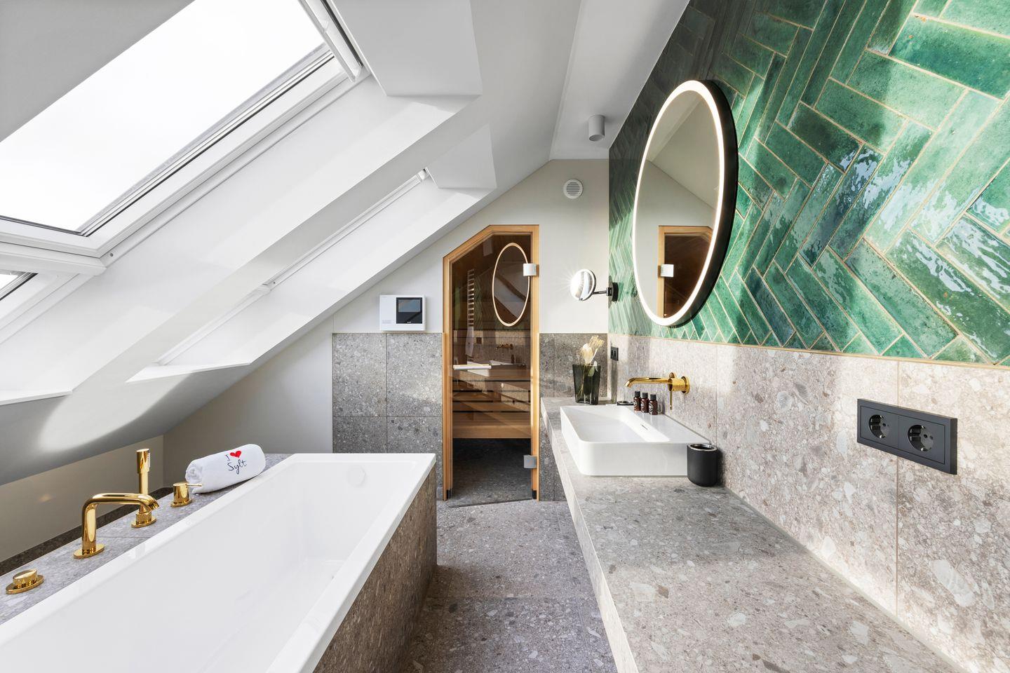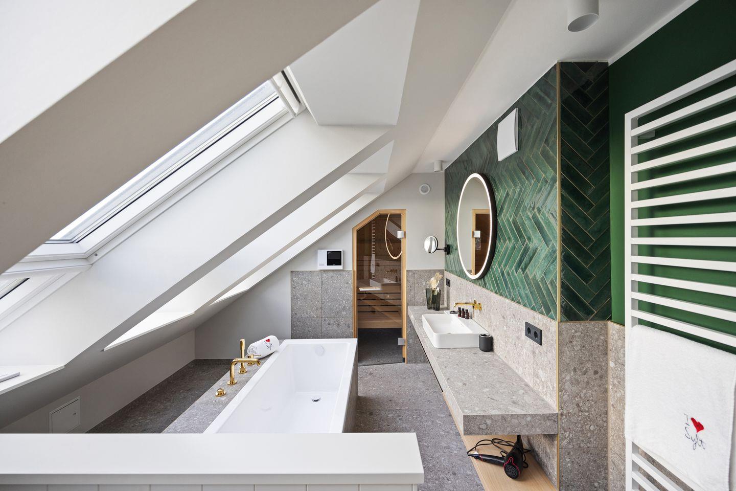 Das gesamte Obergeschoss begeistert mit einem großzügigen, offenen Badezimmer im Spa-Stil. Eine bodengleiche Regendusche schenkt Ihnen das Gefühl eines warmen Sommerregens, während die freistehende Badewanne den Blick in den Sylter Himmel freigibt. Elektrisch zu öffnende Oberlichter lassen Tageslicht hereinströmen und schaffen eine besondere Atmosphäre. Die private KLAFS-Sauna lädt dazu ein, tief durchzuatmen, zur Ruhe zu kommen und vollkommen abzuschalten. Ein separates WC mit Handwaschbecken, Handtuchwärmer und Föhn runden den Komfort ab. „Ankommen und Auftanken“ wird hier spürbar gelebt.