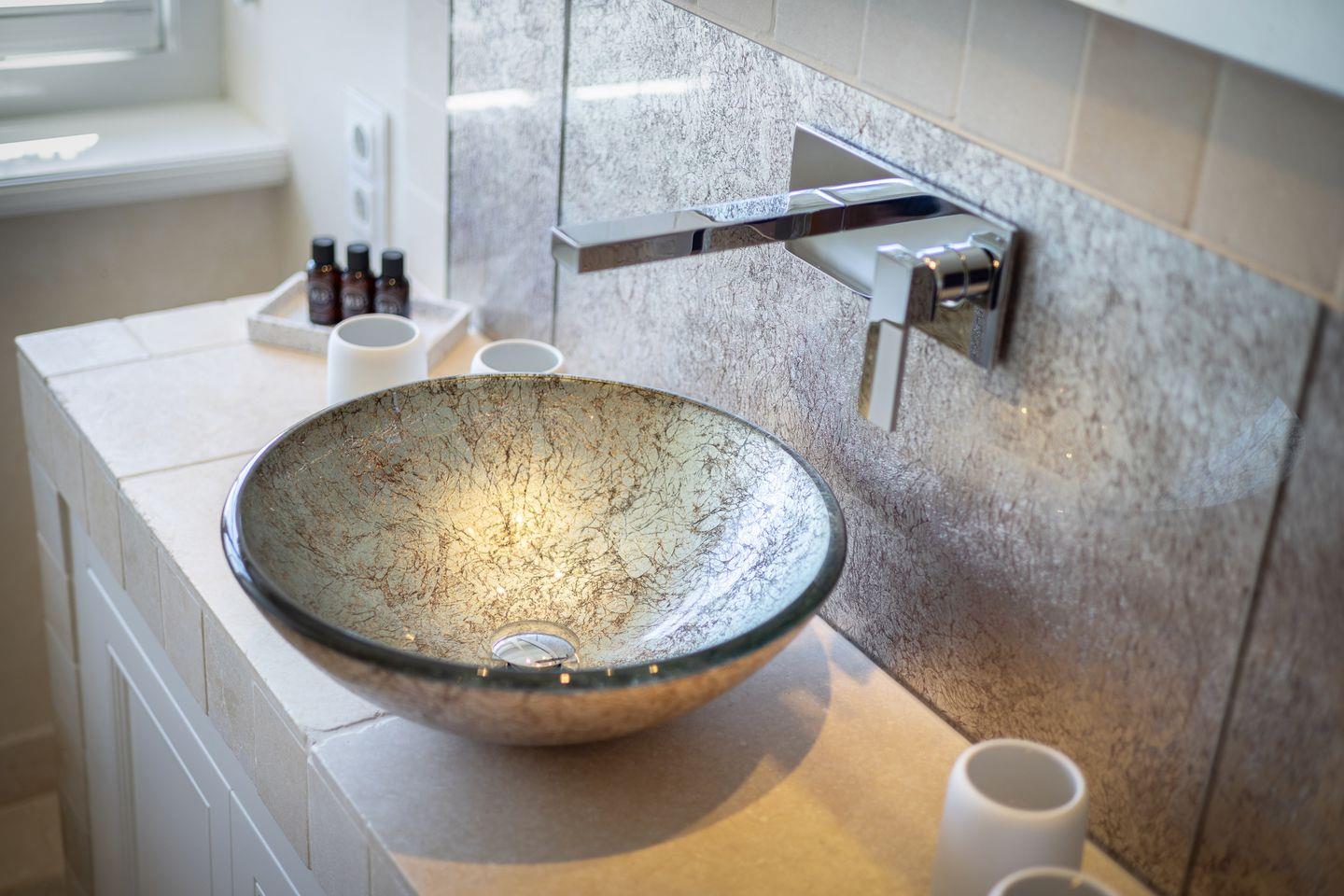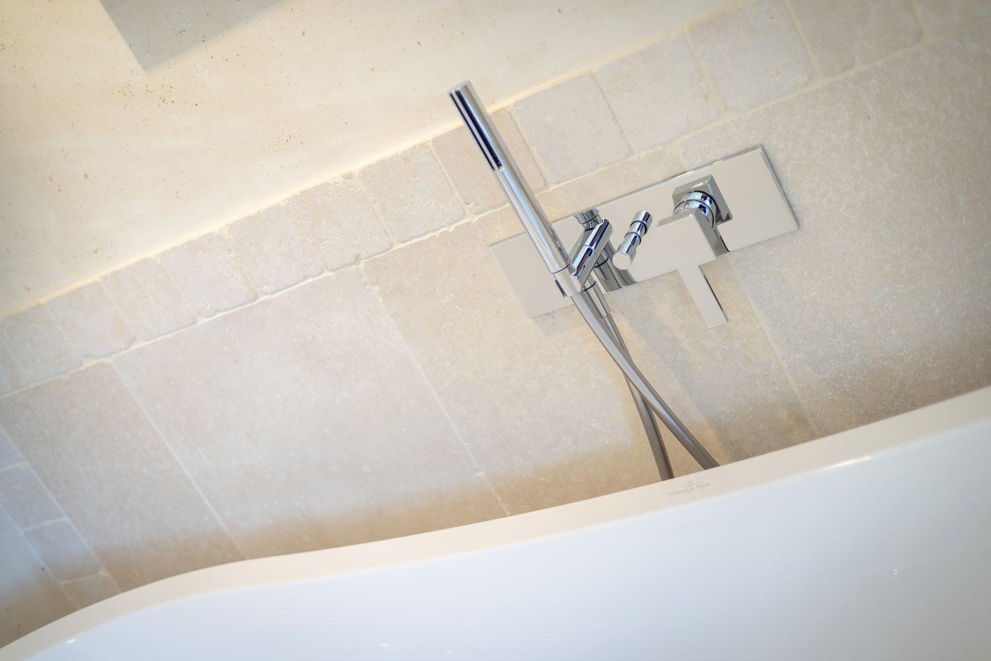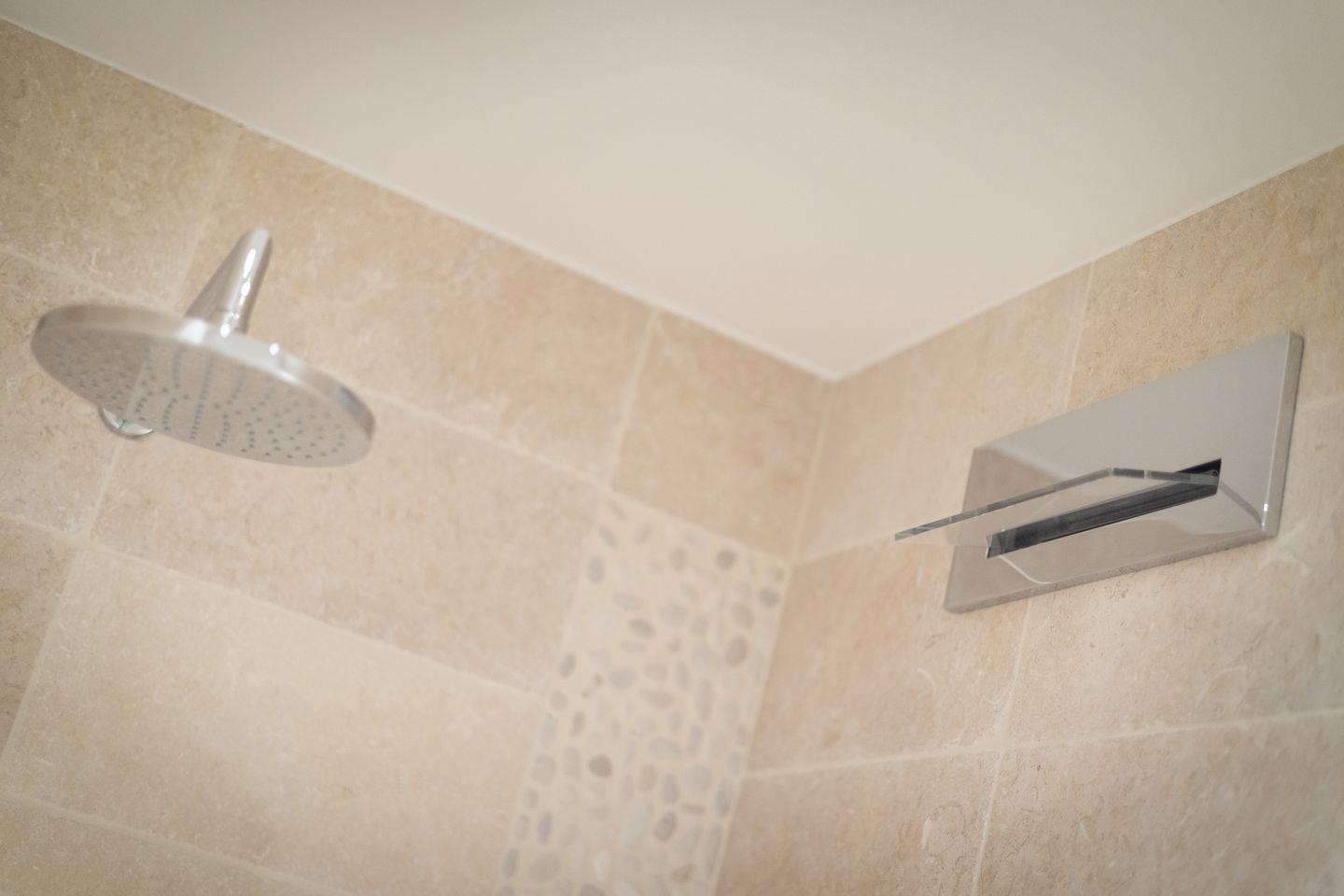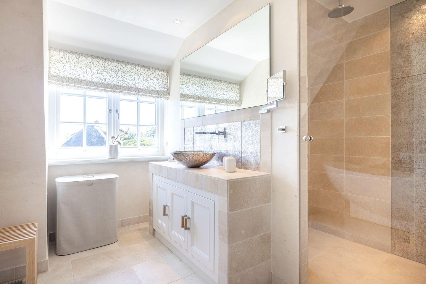Die beiden stilvollen Badezimmer bieten höchsten Komfort: Ein großzügiges Vollbad im OG verfügt über eine Wanne sowie eine separate Regendusche und Tageslicht für ein besonders angenehmes Ambiente. Das Wellnessbad mit Sauna und geräumiger Regendusche befindet sich im UG und kann als zweites Bad genutzt werden. Das separate WC im UG verfügt über Tageslicht. Ein Gäste-WC im EG steht für zusätzlichen Komfort zur Verfügung. Highlight dieses Ferienhauses ist ein separater Fitnessraum mit Technogym Ausstattung und TV.