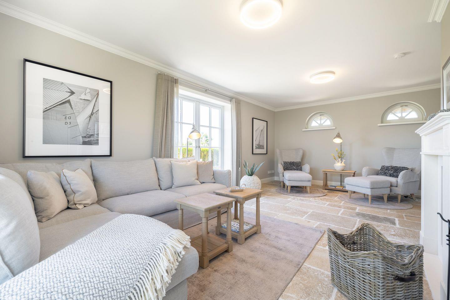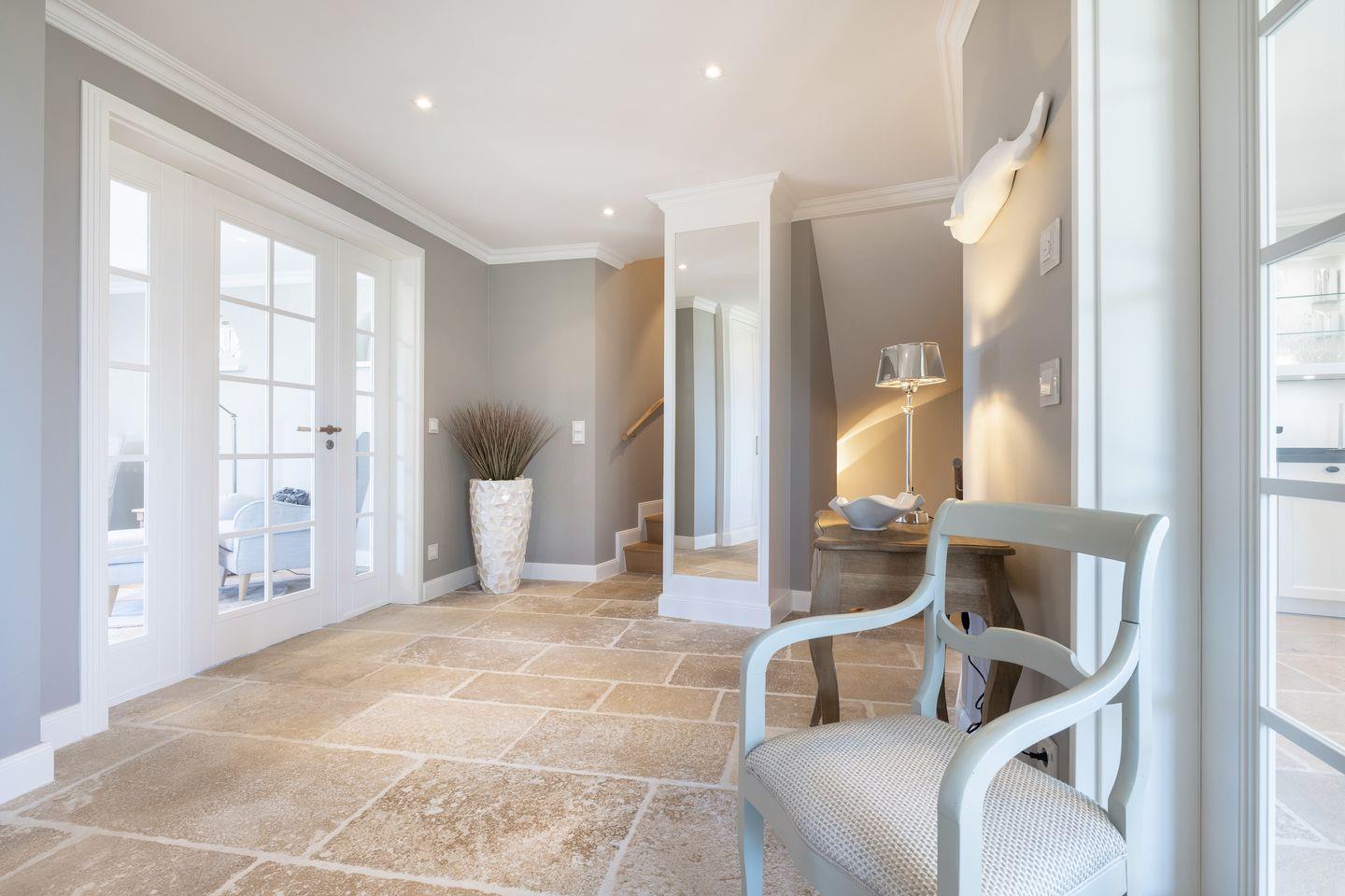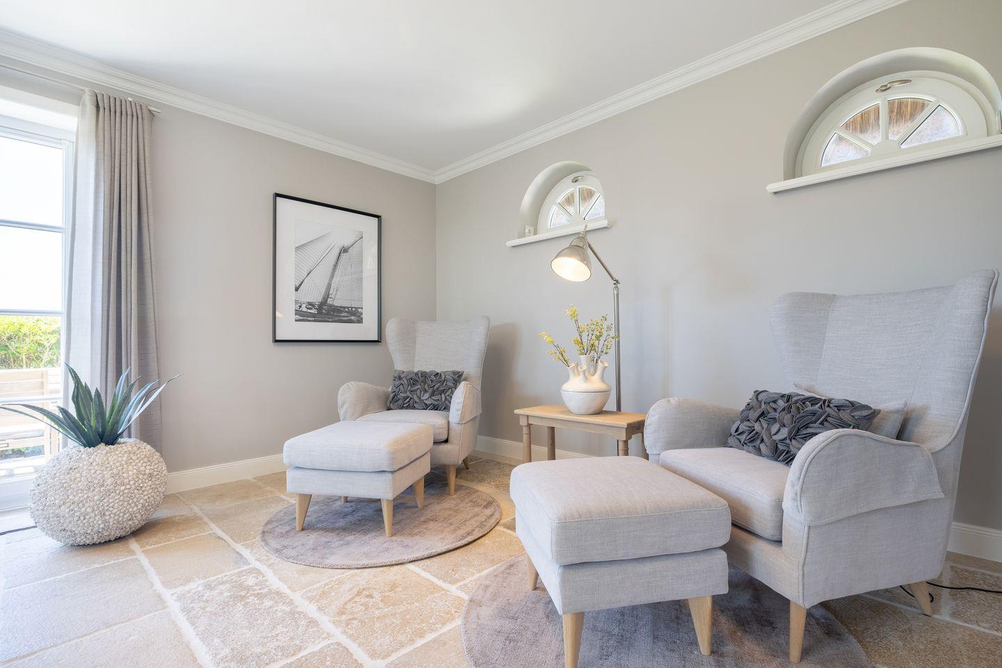 Die exklusive, offen gestaltete Küche mit Weinkühlschrank lädt dazu ein, köstliche Mahlzeiten zu zaubern, die Sie im großzügigen Essbereich genießen können. Von hier aus haben Sie direkten Zugang zur Ostterrasse, die einen atemberaubenden Blick über das Wattenmeer bietet. Der separate, gemütliche Wohnbereich mit Kamin und direktem Zugang zur Westterrasse ist der perfekte Ort, um die Abende zu verbringen und die Wärme des Feuers zu genießen.