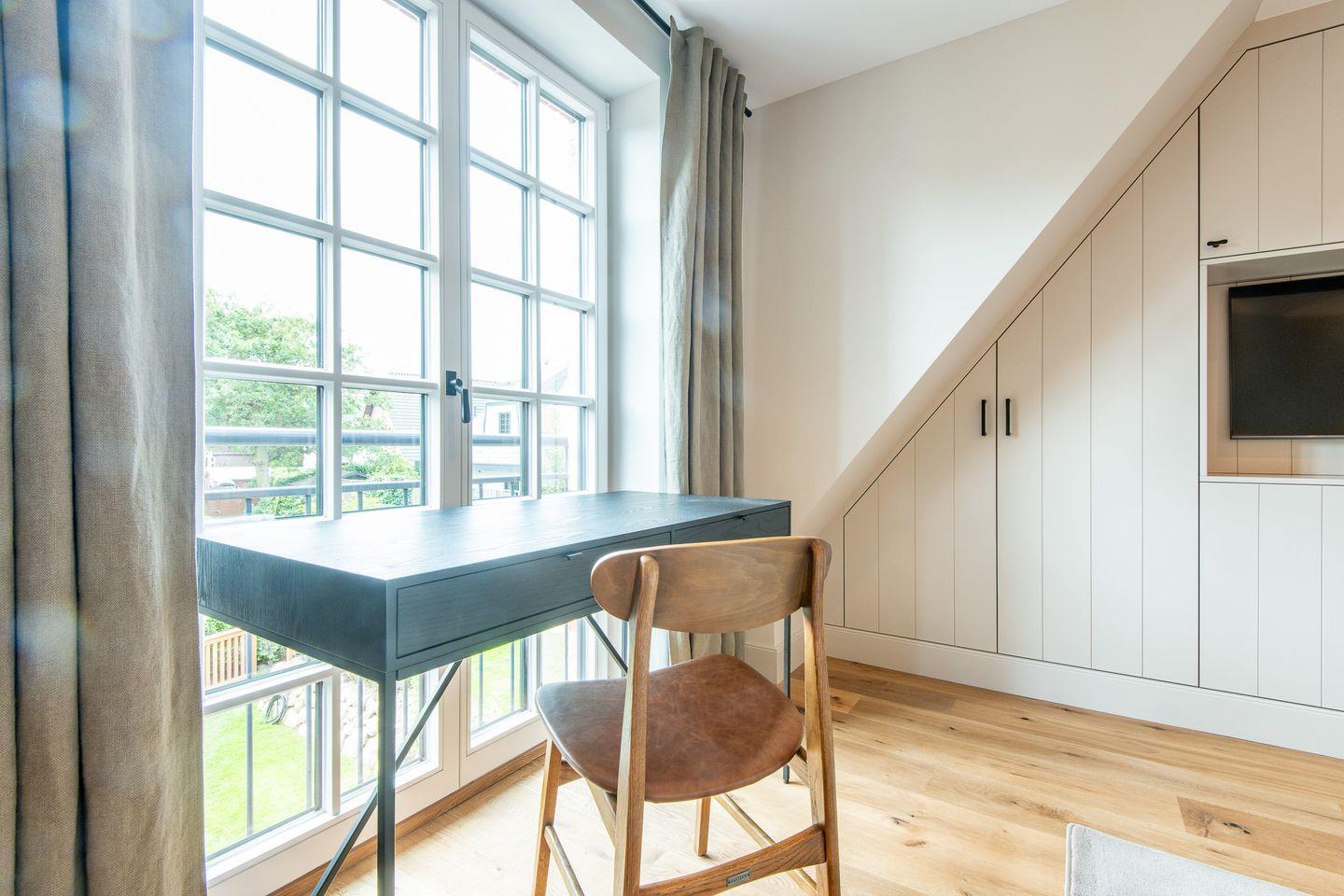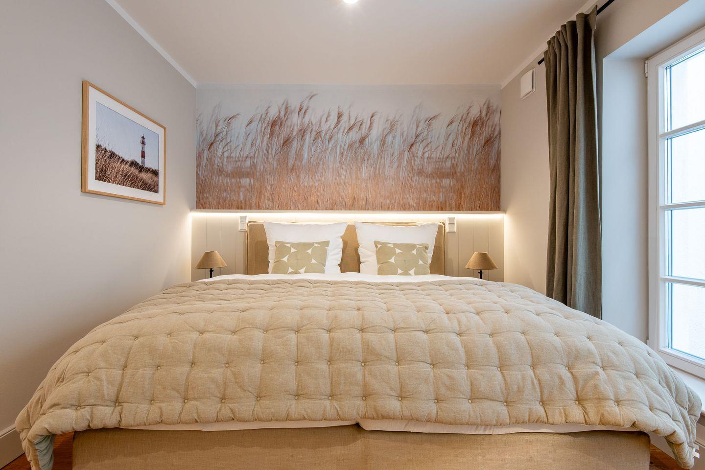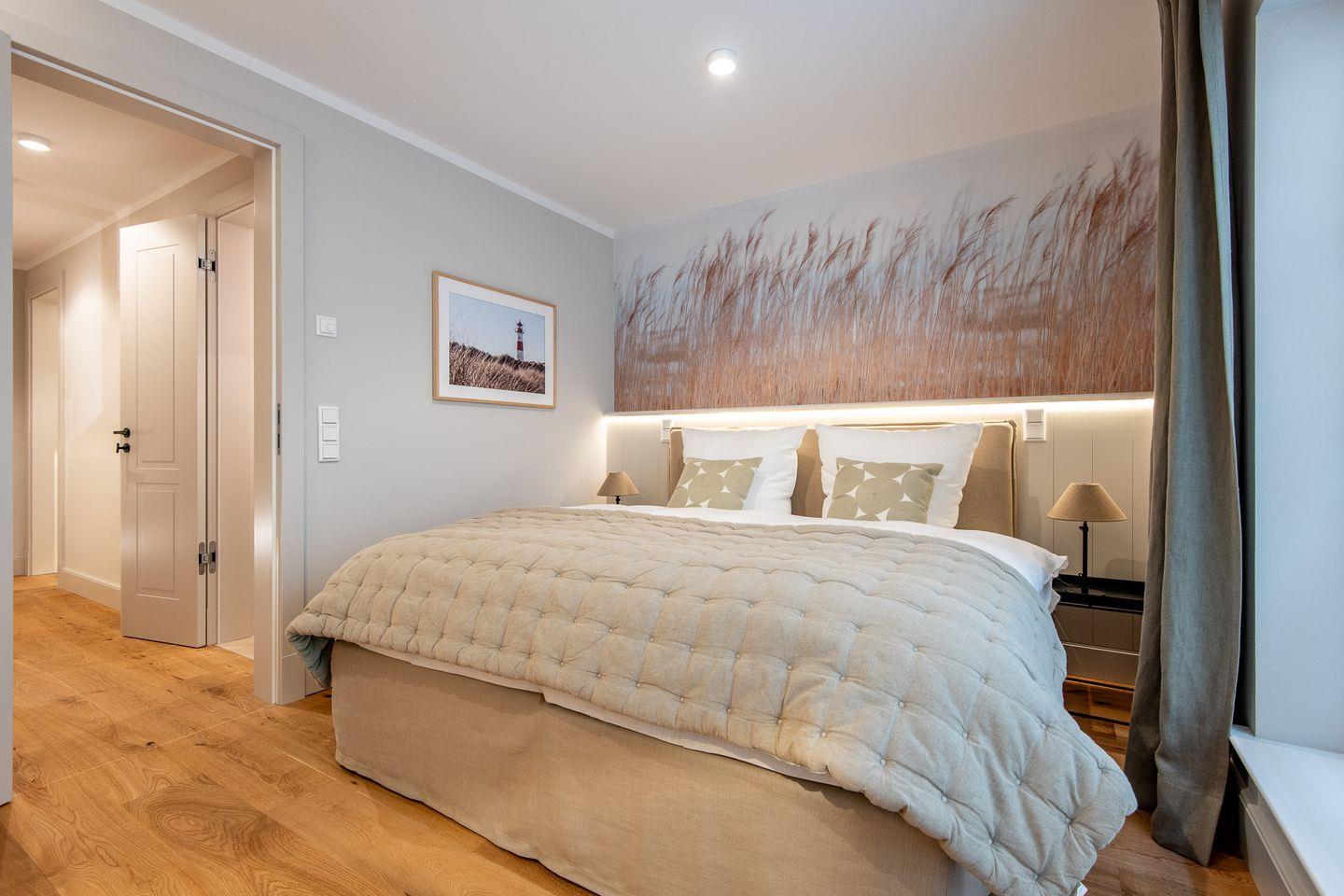 Das Neubau-Mittelhausteil "Landhaus Senwai" in Westerland auf Sylt bietet Luxus und Komfort auf rund 123 m² und erstreckt sich über vier Ebenen. Diese stilvolle Unterkunft bietet Platz für bis zu 6 Personen und schafft mit hochwertigen Materialien, natürlichen Erdtönen und edlen Leinenstoffen ein einladendes Ambiente, das den typischen Sylter Charme verkörpert.