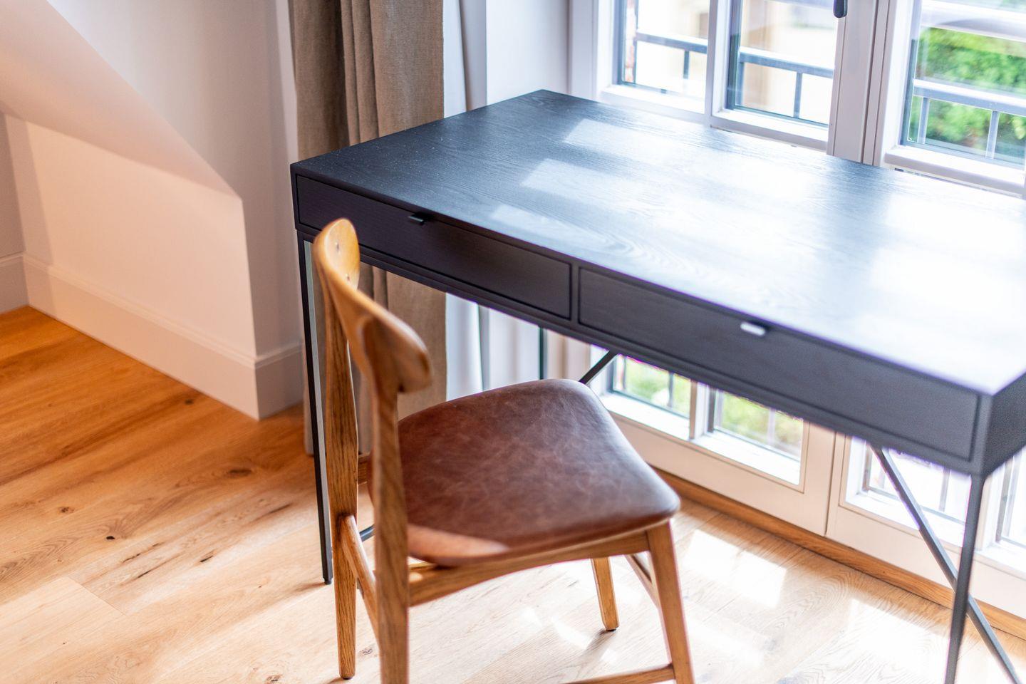 Die drei stilvoll eingerichteten Schlafzimmer bieten Ihnen erholsamen Schlafkomfort und eine behagliche Atmosphäre. Das erste Schlafzimmer ist mit einem großzügigen Doppelbett (180x200 cm), einem geräumigen Kleiderschrank und einem TV ausgestattet, sodass Sie sich ganz wie zu Hause fühlen können. Das zweite und größte Schlafzimmer bietet neben dem komfortablen Doppelbett ebenfalls ein TV-Gerät und einen funktionalen Schreibtisch, ideal für eine kleine Arbeitsecke oder zum Schreiben und Lesen. Im dritten Schlafzimmer erwarten Sie zwei gemütliche Einzelbetten (je 100x200 cm), die bei Bedarf zu einem Doppelbett umfunktioniert werden können. Ein Einbauschrank und ein weiterer Schreibtisch bieten zusätzlichen Komfort und sorgen für eine ruhige, angenehme Atmosphäre.
