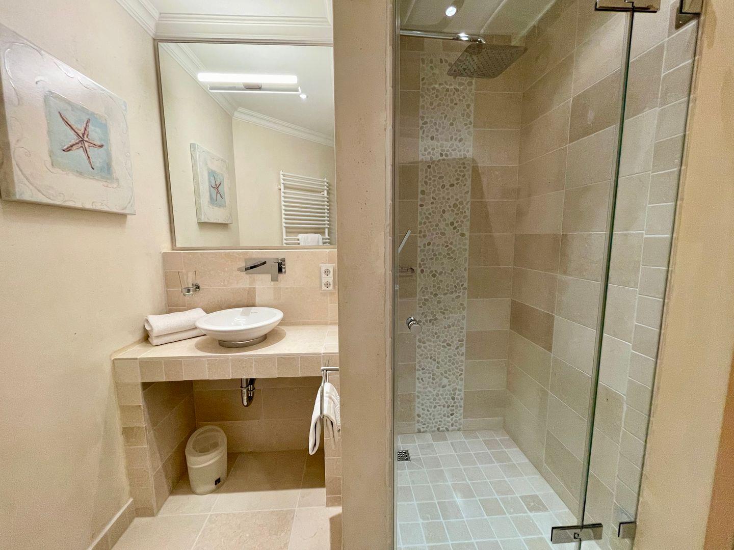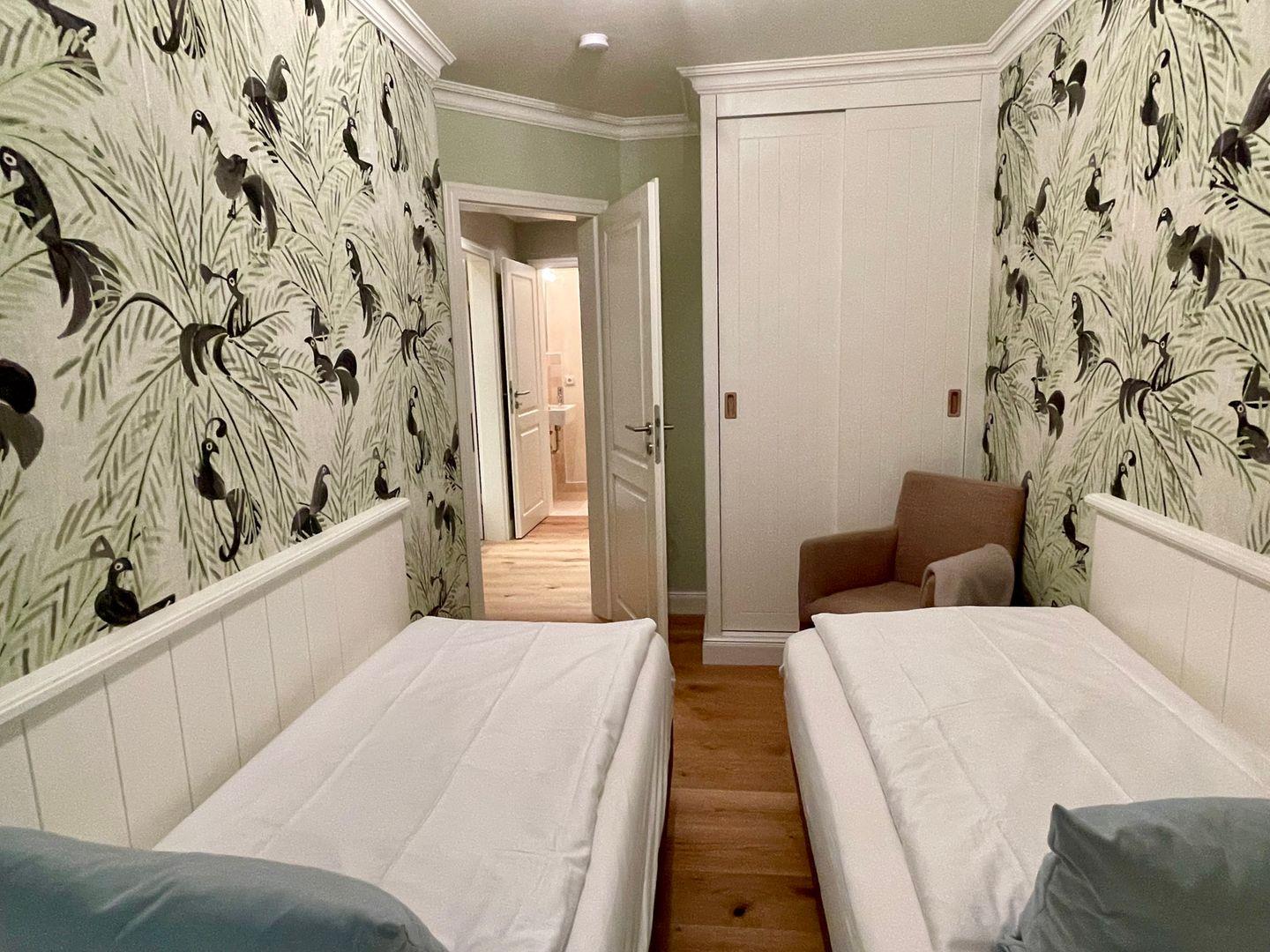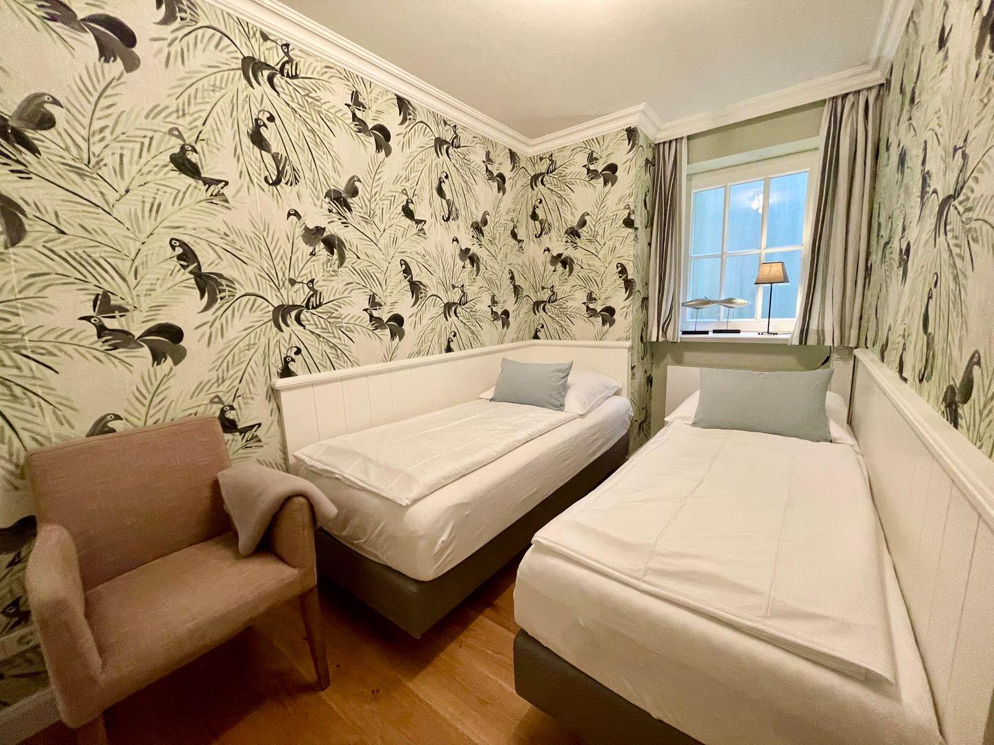 Die luxuriös eingerichtete Doppelhaushälfte wurde in 2024 renoviert. Über 3 Etagen finden Sie auf 107qm liebevoll eingerichtete Räume, die zum Entspannen einladen. Das groß geschnittene Wohnzimmer mit Eckcouch lädt mit dem Kamin bei entspannten Abendstunden zum relaxen ein. Am großen Esstisch lässt es sich genüsslich speisen. Mit drei Schlafzimmern (OG: Doppelbett 180x210, UG: Doppelbett 160x200, sowie UG: 2 Einzelbetten 80x200) ist das Haus perfekt für die ganze Familie. Zwei Duschbäder mit jeweils separatem WC, sowie einem zusätzlichen Gäste WC im Erdgeschoss runden dieses Angebot ab. Lassen Sie den Tag nach einem langen Strandspaziergang in der hauseigenen Sauna ausklingen oder genießen Sie einen Sundowner auf der eigenen Terrasse.