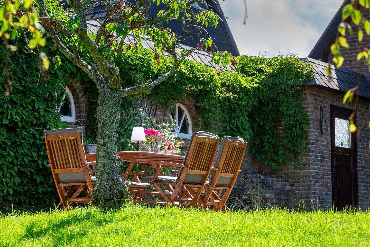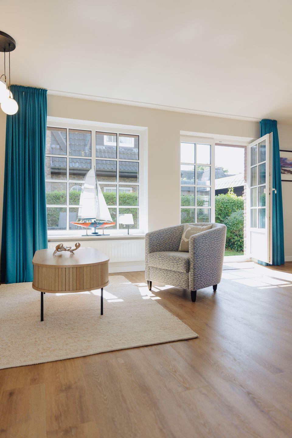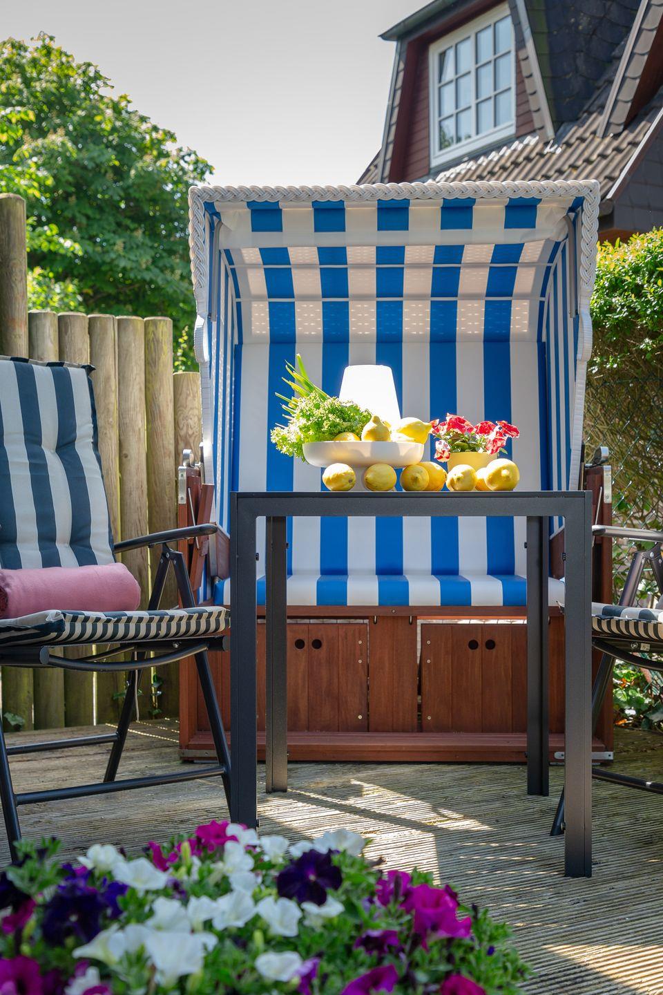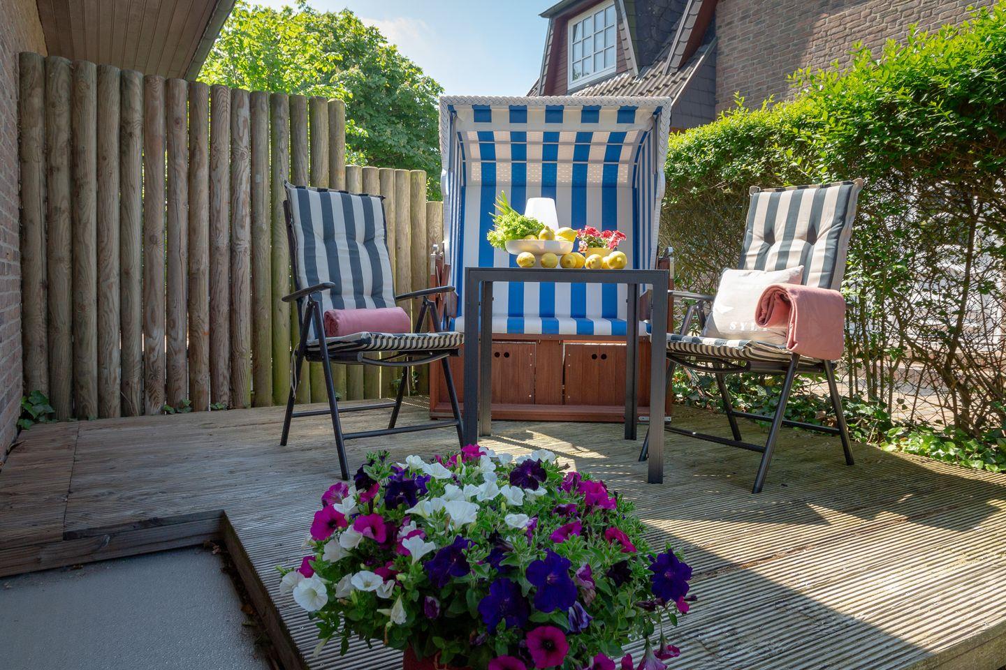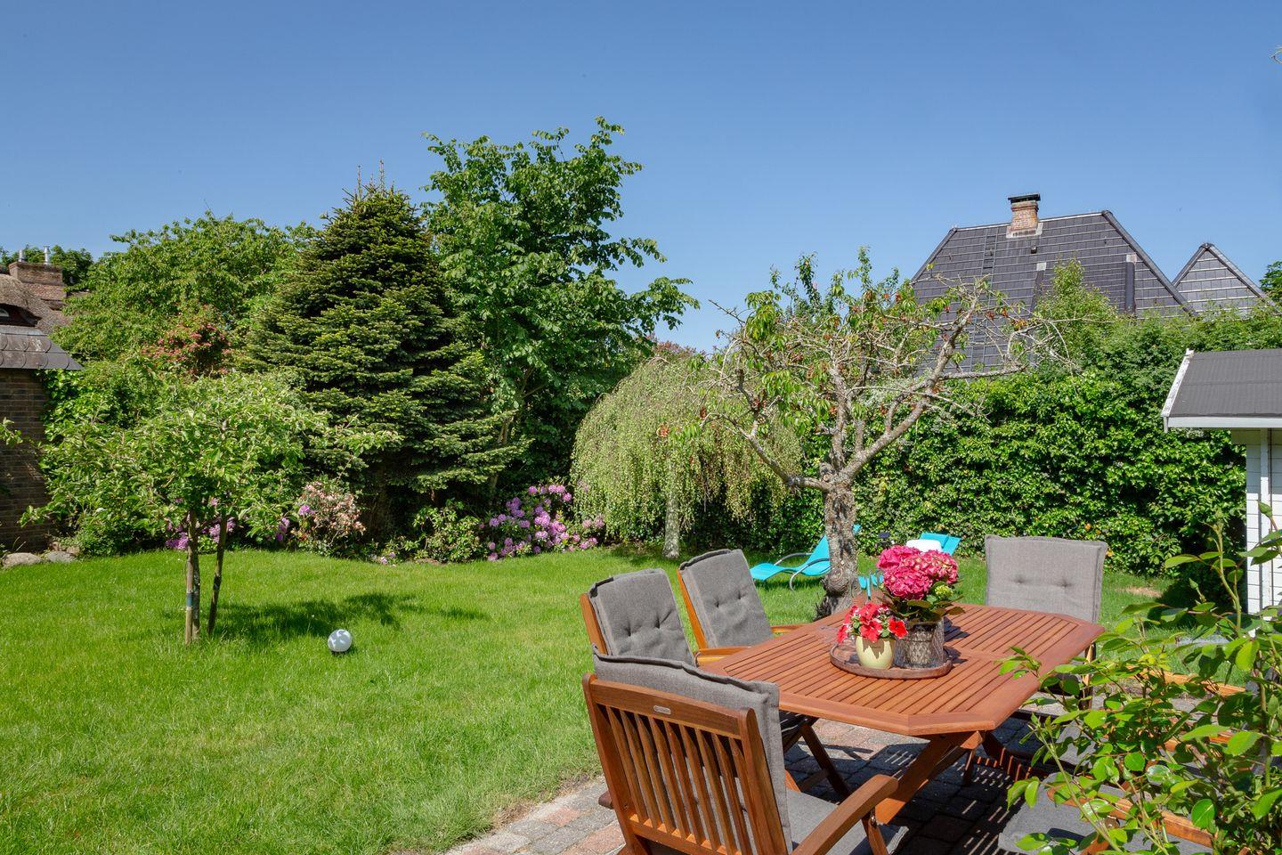 Entspannen Sie sich im Wohnbereich vor dem Smart-TV oder nutzen Sie die gemütliche Terrasse im großen blickdicht eingewachsenen Garten, der mit einem Strandkorb, Gartenmöbeln und Sonnenliegen ausgestattet ist.