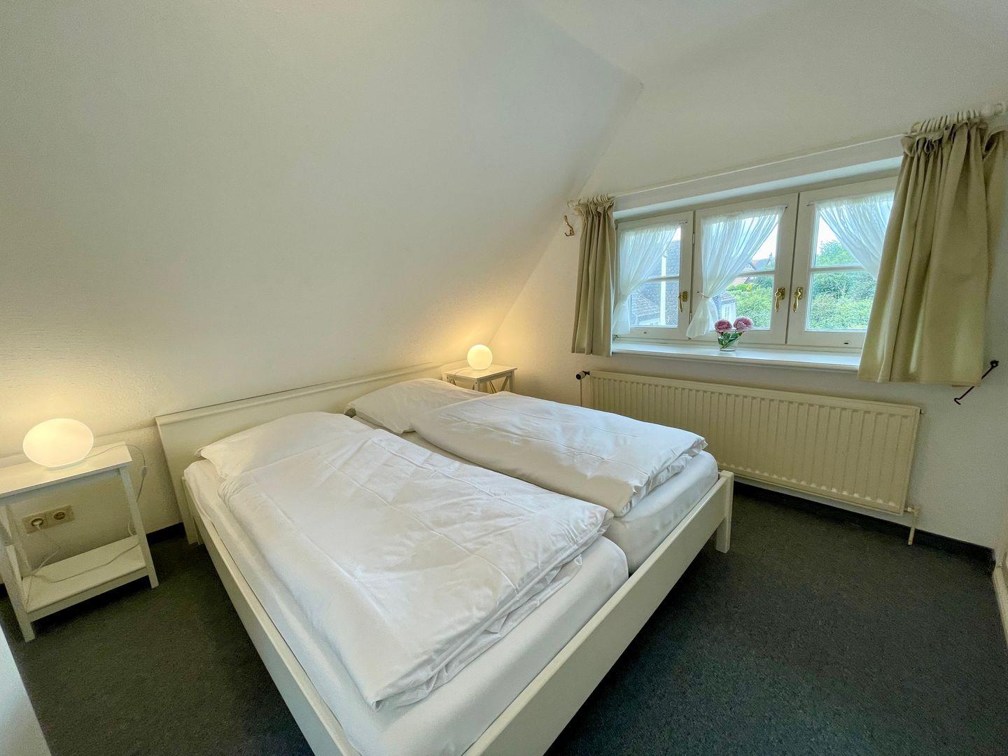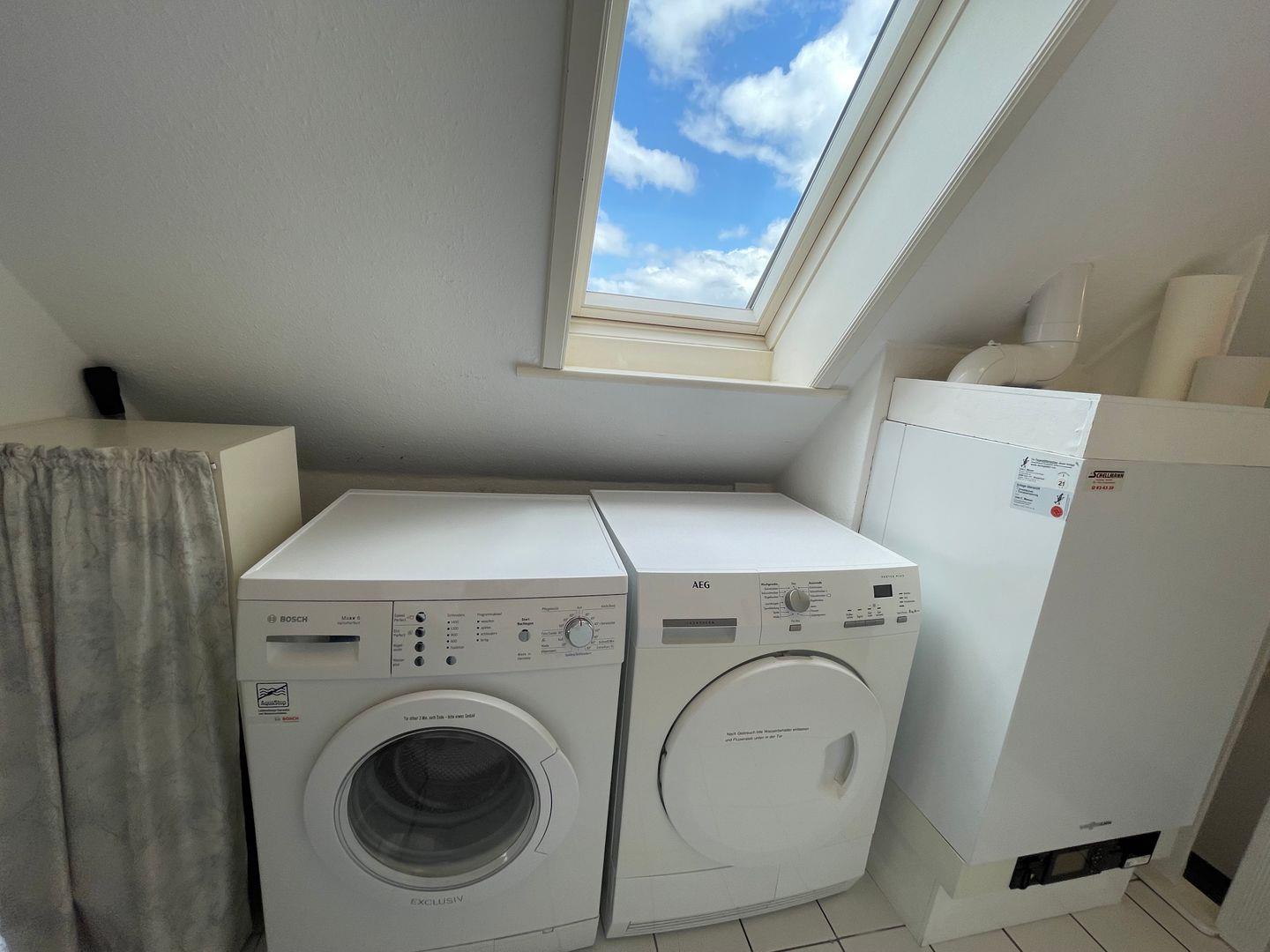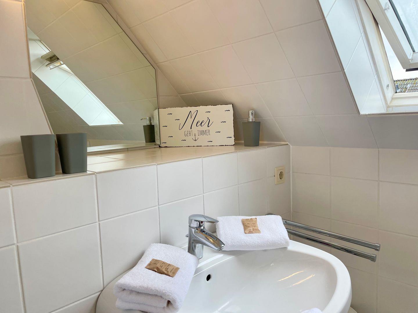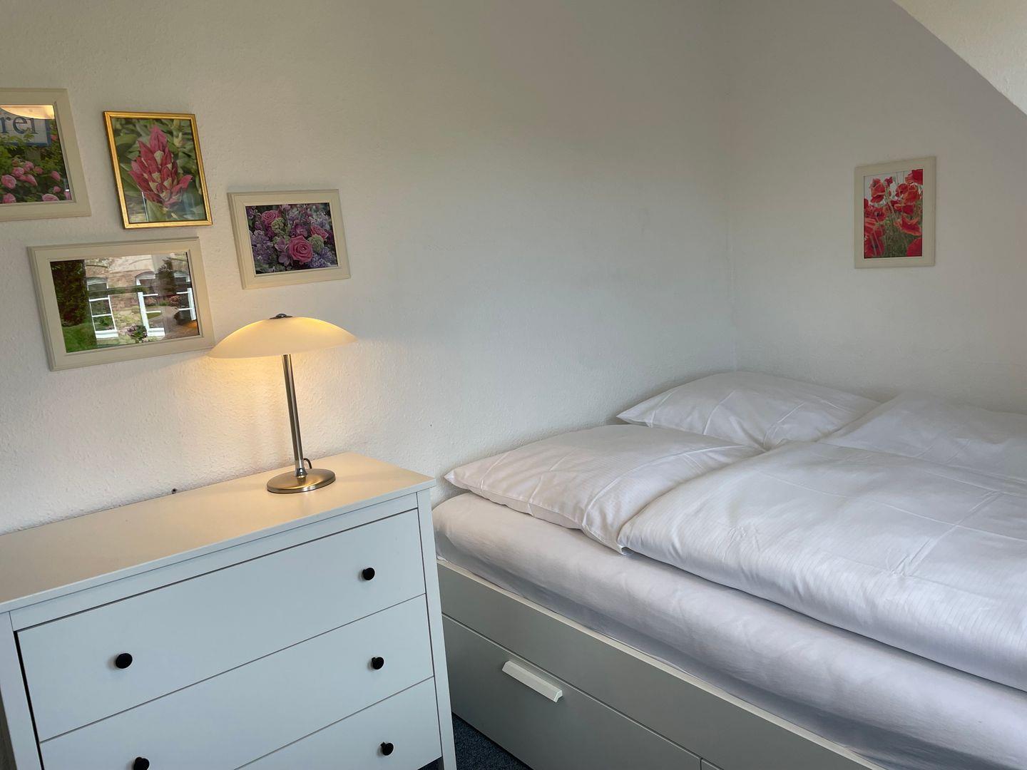 Die geräumige und modern eingerichtete Ferienwohnung verfügt über zwei gemütliche Schlafzimmer mit jeweils einem komfortablen Doppelbett und zwei Badezimmern, die den Aufenthalt für bis zu 4 Personen besonders angenehm machen. Die separate Küche ist voll ausgestattet mit Elektroherd, Mikrowelle, Geschirrspüler, Backofen, Kühlschrank, Kaffeemaschine, Toaster und Wasserkocher. Im Wohnbereich finden sich ein gemütlicher Essbereich, eine HiFi-Anlage, DVD-/Blu Ray-Player und TV. Die Wohnung ist allergikergeeignet und verfügt über kostenloses Internet mit WLAN. Außerdem steht den Gästen ein privater Parkplatz zur Verfügung. Zudem sind eine Waschmaschine, Wäschetrockner, Haartrockner, Staubsauger und Wäscheständer vorhanden. Beide Badezimmer haben Fenster, im OG befindet sich das Duschbad, im Bad des DG eine Badewanne. Wer auf der Suche nach einer komfortablen und hochwertig ausgestatteten Unterkunft ist, ist hier genau richtig.