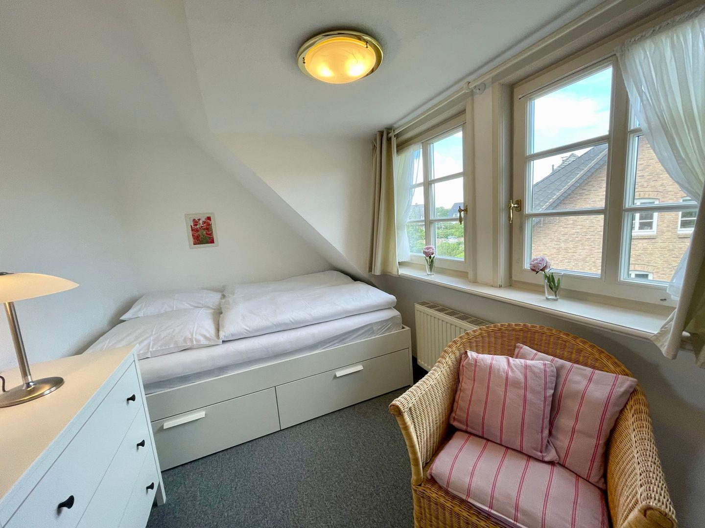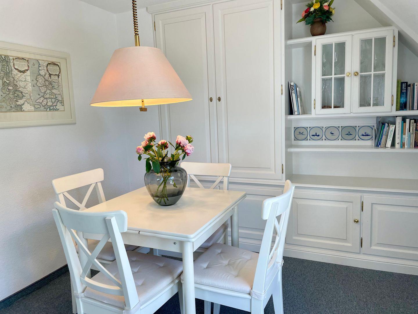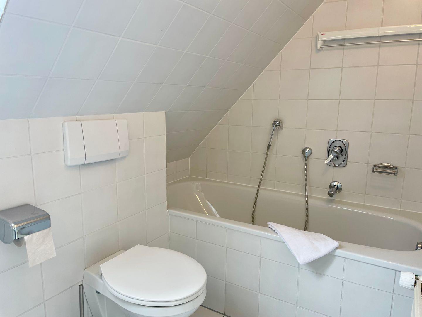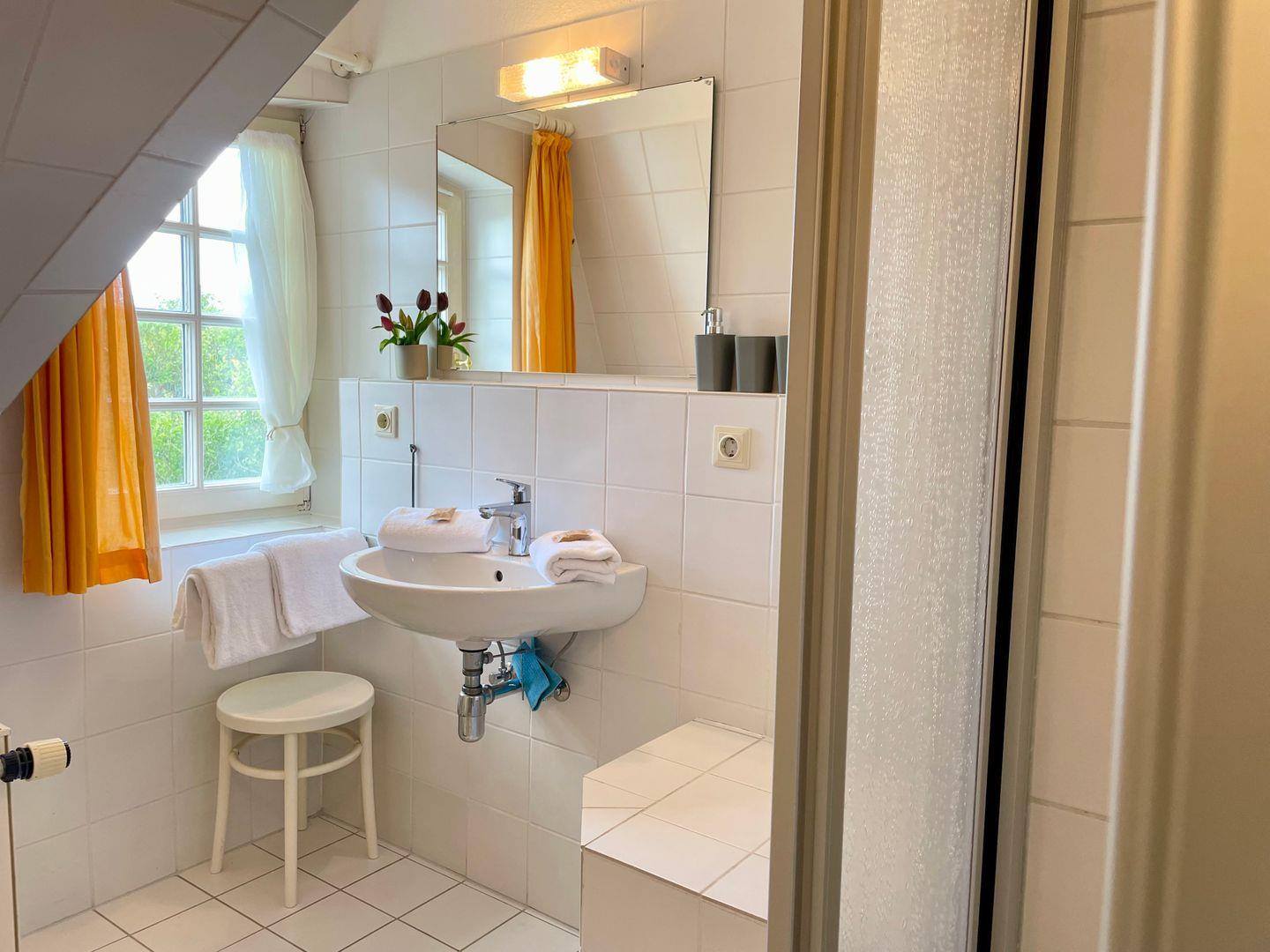 Die geräumige und modern eingerichtete Ferienwohnung verfügt über zwei gemütliche Schlafzimmer mit jeweils einem komfortablen Doppelbett und zwei Badezimmern, die den Aufenthalt für bis zu 4 Personen besonders angenehm machen. Die separate Küche ist voll ausgestattet mit Elektroherd, Mikrowelle, Geschirrspüler, Backofen, Kühlschrank, Kaffeemaschine, Toaster und Wasserkocher. Im Wohnbereich finden sich ein gemütlicher Essbereich, eine HiFi-Anlage, DVD-/Blu Ray-Player und TV. Die Wohnung ist allergikergeeignet und verfügt über kostenloses Internet mit WLAN. Außerdem steht den Gästen ein privater Parkplatz zur Verfügung. Zudem sind eine Waschmaschine, Wäschetrockner, Haartrockner, Staubsauger und Wäscheständer vorhanden. Beide Badezimmer haben Fenster, im OG befindet sich das Duschbad, im Bad des DG eine Badewanne. Wer auf der Suche nach einer komfortablen und hochwertig ausgestatteten Unterkunft ist, ist hier genau richtig.