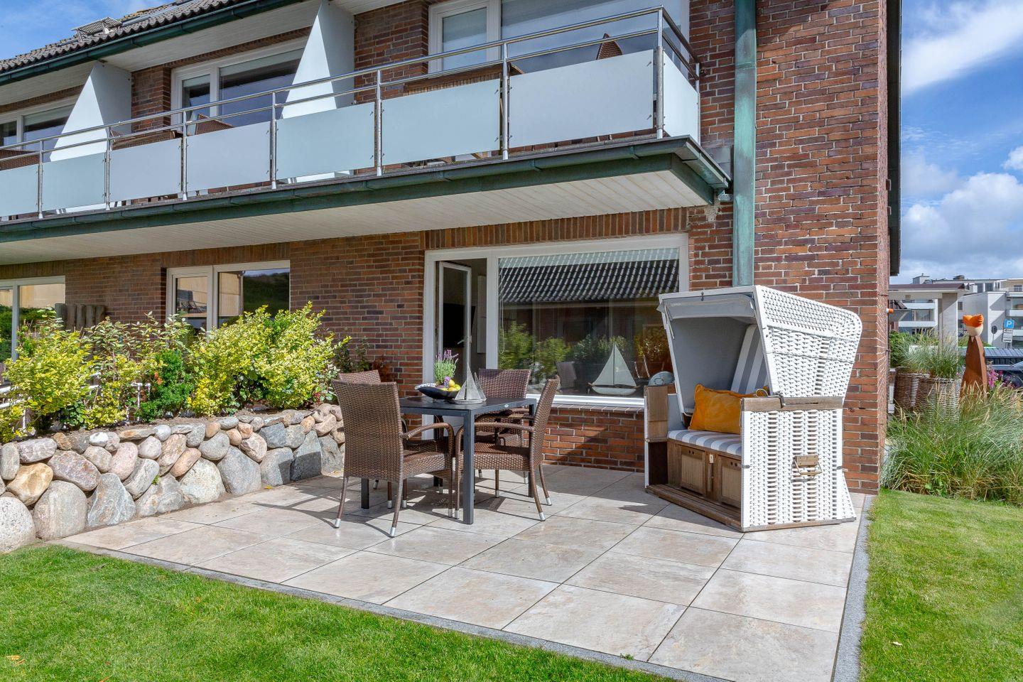 Wir heißen Sie herzlichst willkommen in unserer 2,5-Zimmer-Ferienwohnung Strand-Residenz in der "Strandvilla Schützenstraße 4" in Westerland. Die Ferienwohnung mit ca. 69 qm erstreckt sich über 2 Ebenen (Erdgeschoß und Souterrain) und bietet Ihnen eine Terrasse.