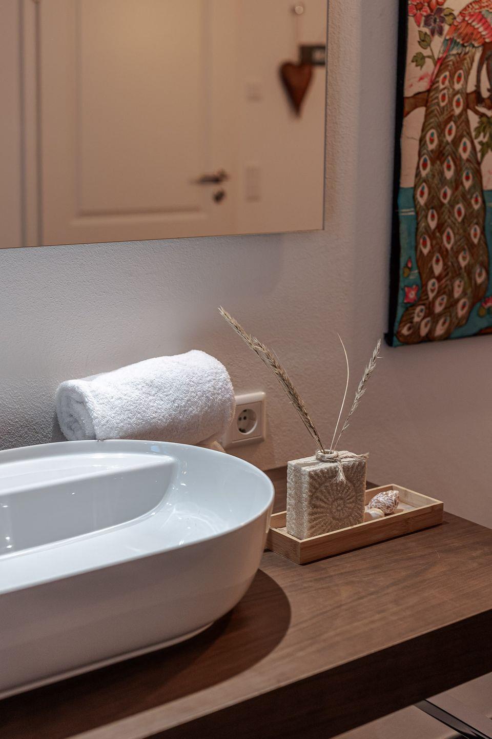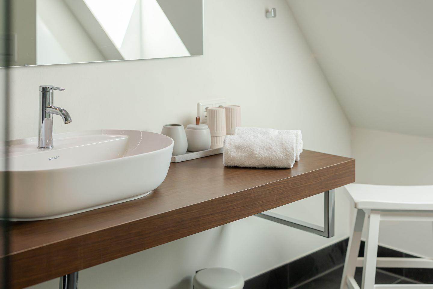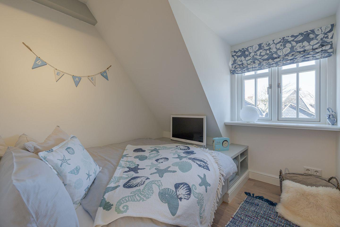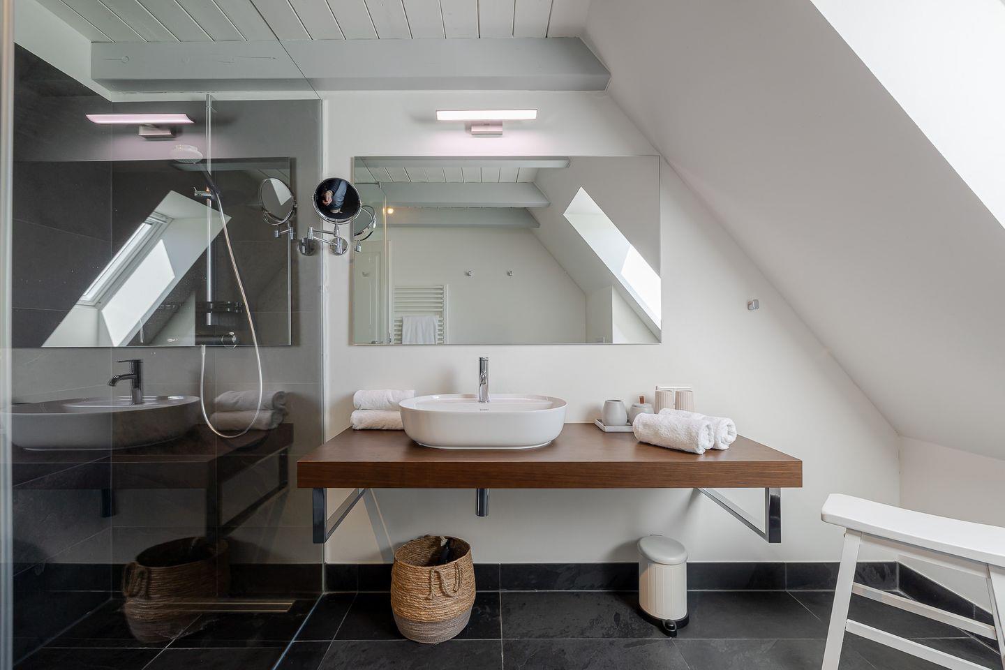 Das Highlight ist das Master-Schlafzimmer, das mit seinen charmanten Holzbalken eine warme, einladende Stimmung vermittelt. Jedes Schlafzimmer ist zudem mit einem eigenen Fernseher ausgestattet, sodass Sie den Tag entspannt und individuell ausklingen lassen können – ob mit einem Film, einer Serie oder einfach in Ruhe.