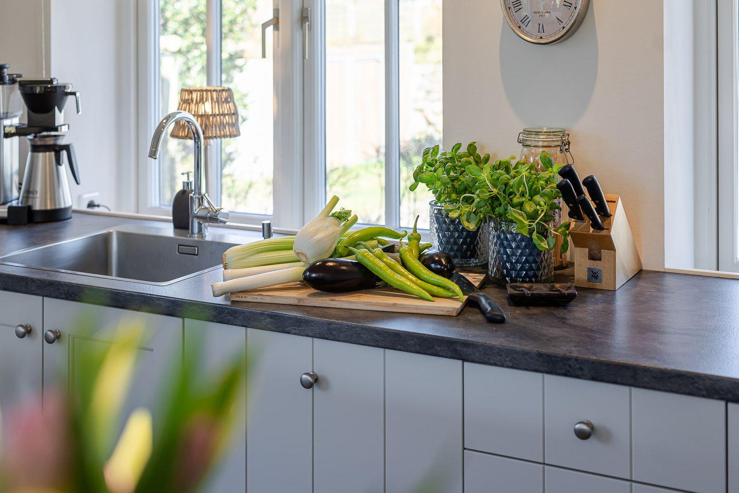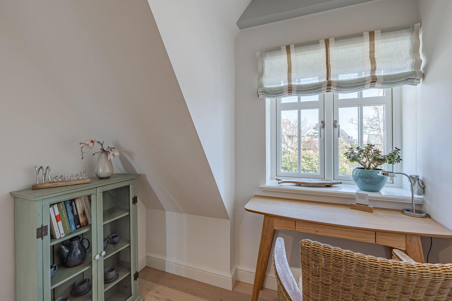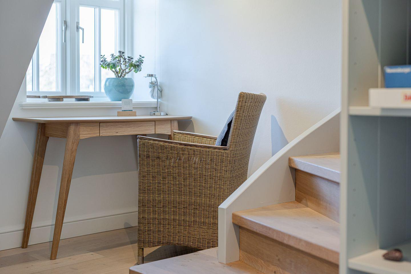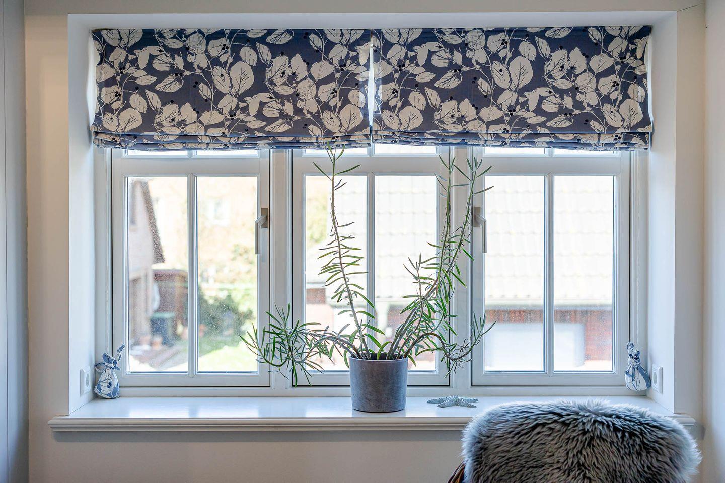 Das gesamte Haus verfügt über hochwertige dänische Fenster, die sich nicht auf Kipp stellen lassen. Beim Öffnen der Fenster und anschließendem Drehen des Griffs nach oben arretiert das Fenster sicher in geöffneter Position.